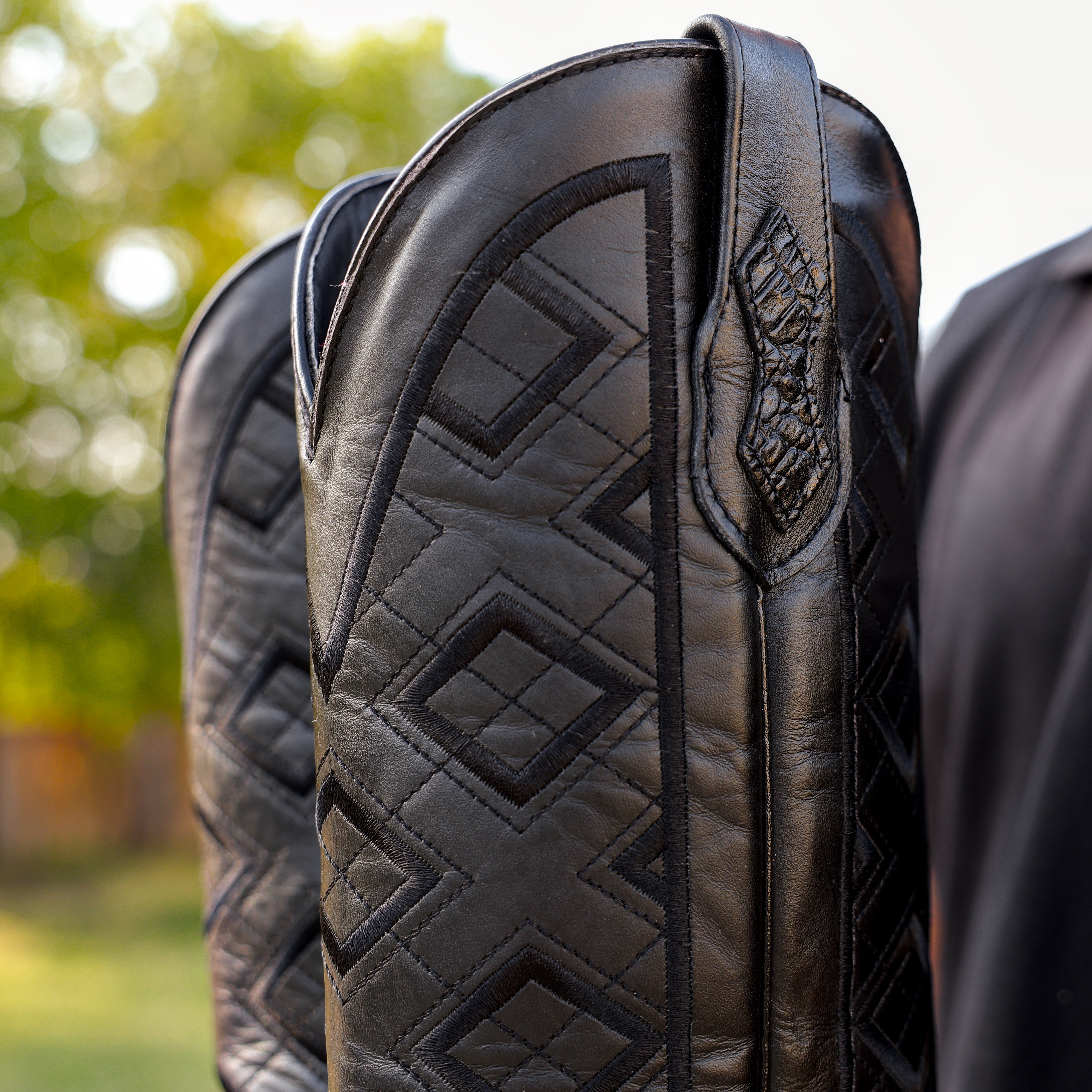 Black Caiman Hornback Leather Boots - Square Toe