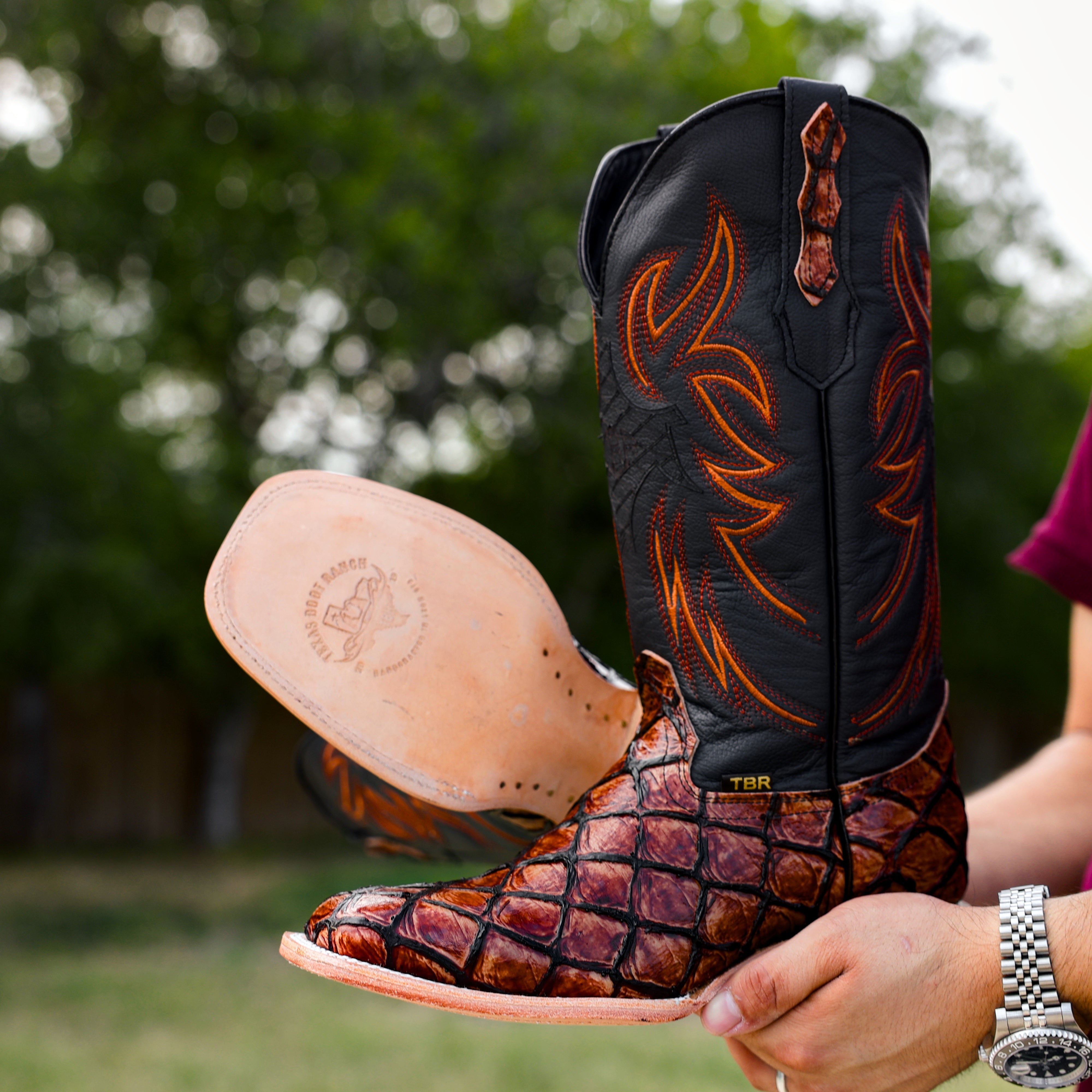 Cognac Pirarucu Leather Boots - Square Toe