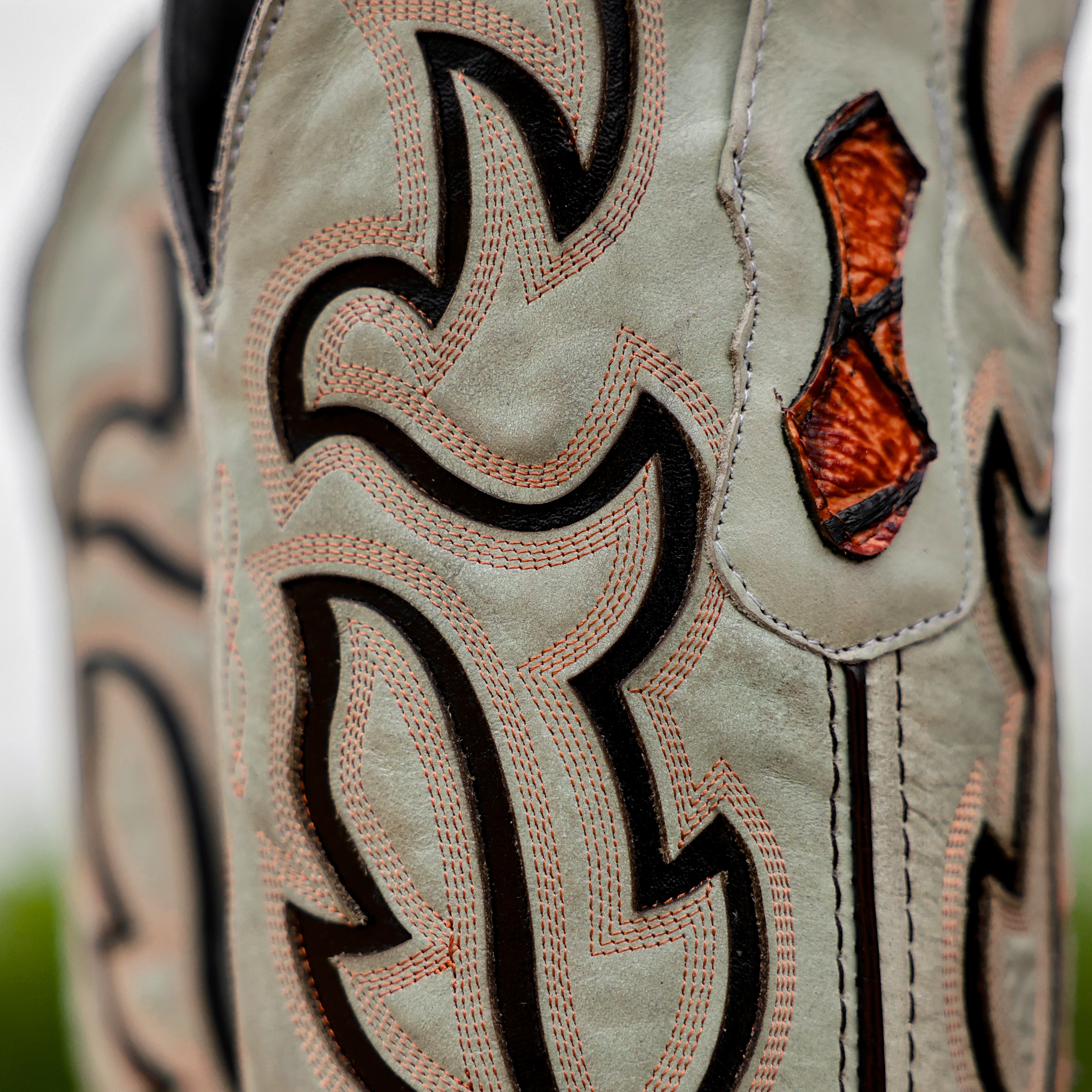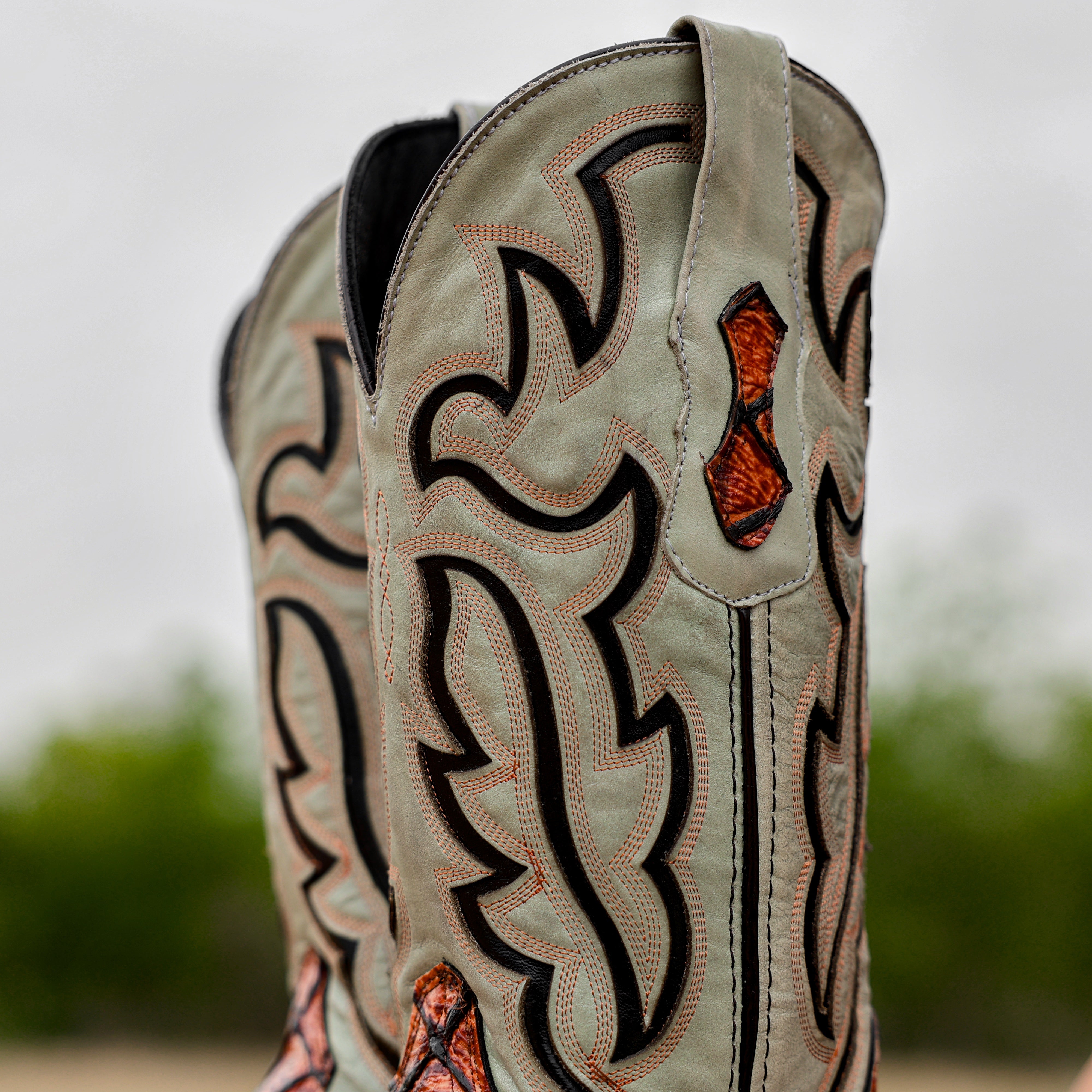Midnight Grey Pirarucu Leather Boots - Square Toe