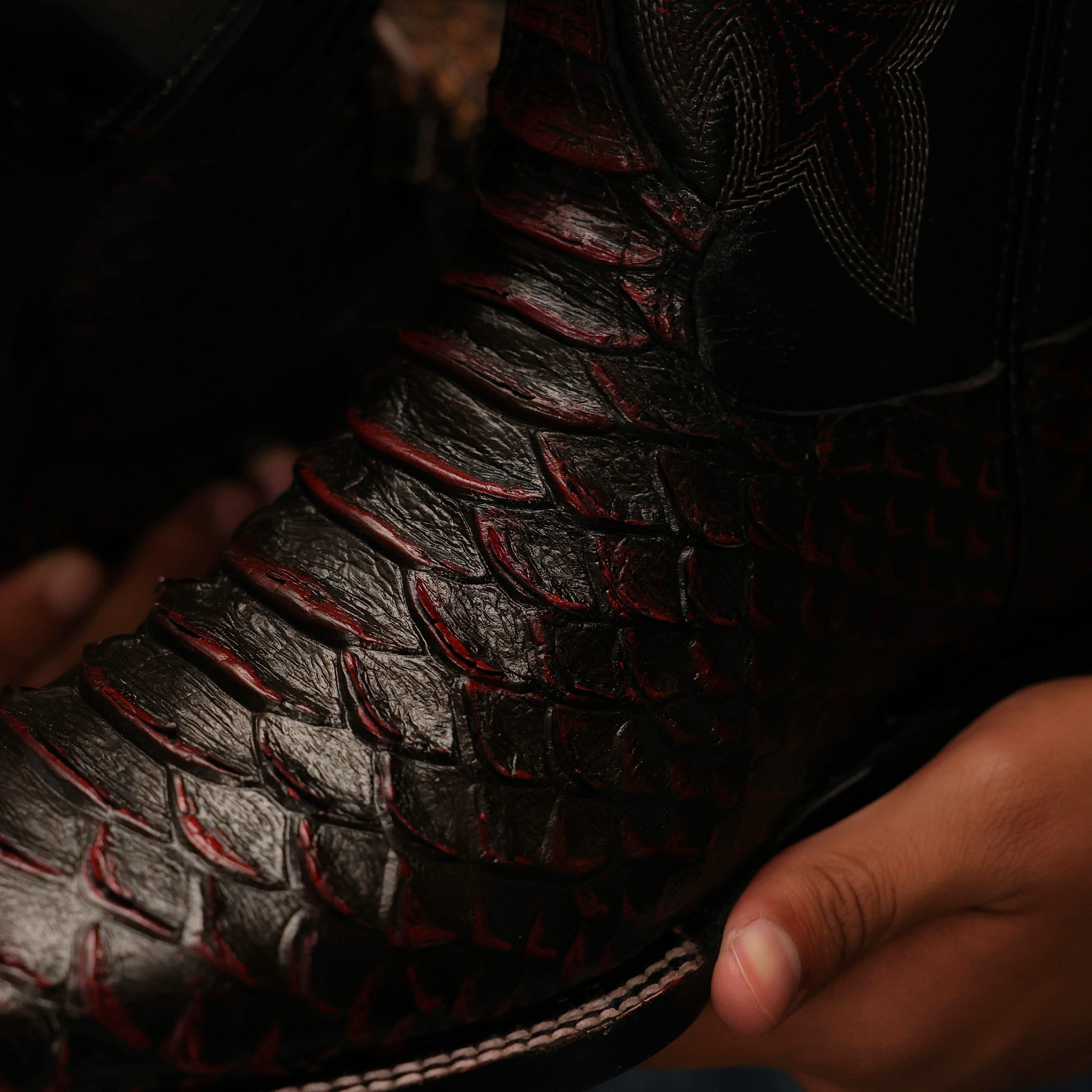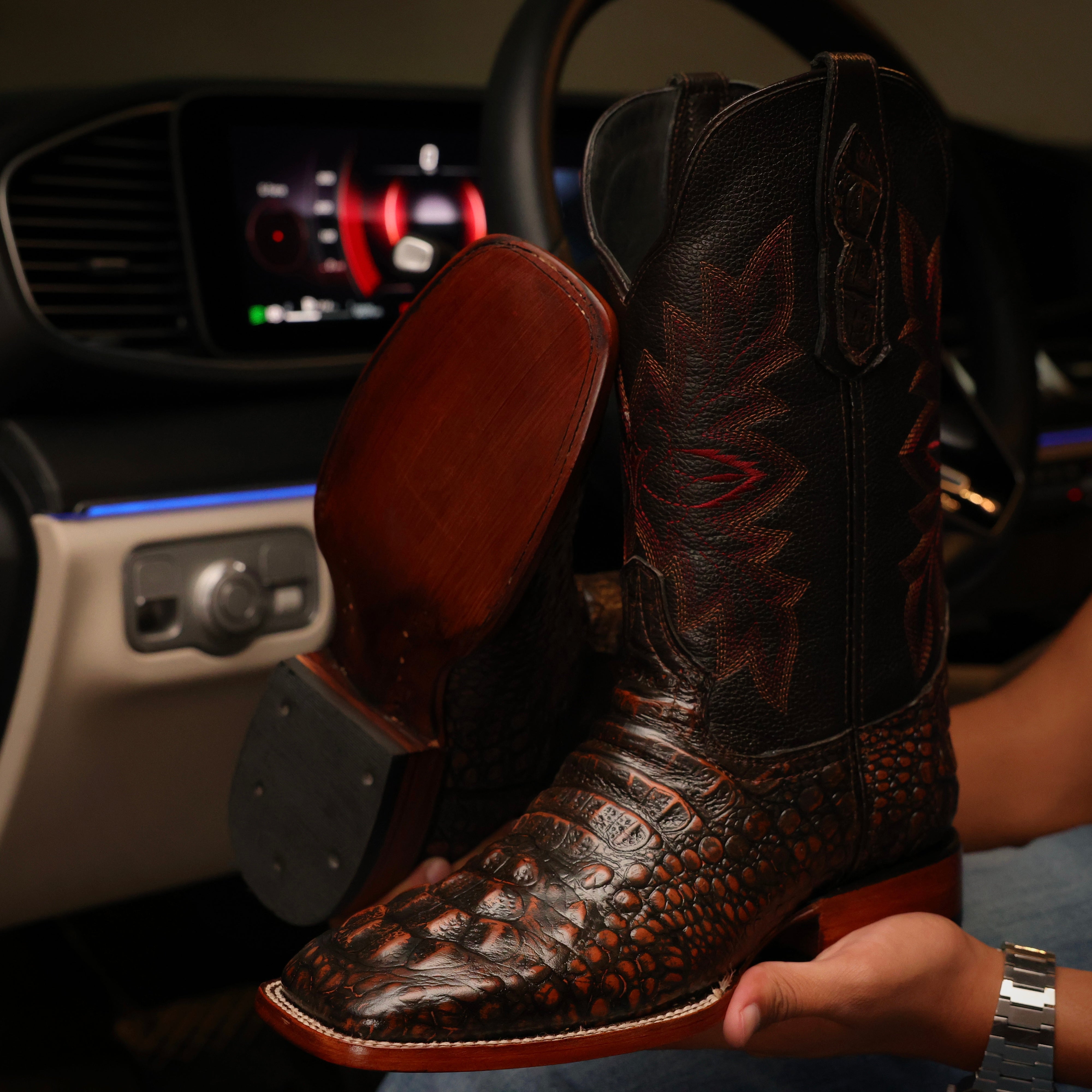 Brown Rustic Pirarucu Leather Boots - Square Toe