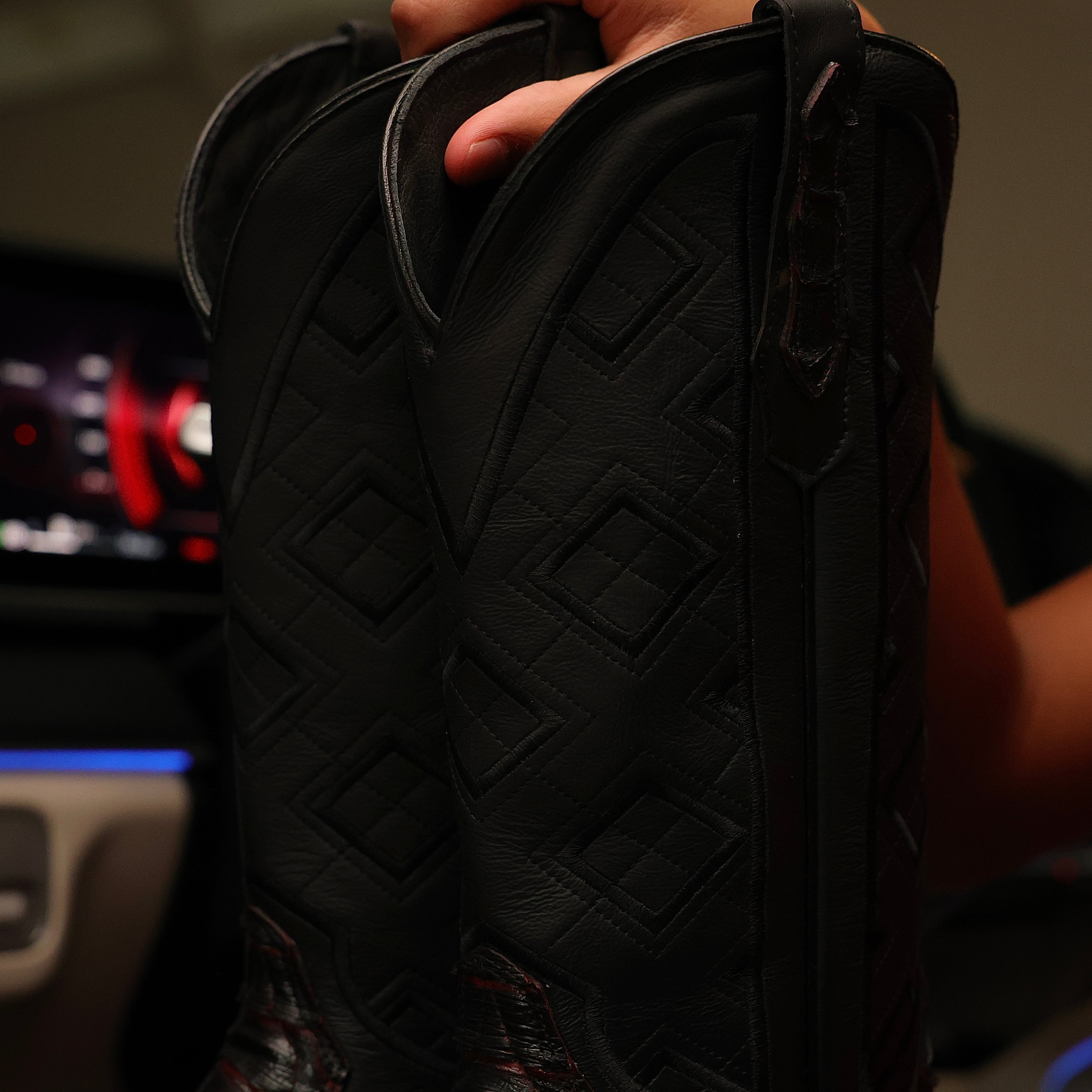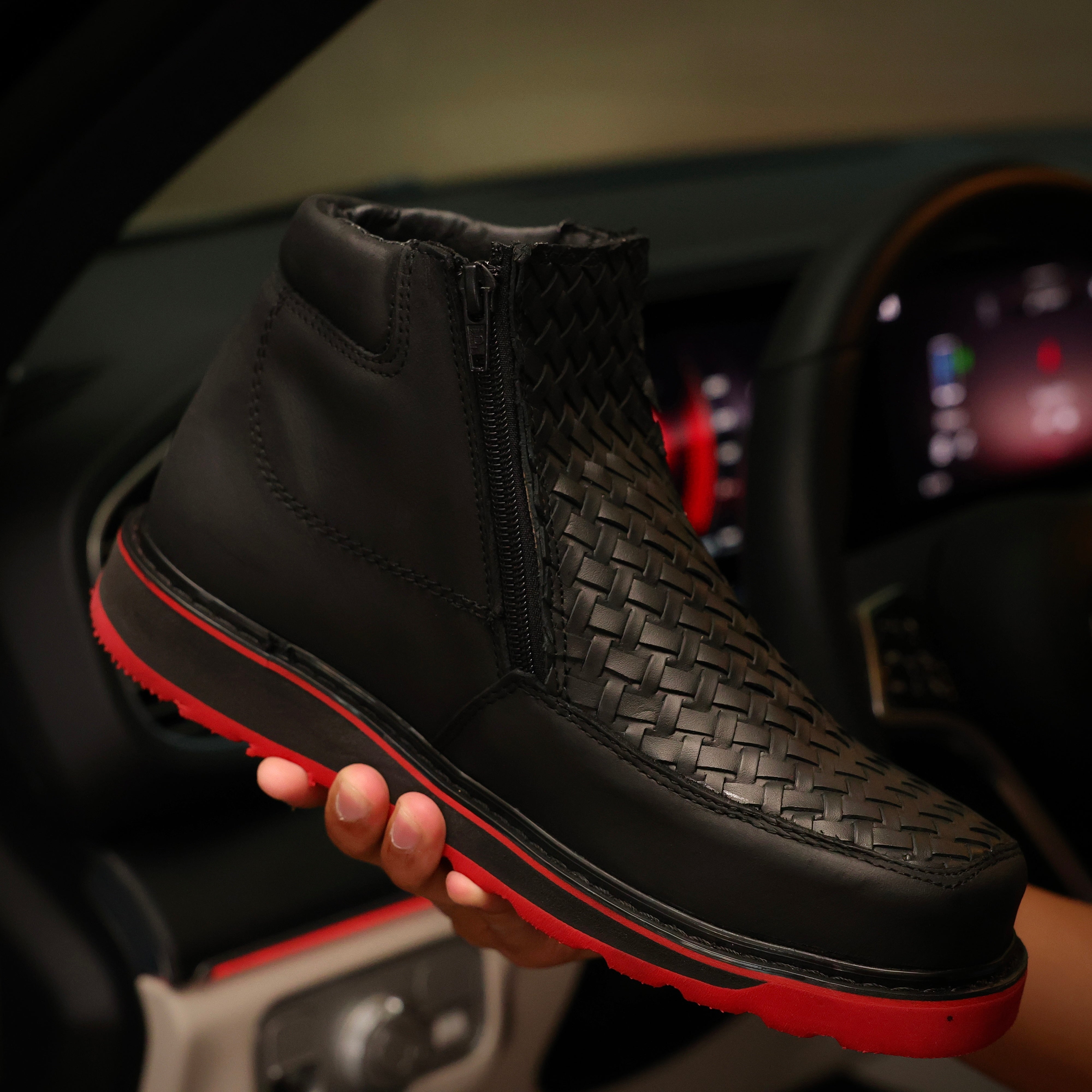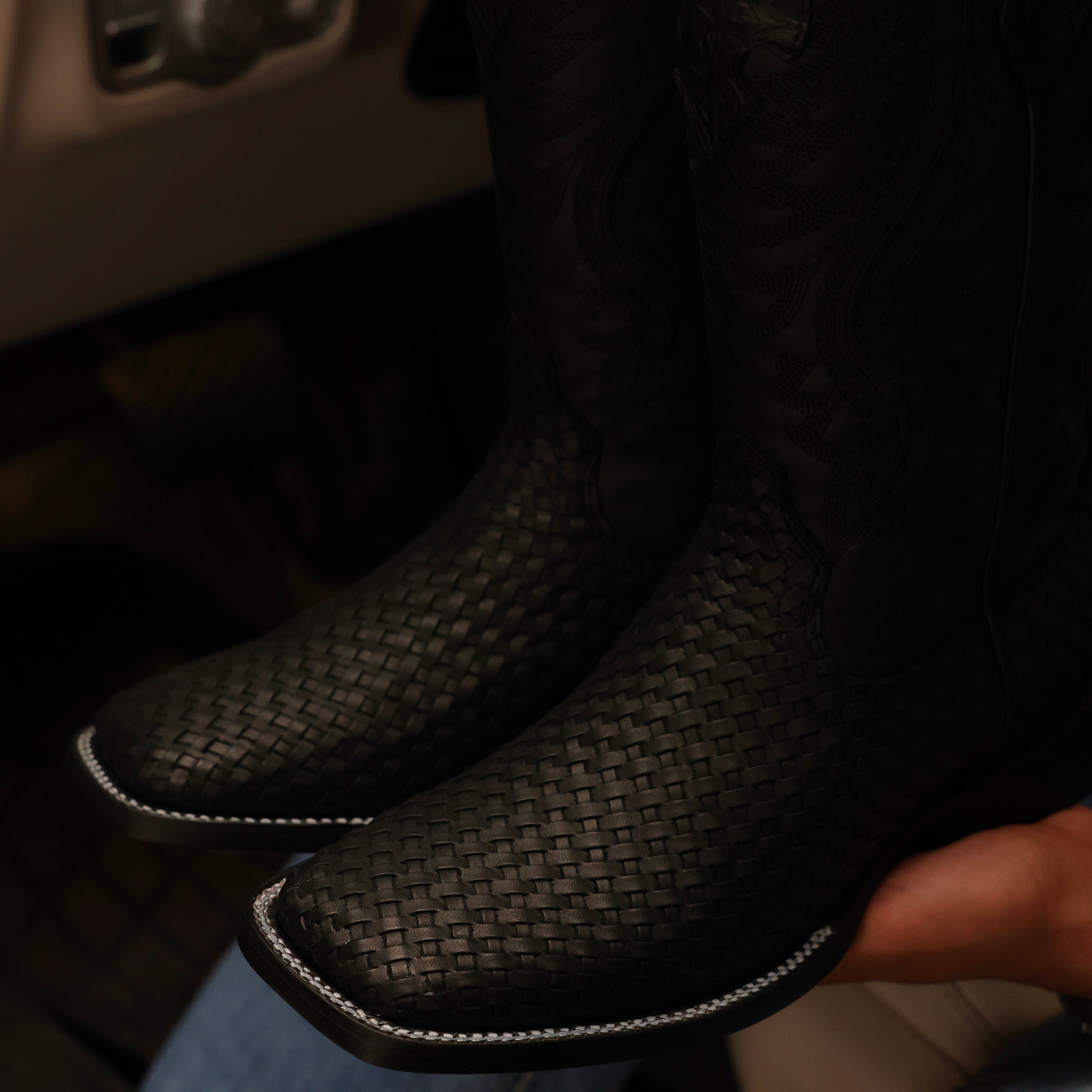 Black Basketweave Leather Boots — Square Toe