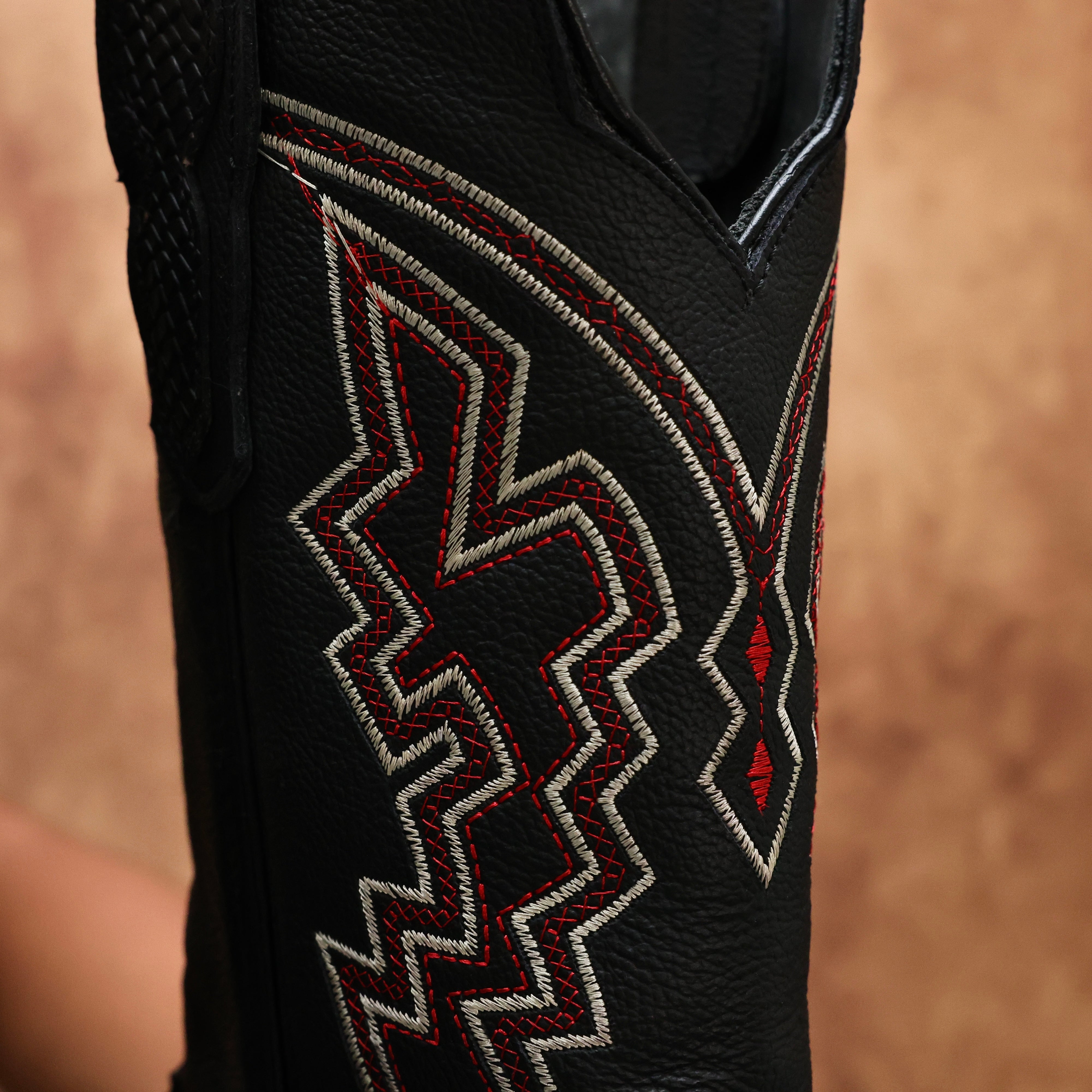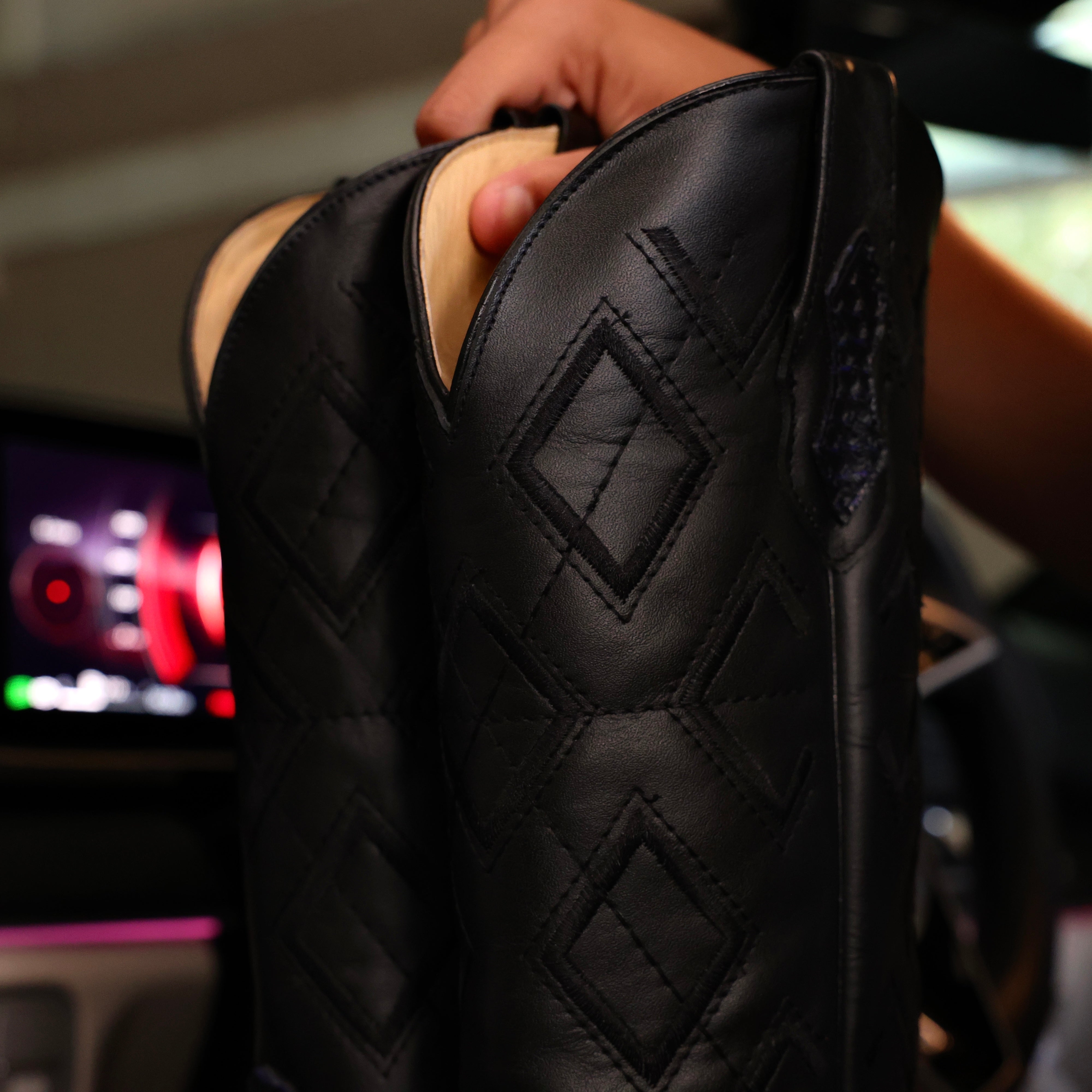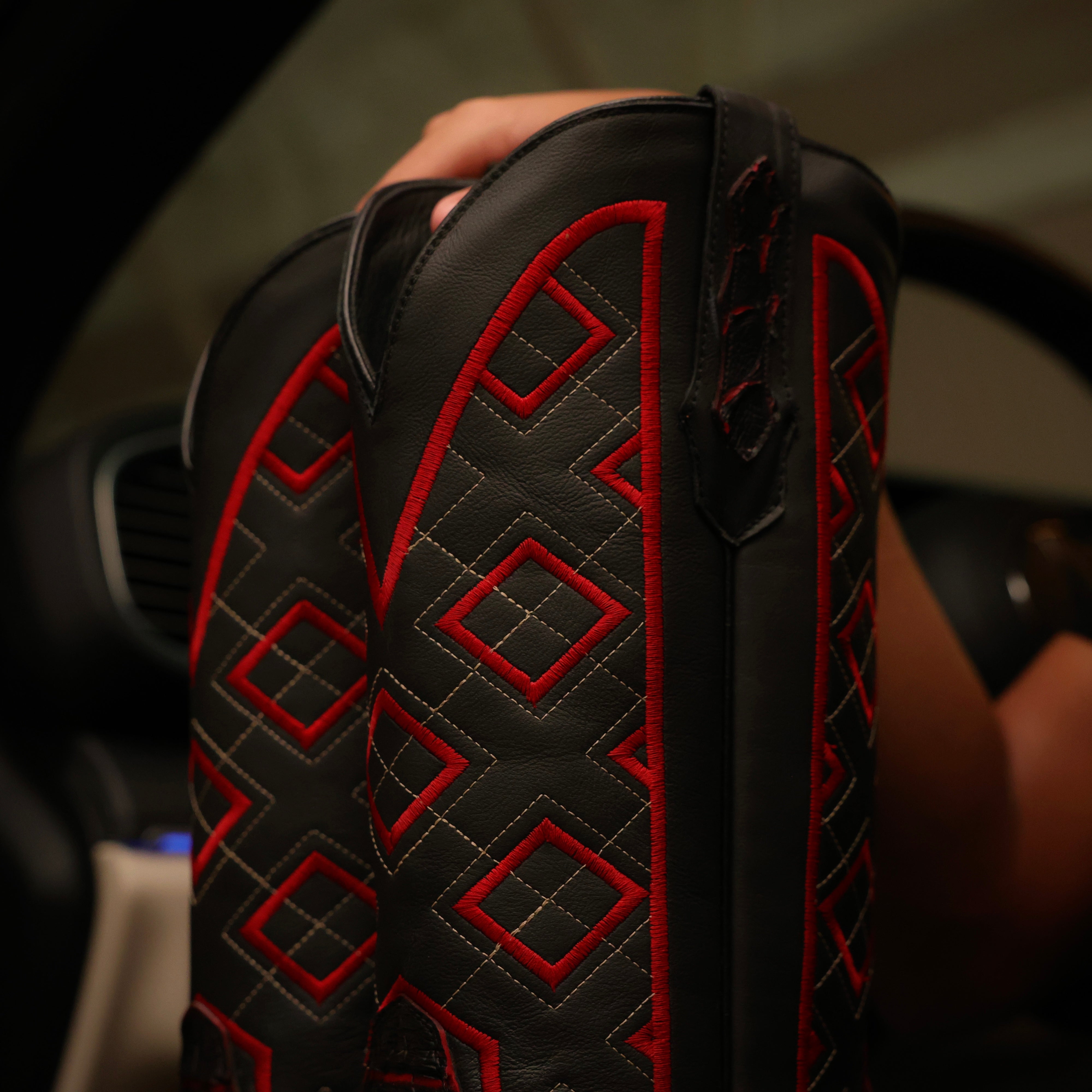 Black Basketweave Leather Boots — Square Toe