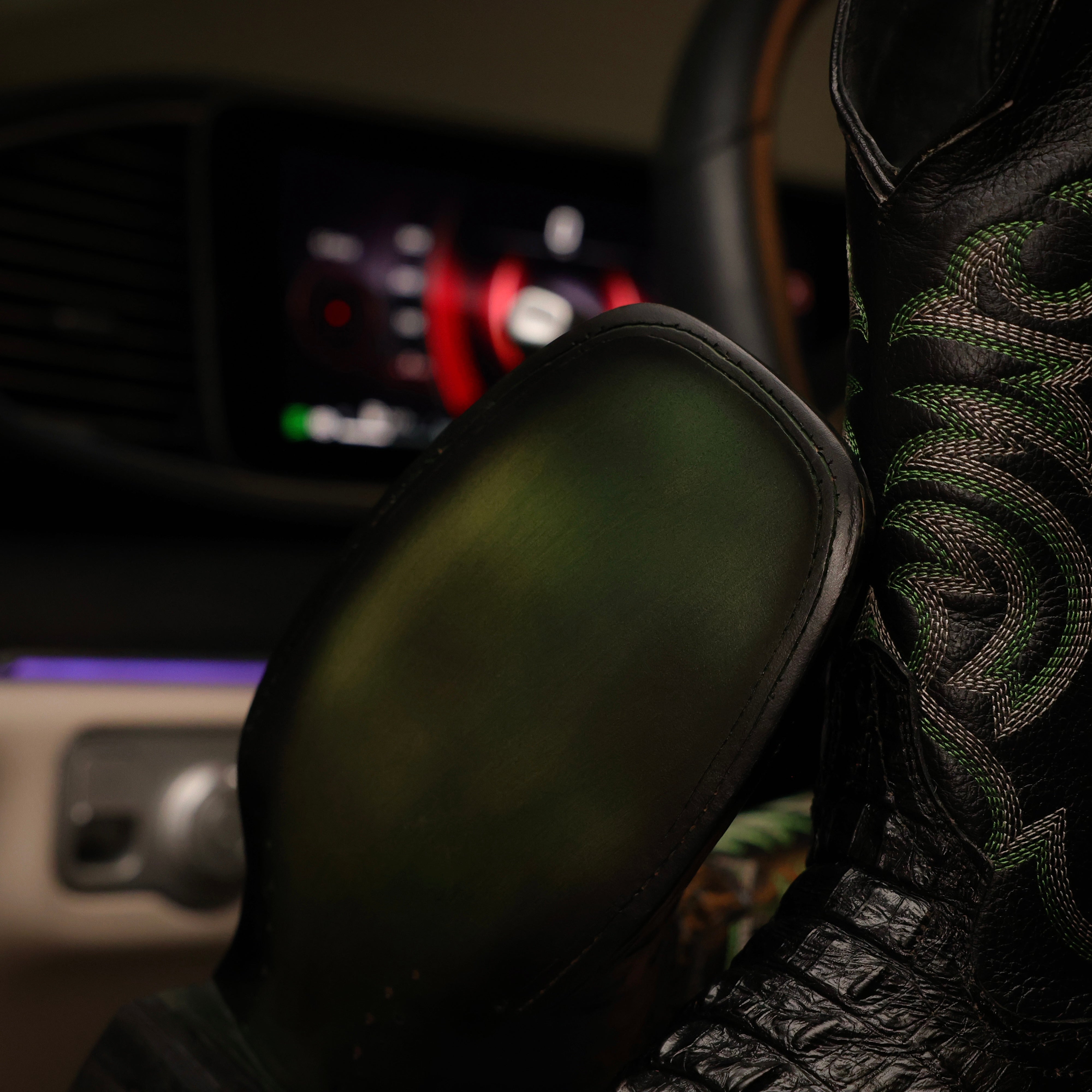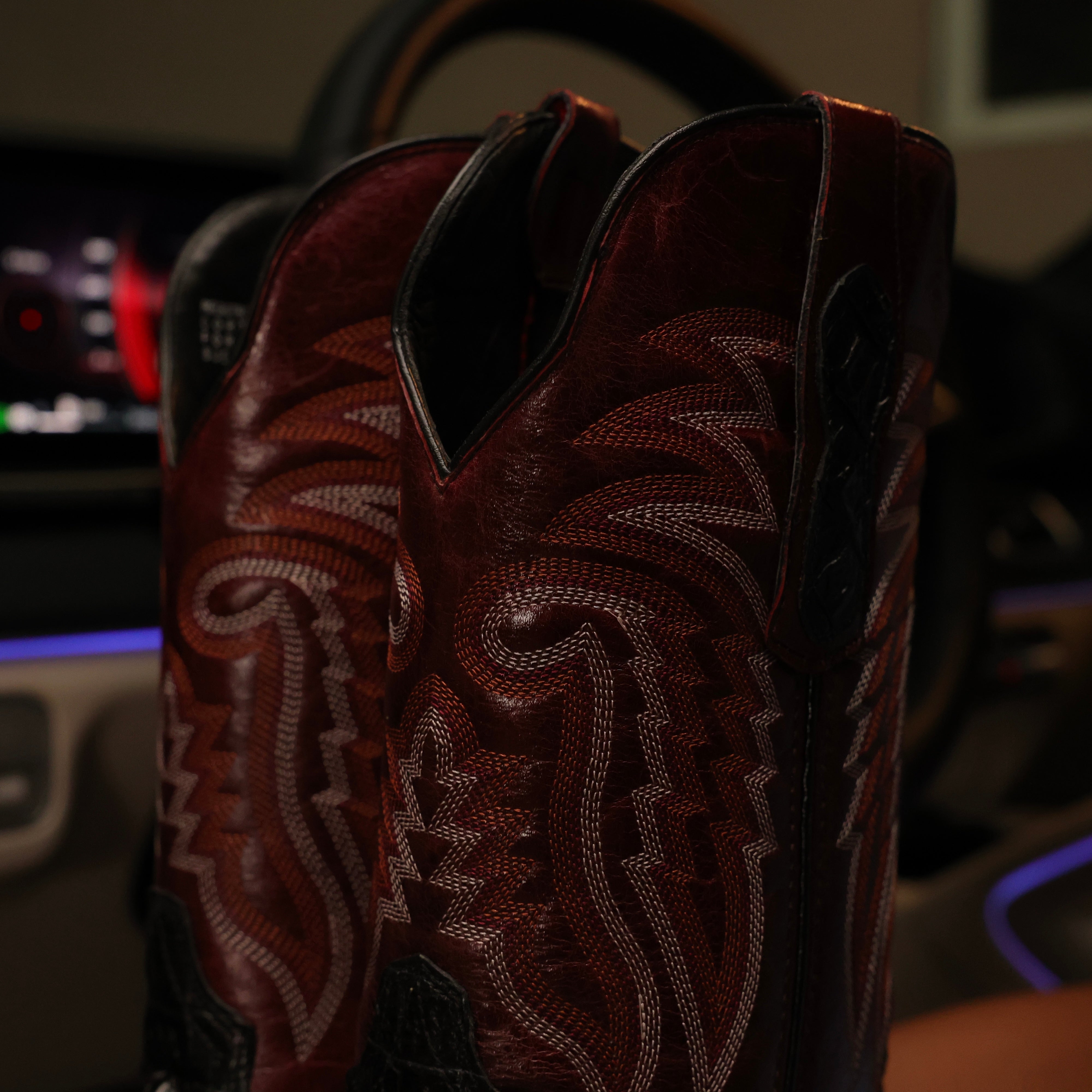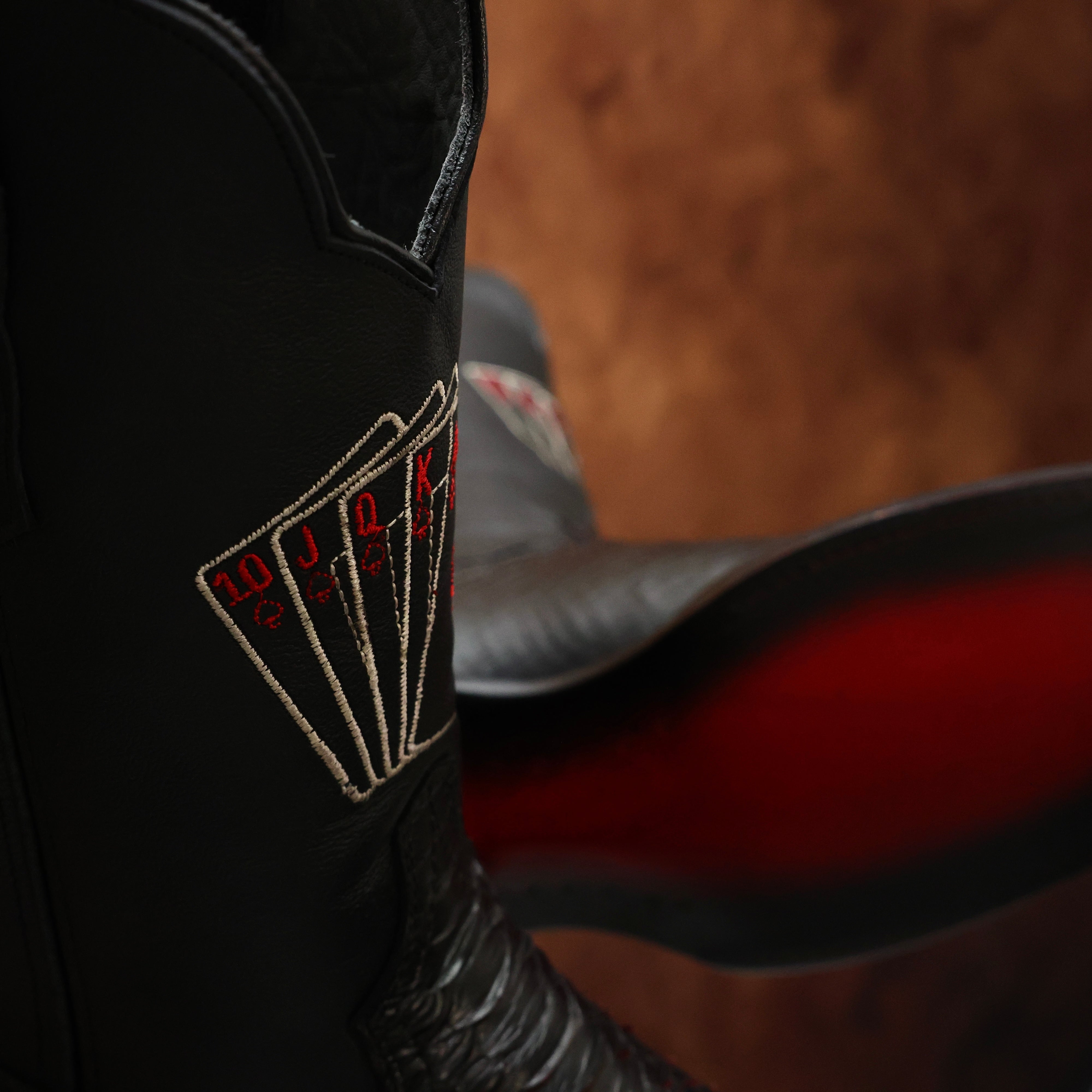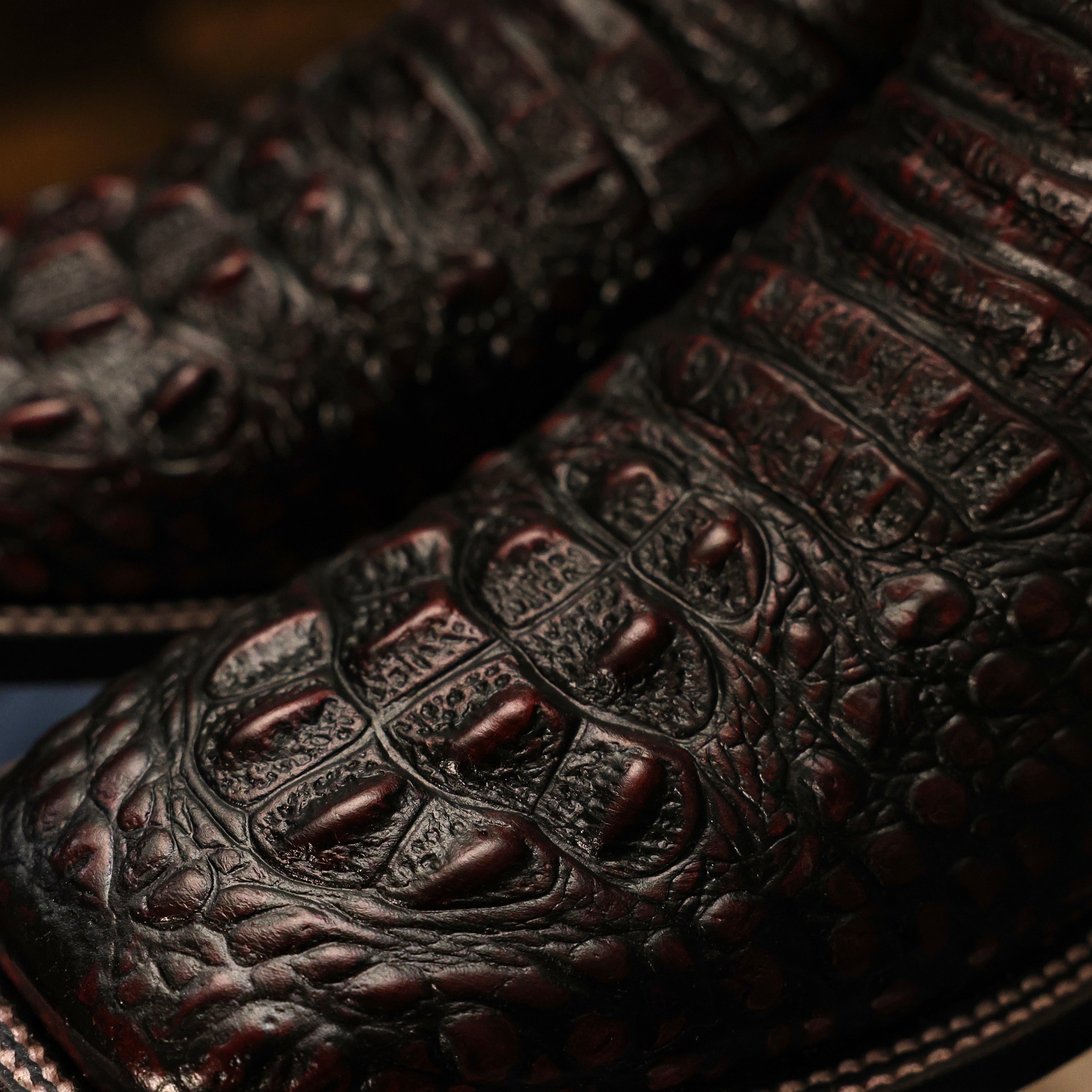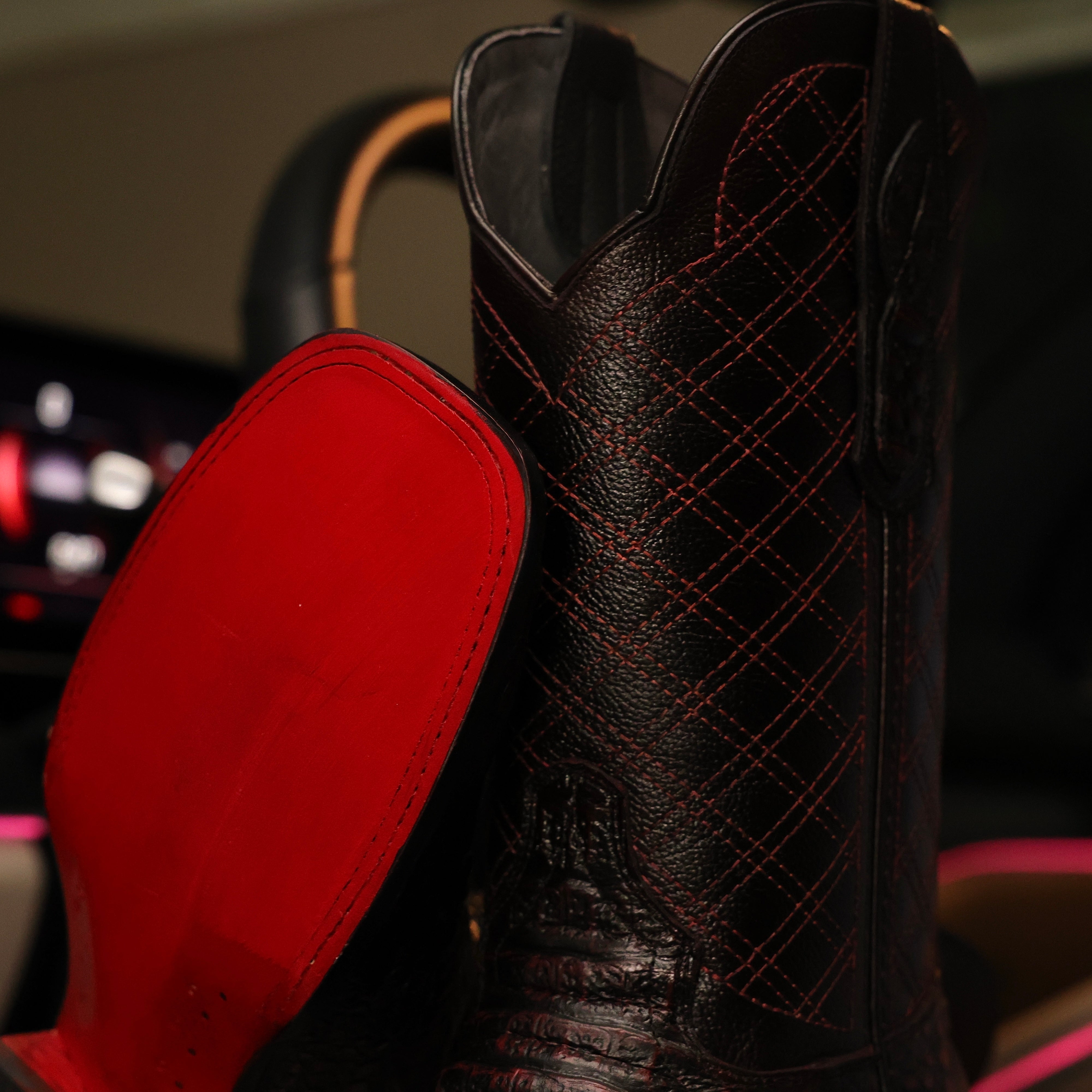 Black Cherry Caiman Neck Leather Boots - Square Toe
