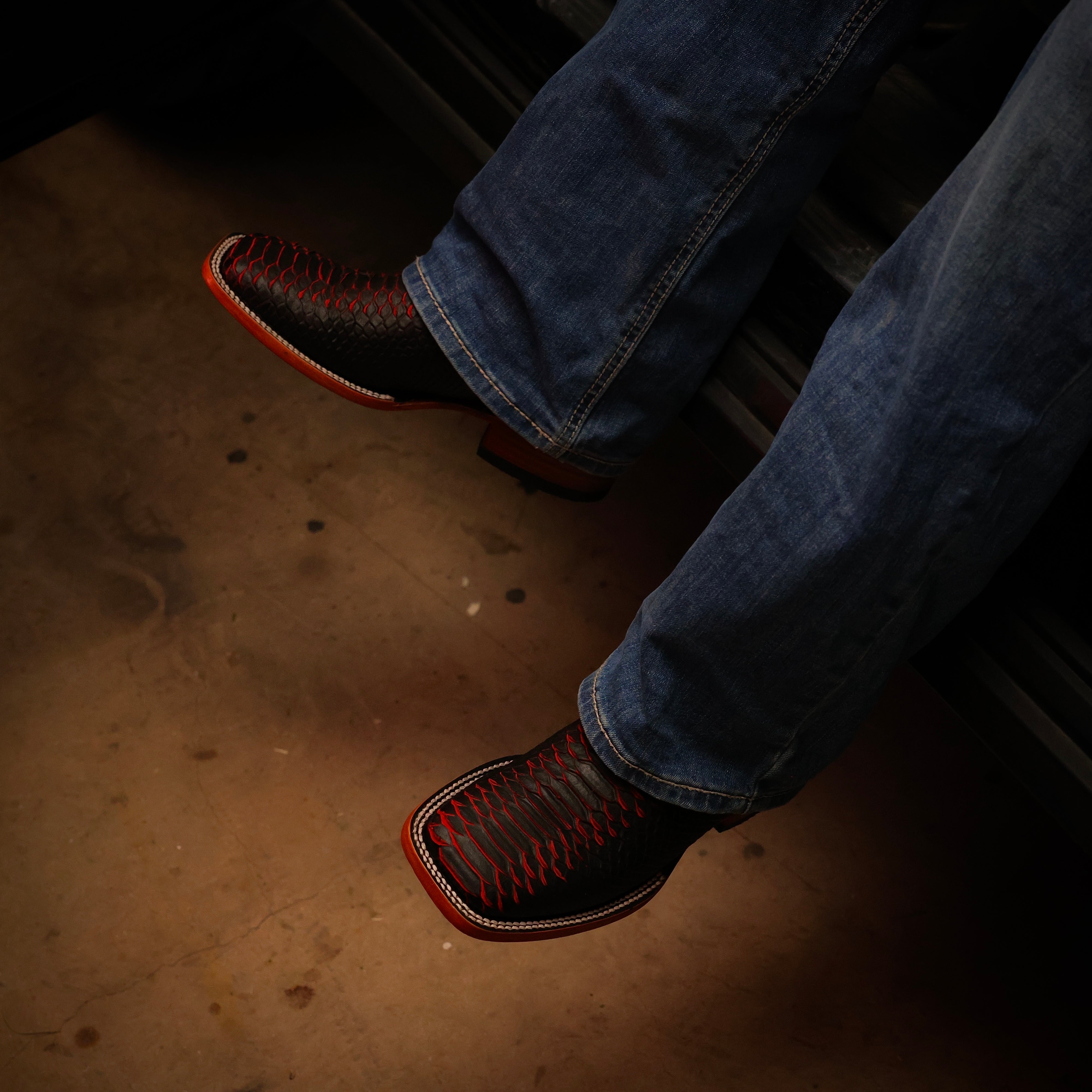 Matte Black Python Boots—Square Toe