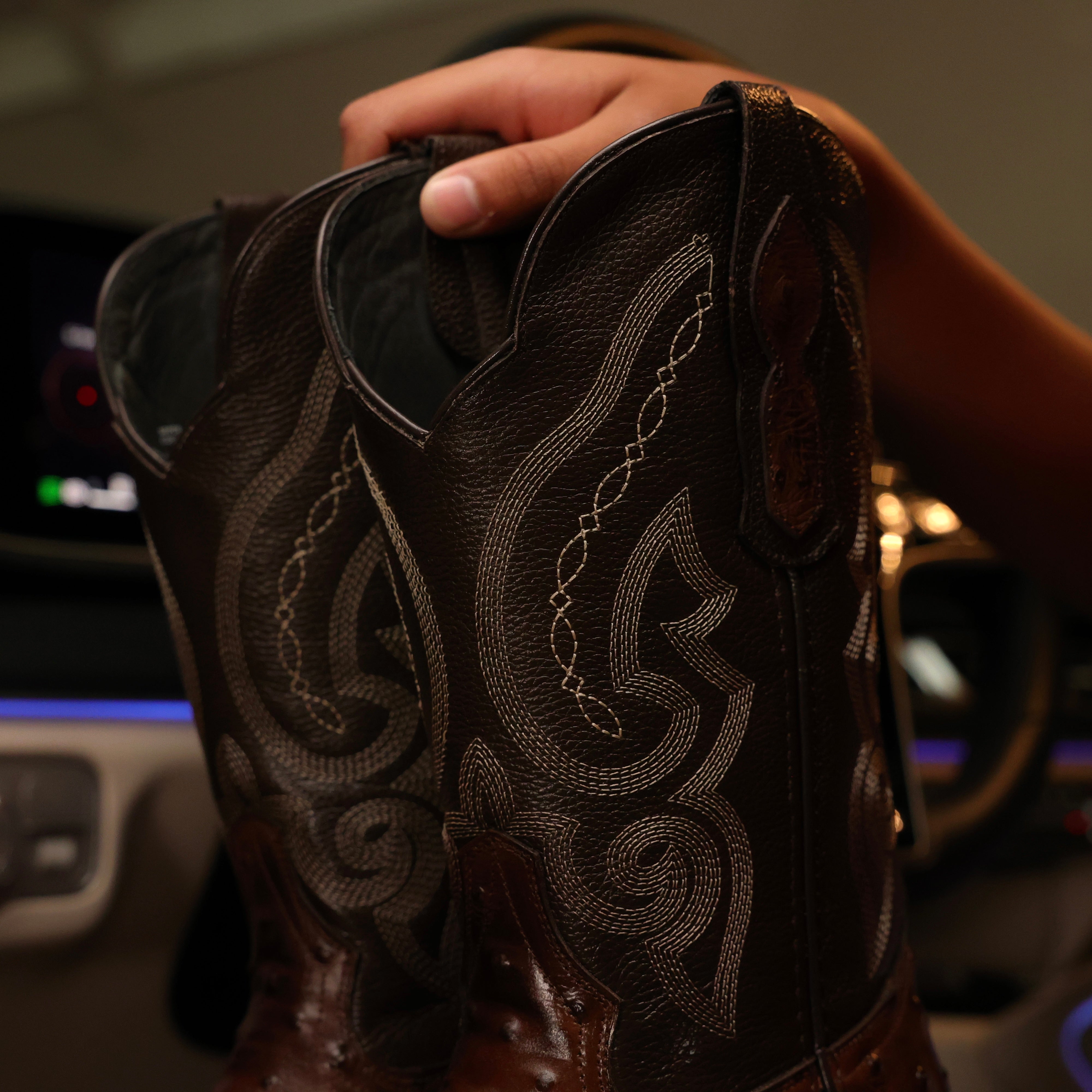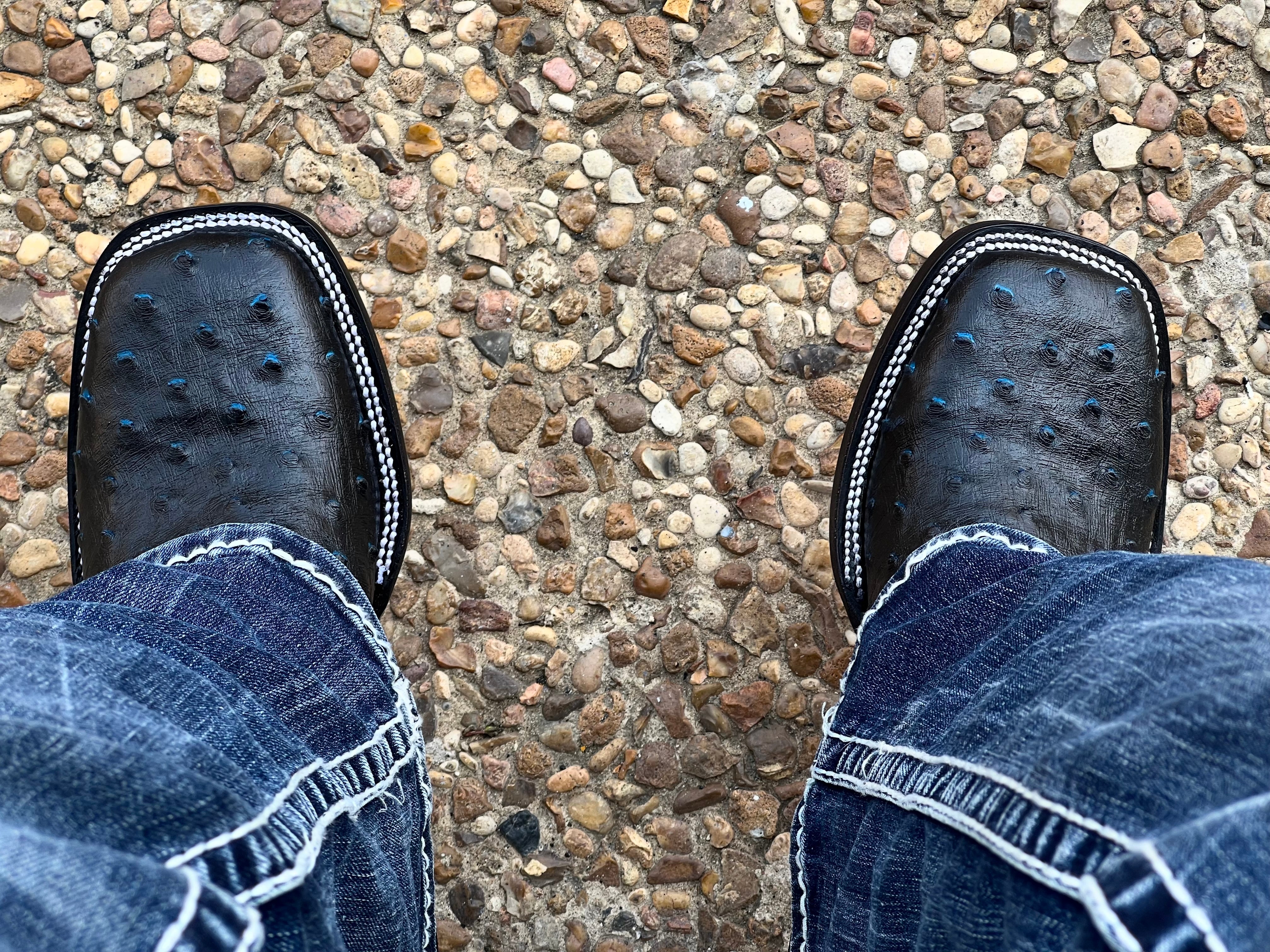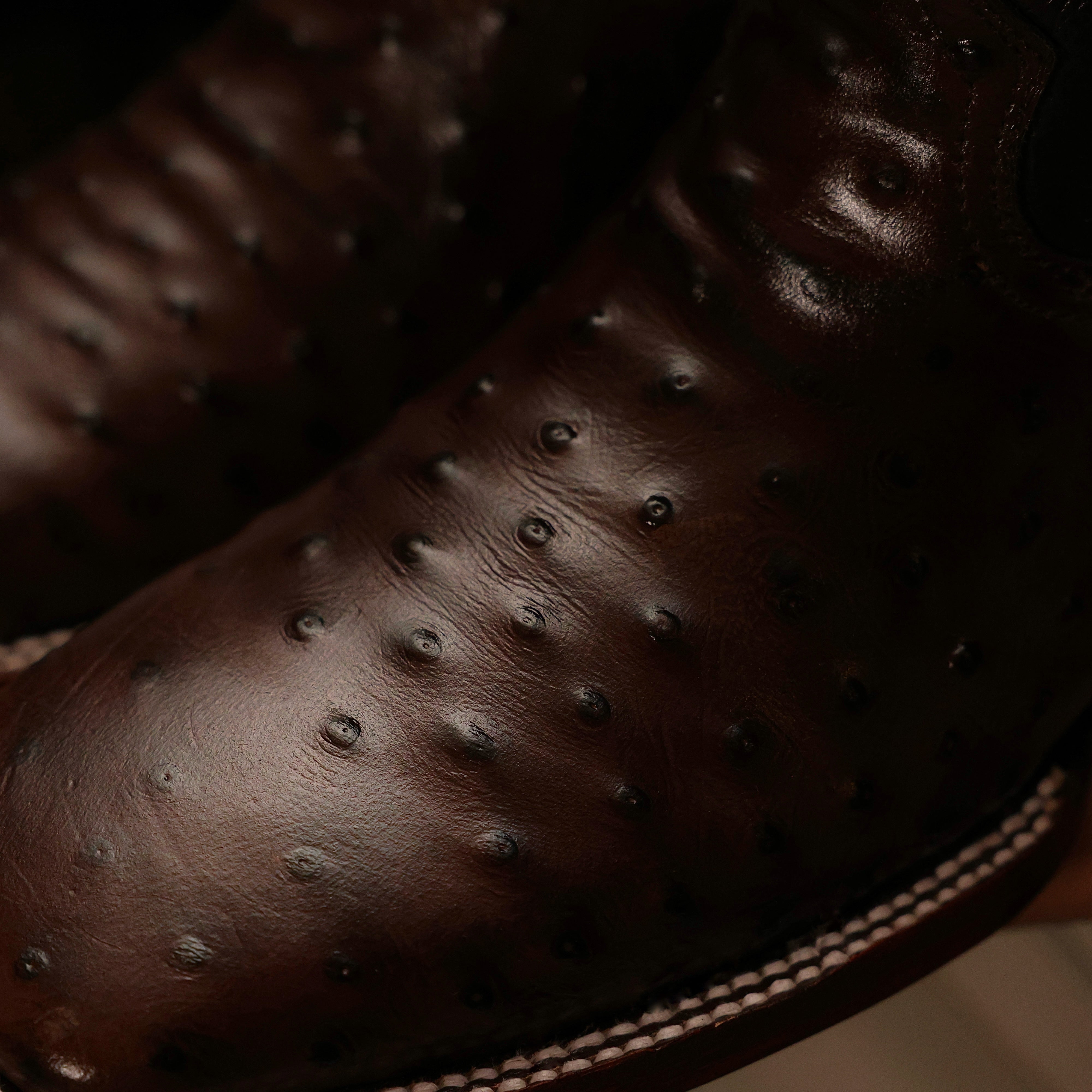 Chocolate Brown Ostrich Leather Boots - Square Toe