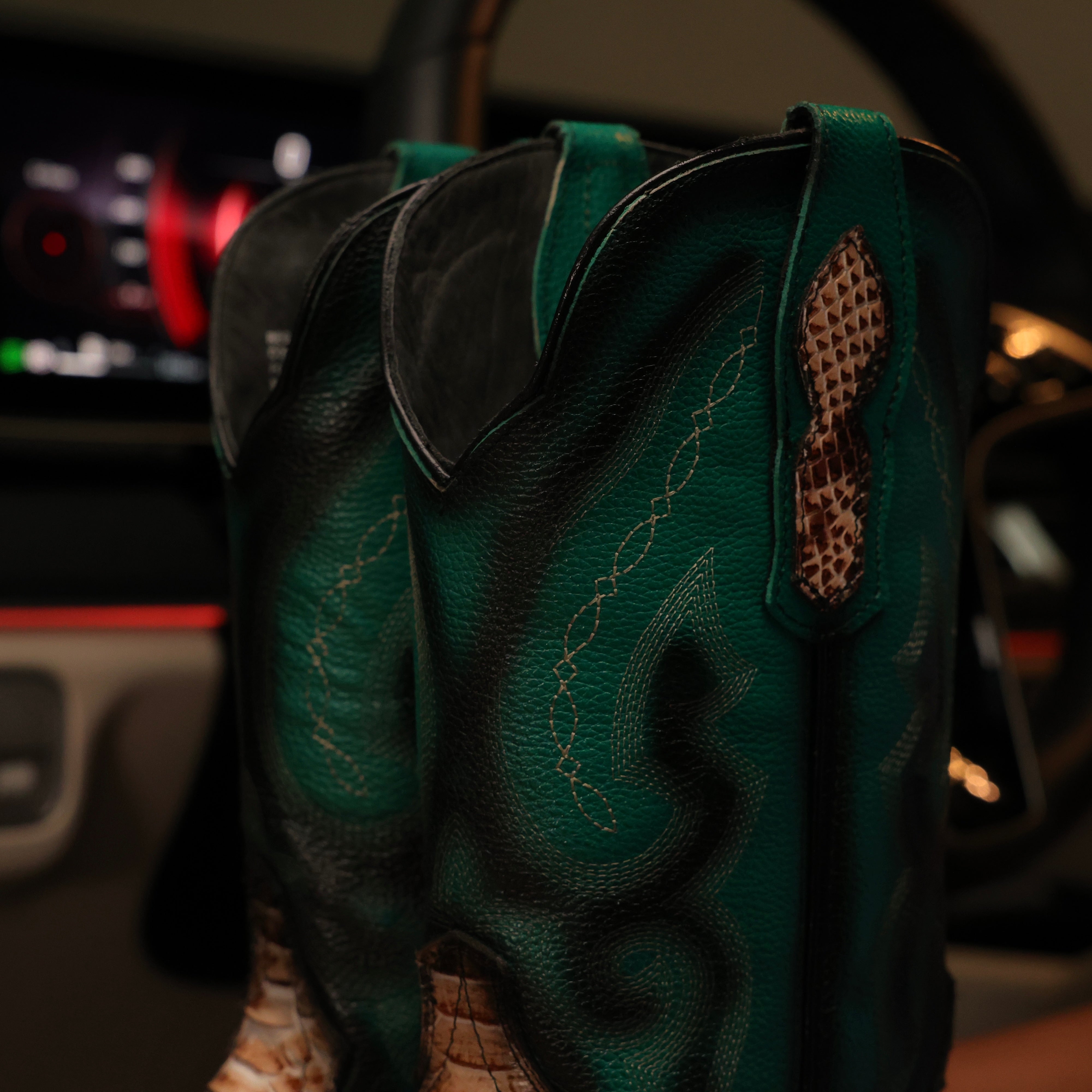 Copper Caiman Neck Leather Boots - Square Toe