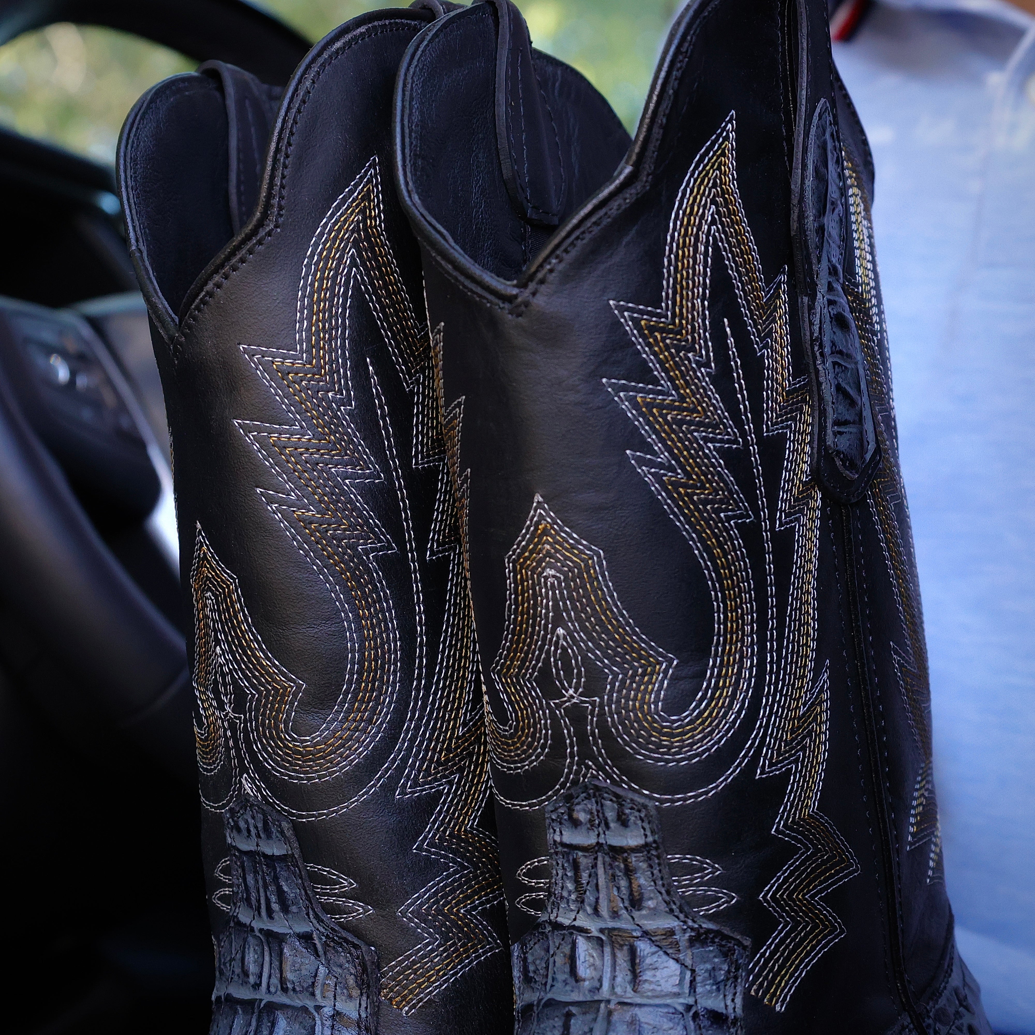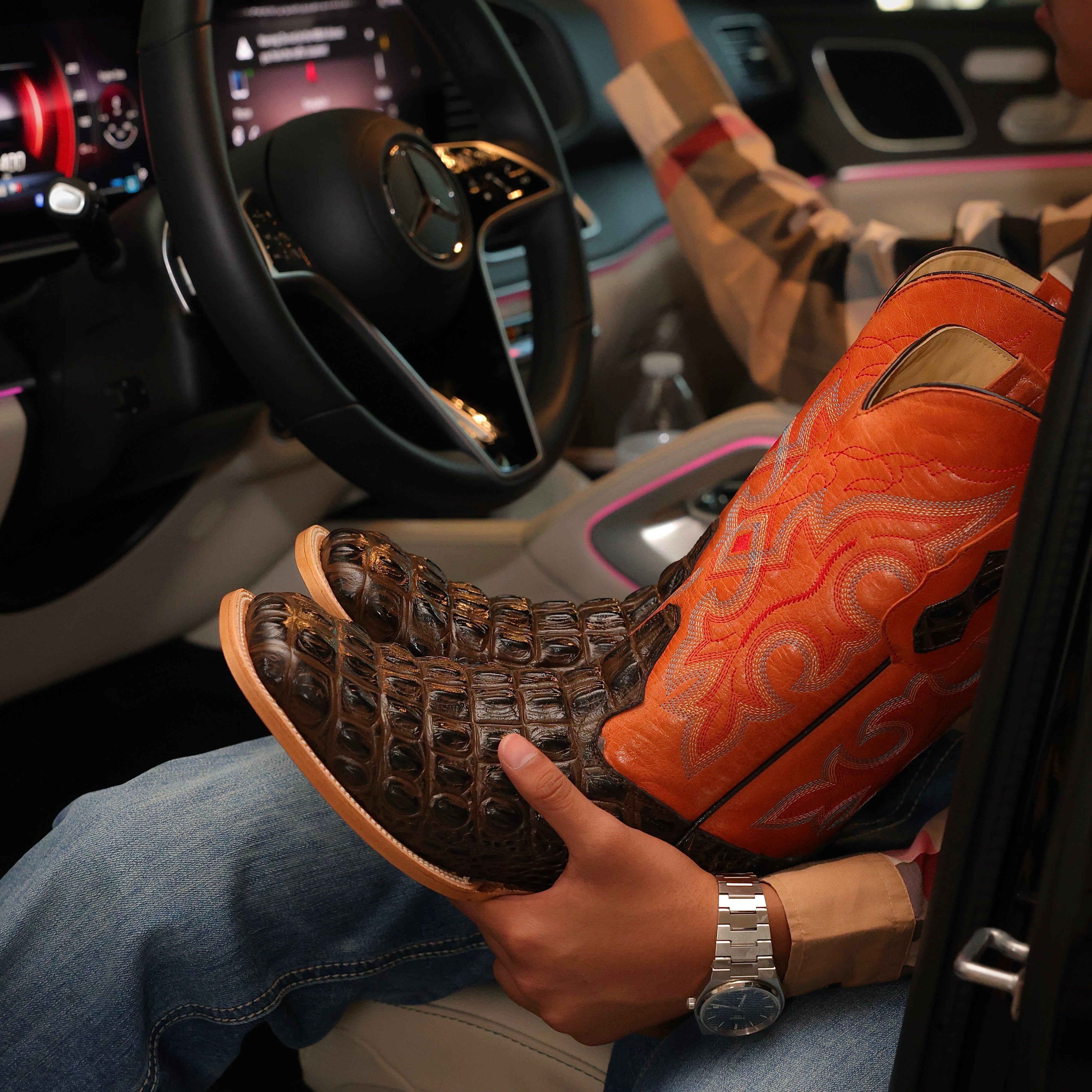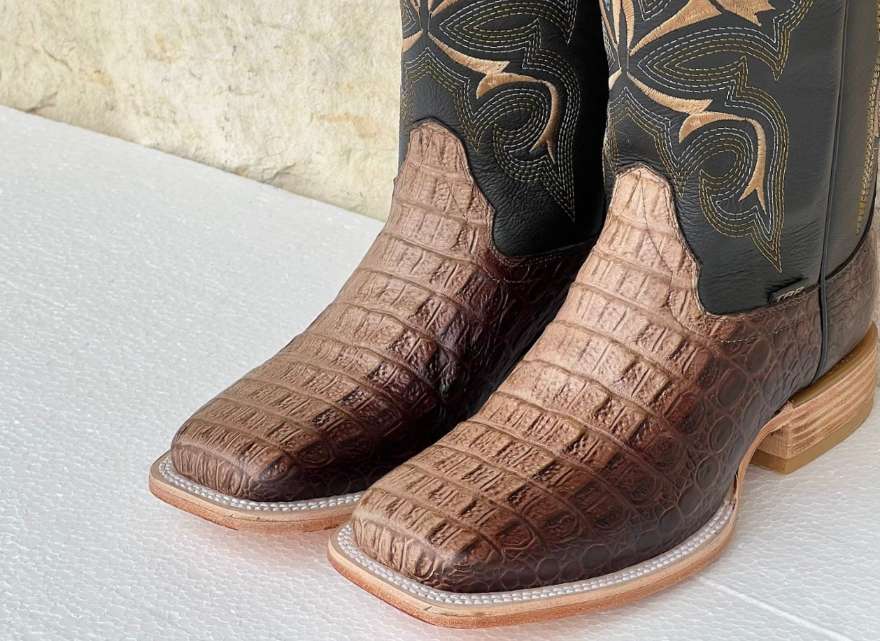 Chocolate Brown Caimán Back Leather Boots — Square Toe