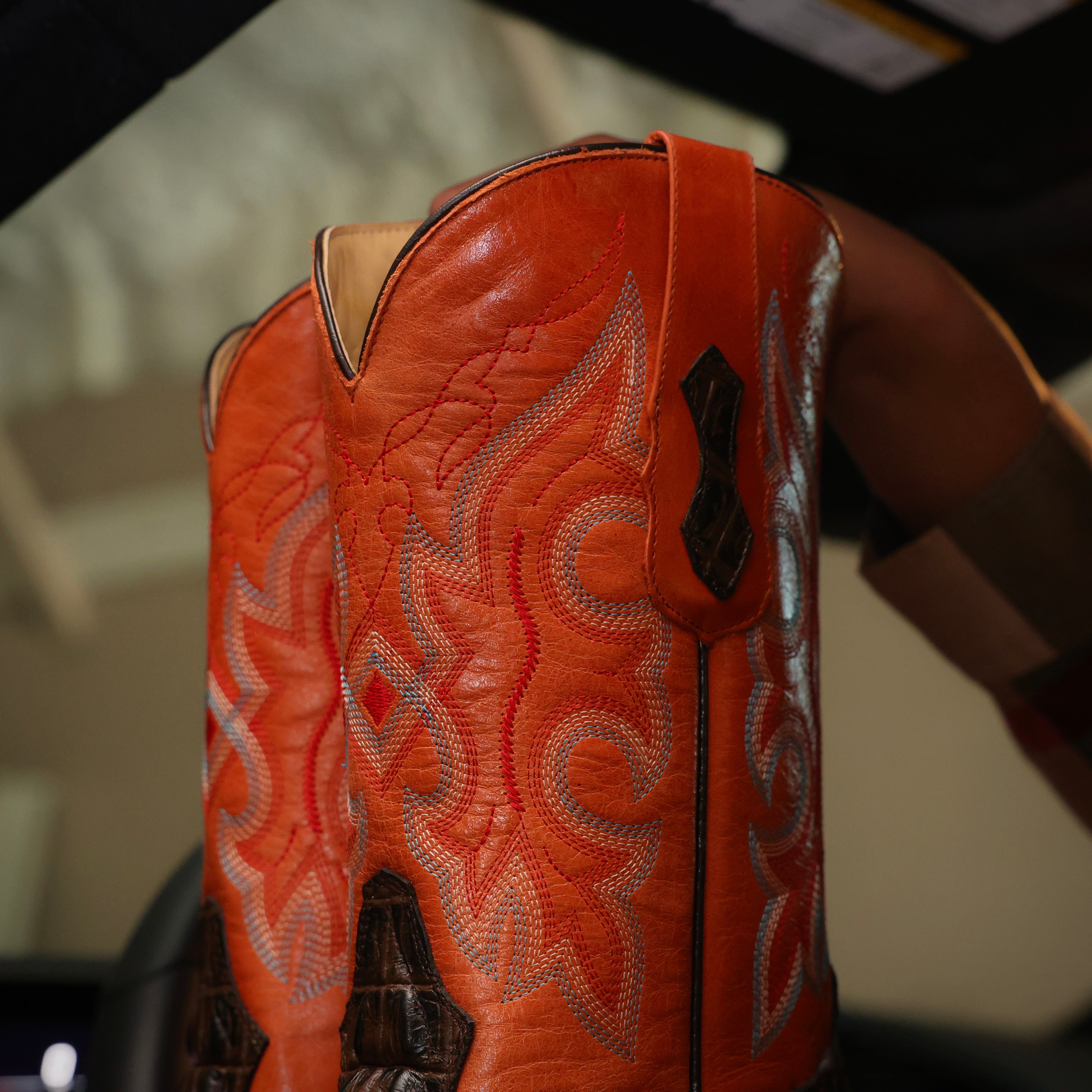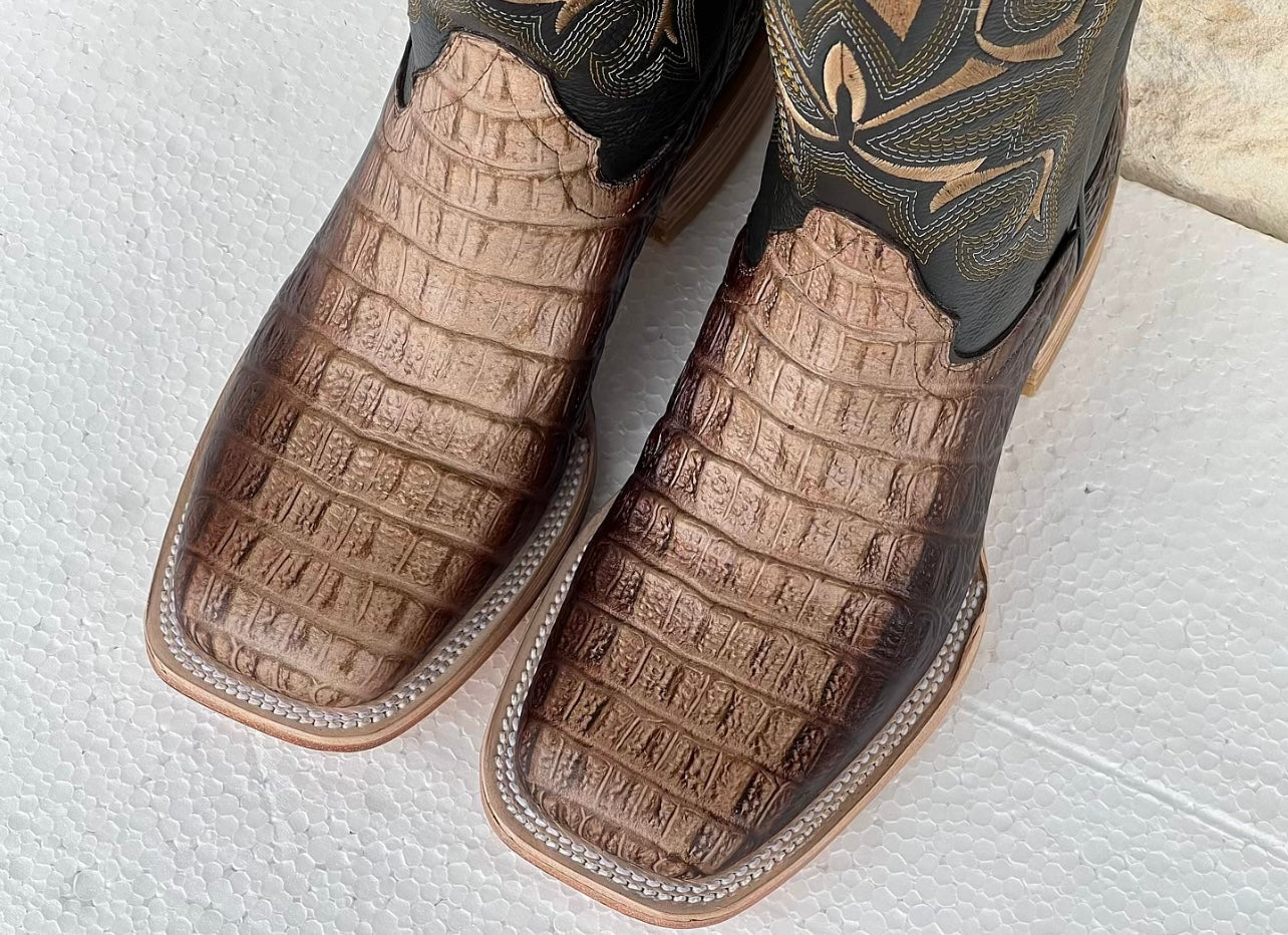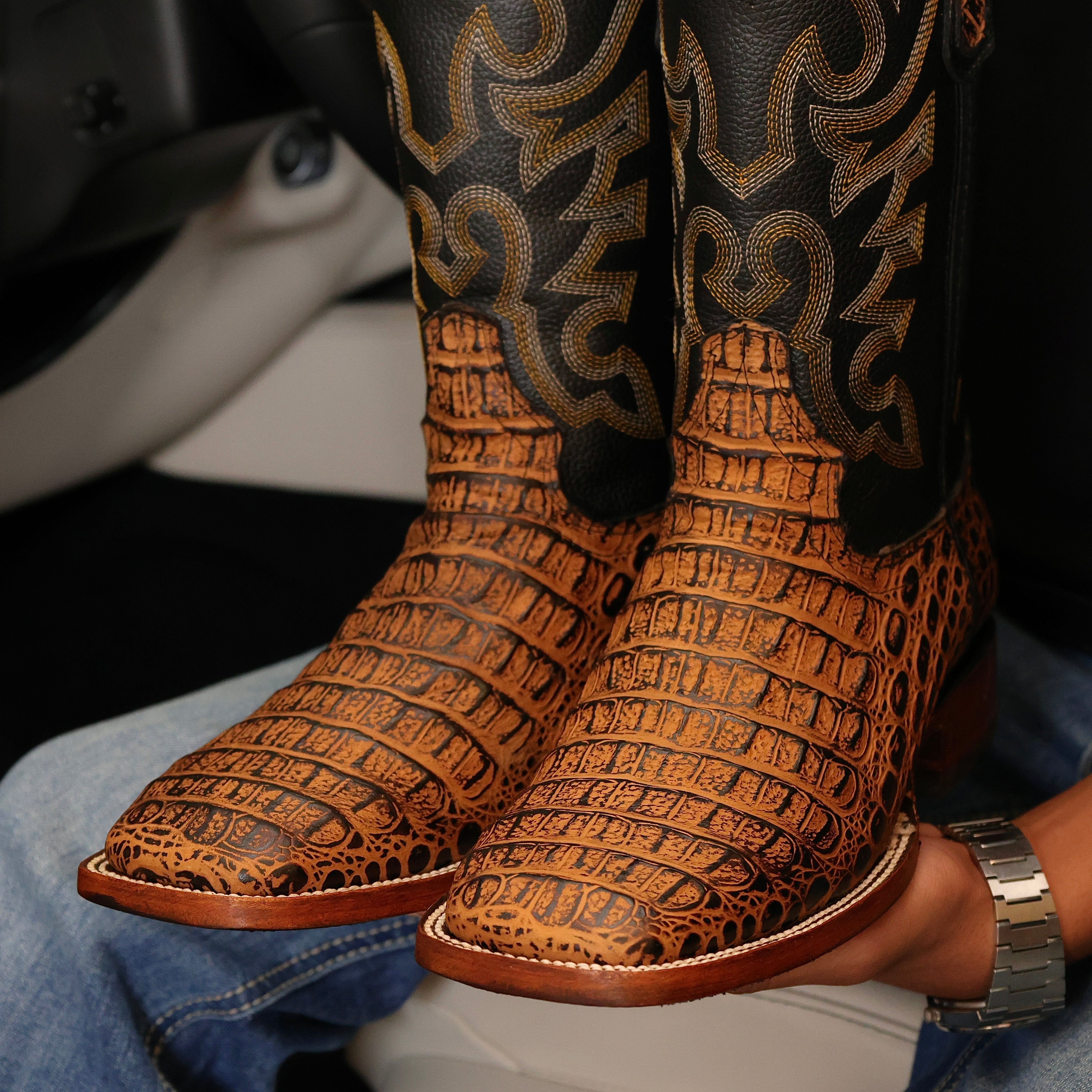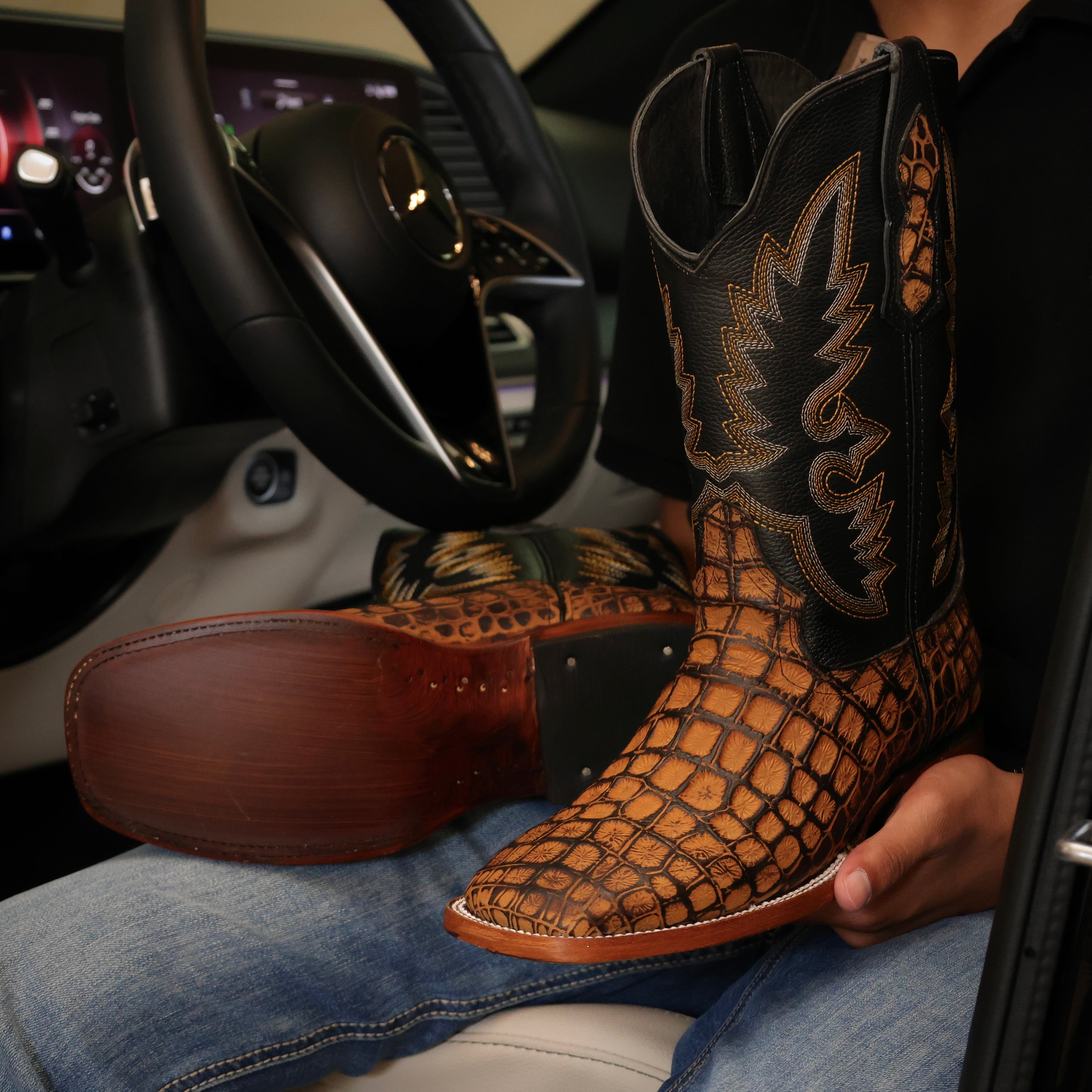Rustic Honey Argentine Crocodile Leather Boots — Square Toe