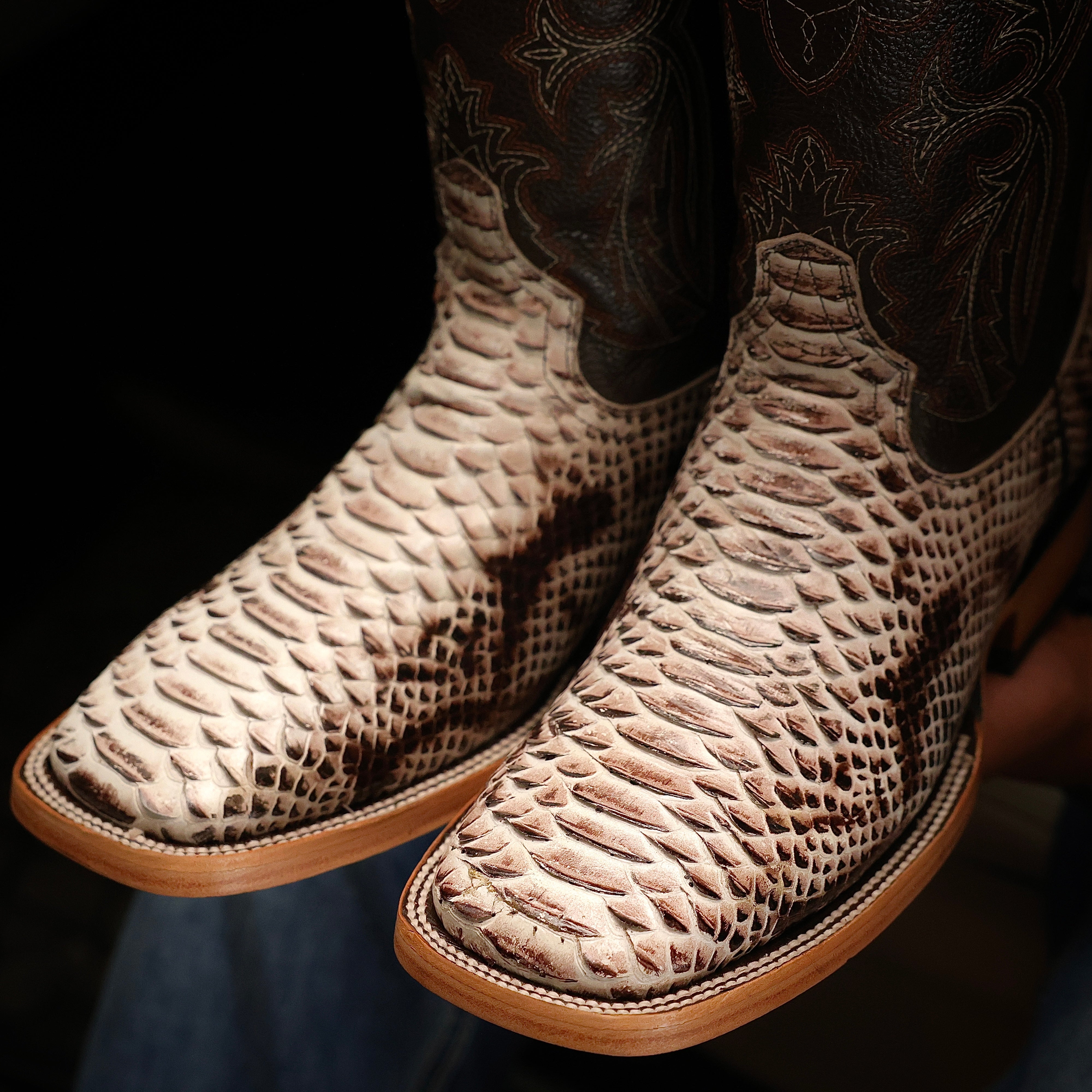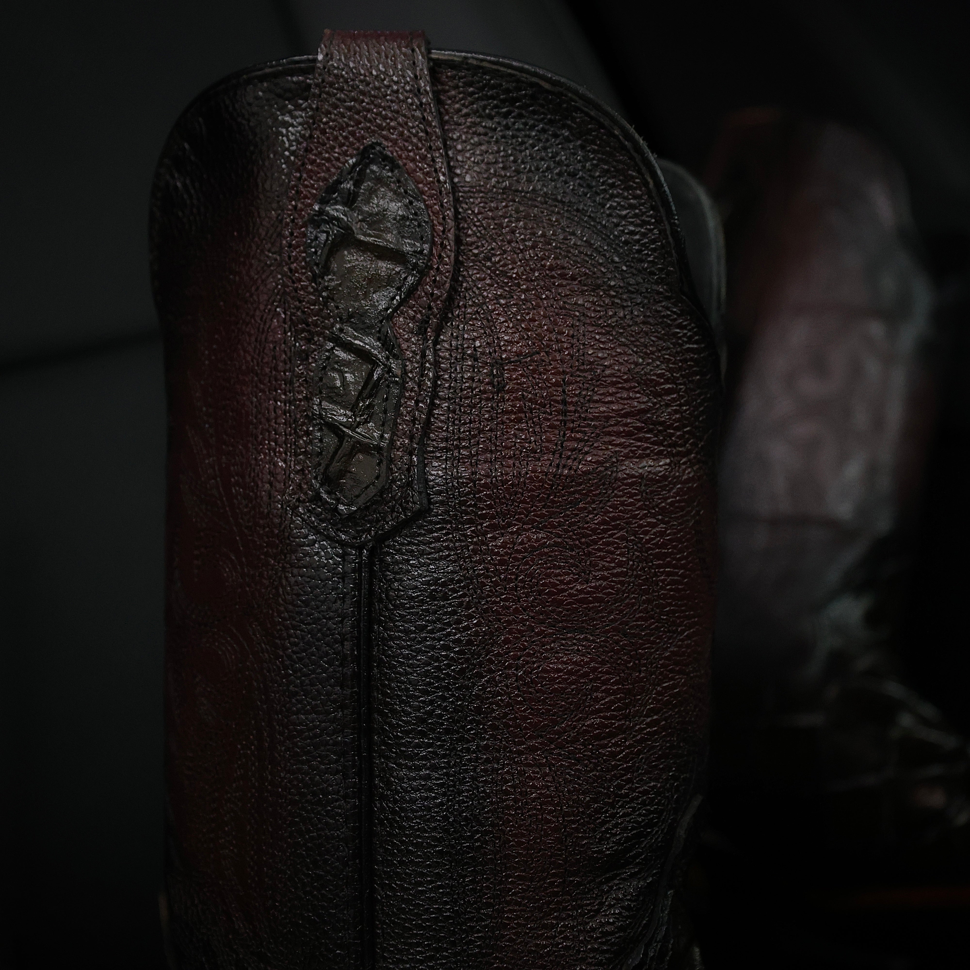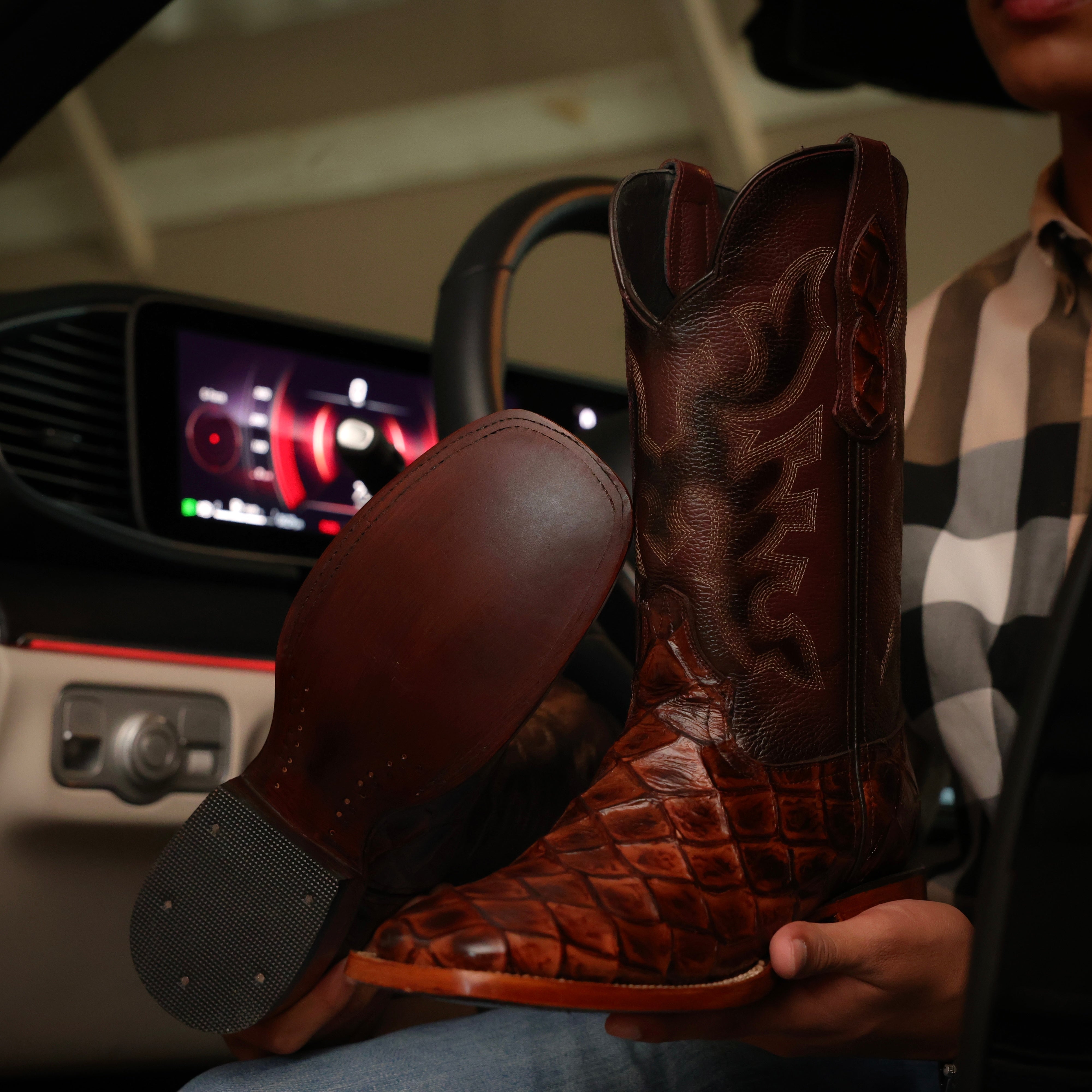 Dark Wine Pirarucu Leather Boots — Square Toe