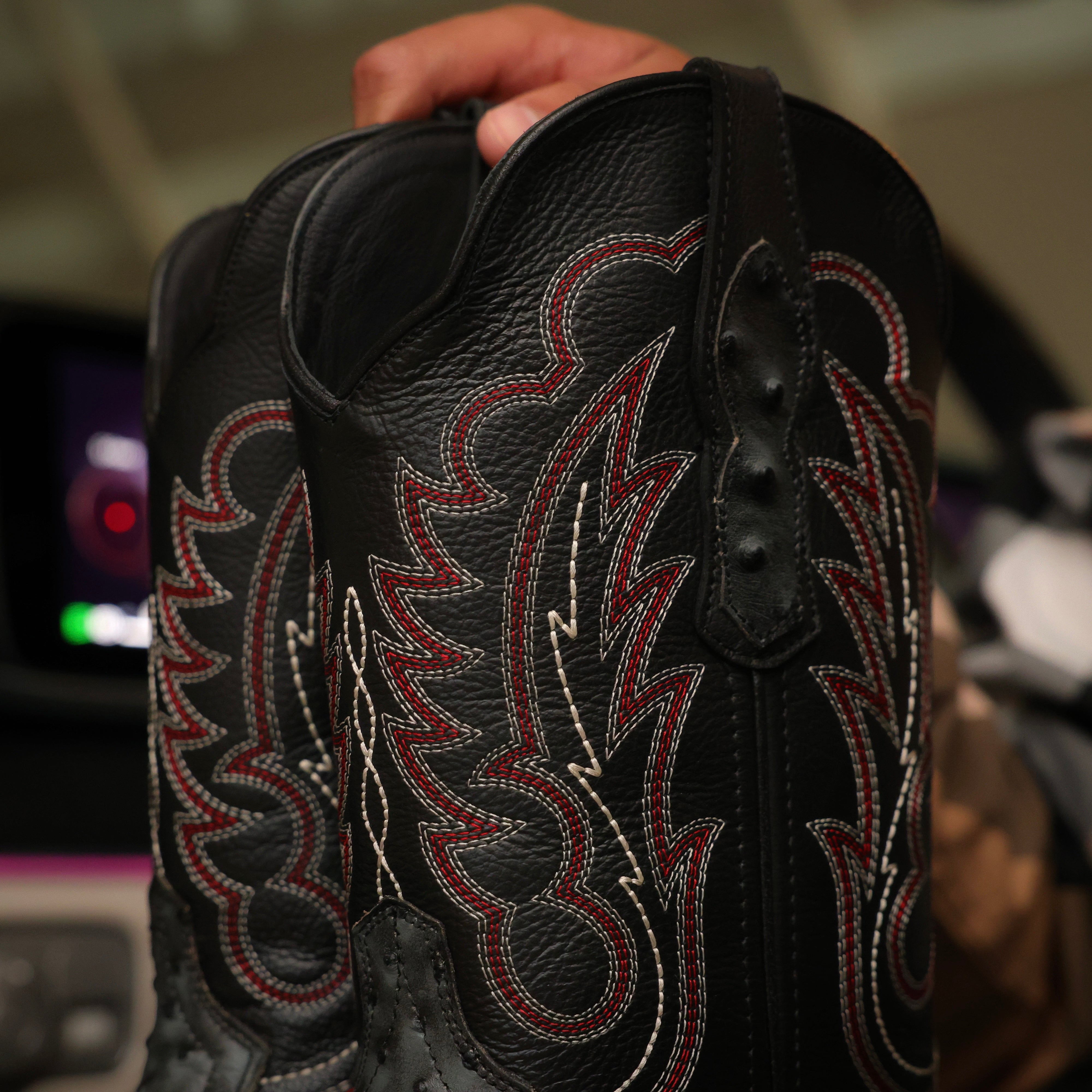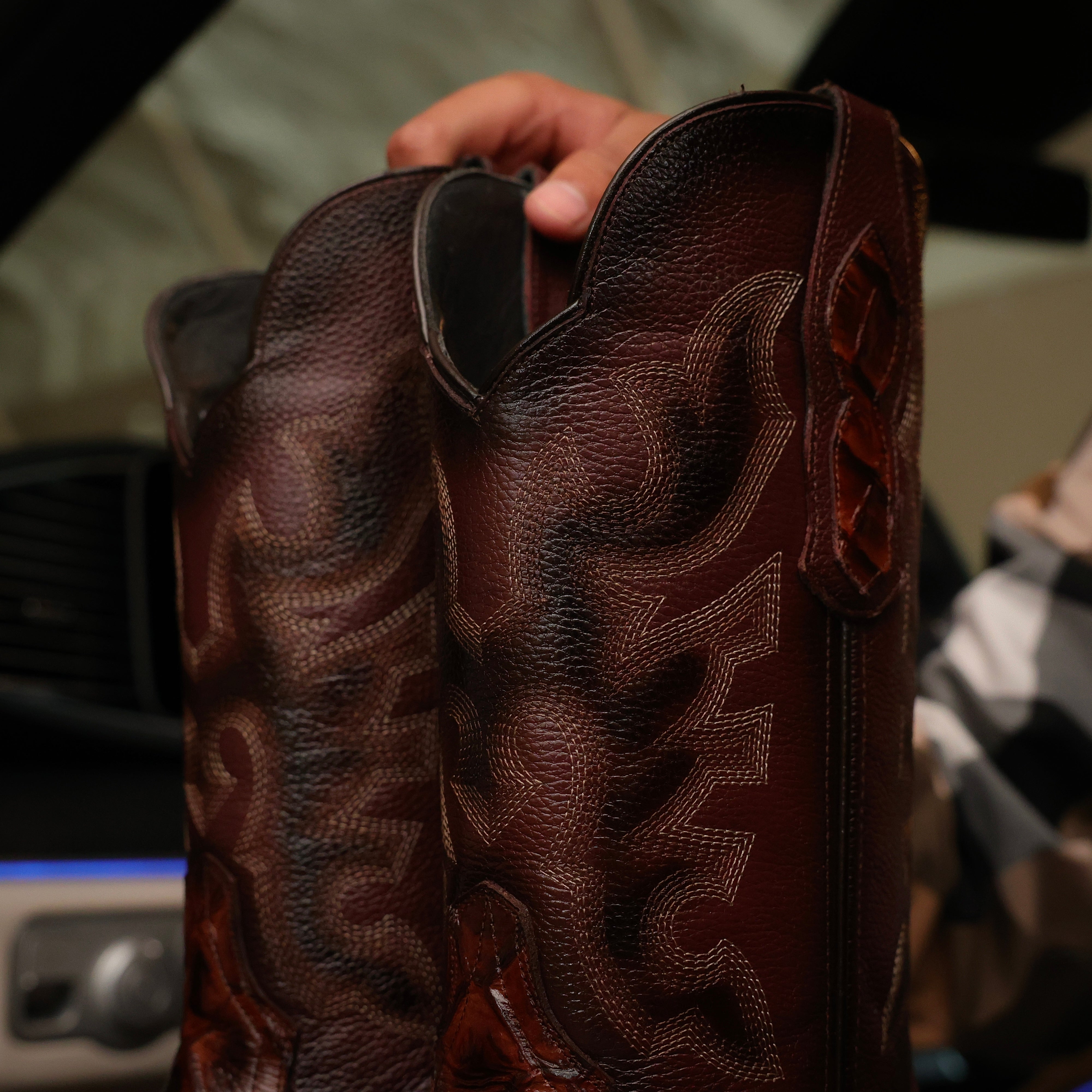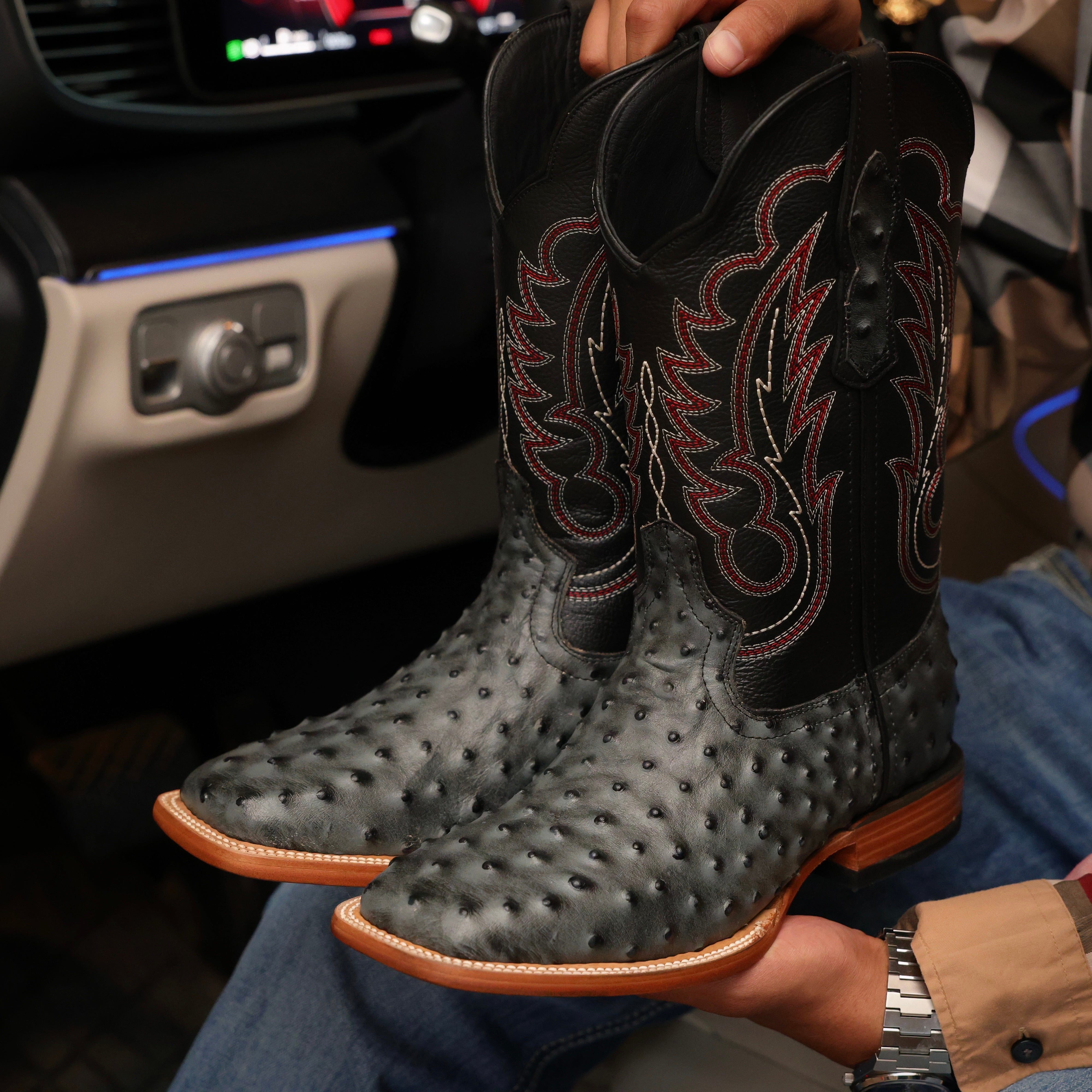 Men’s Chocolate Ostrich Leather Boots — Square Toe