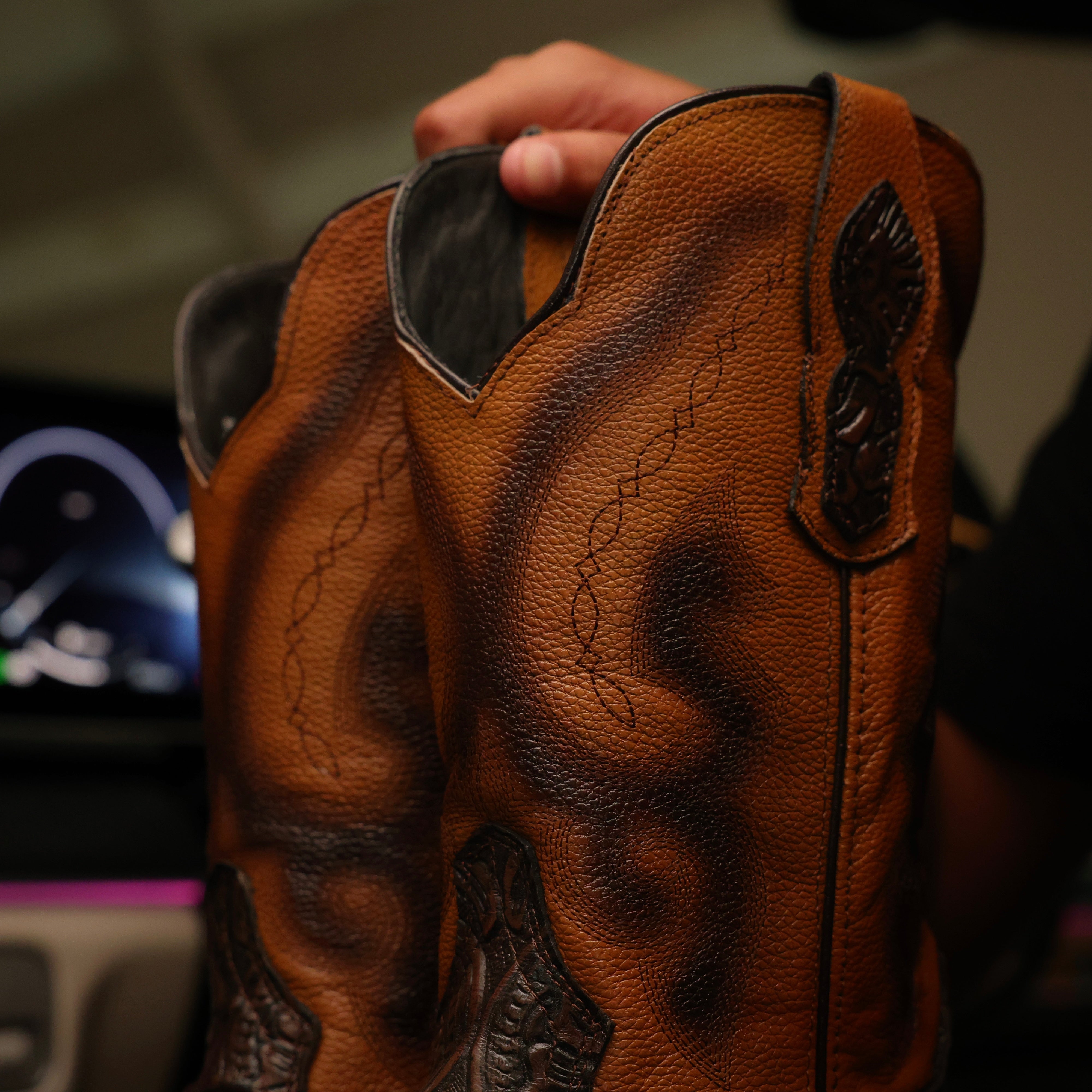 Cinnamon Brown Hand-Tooled Leather Boots — Square Toe