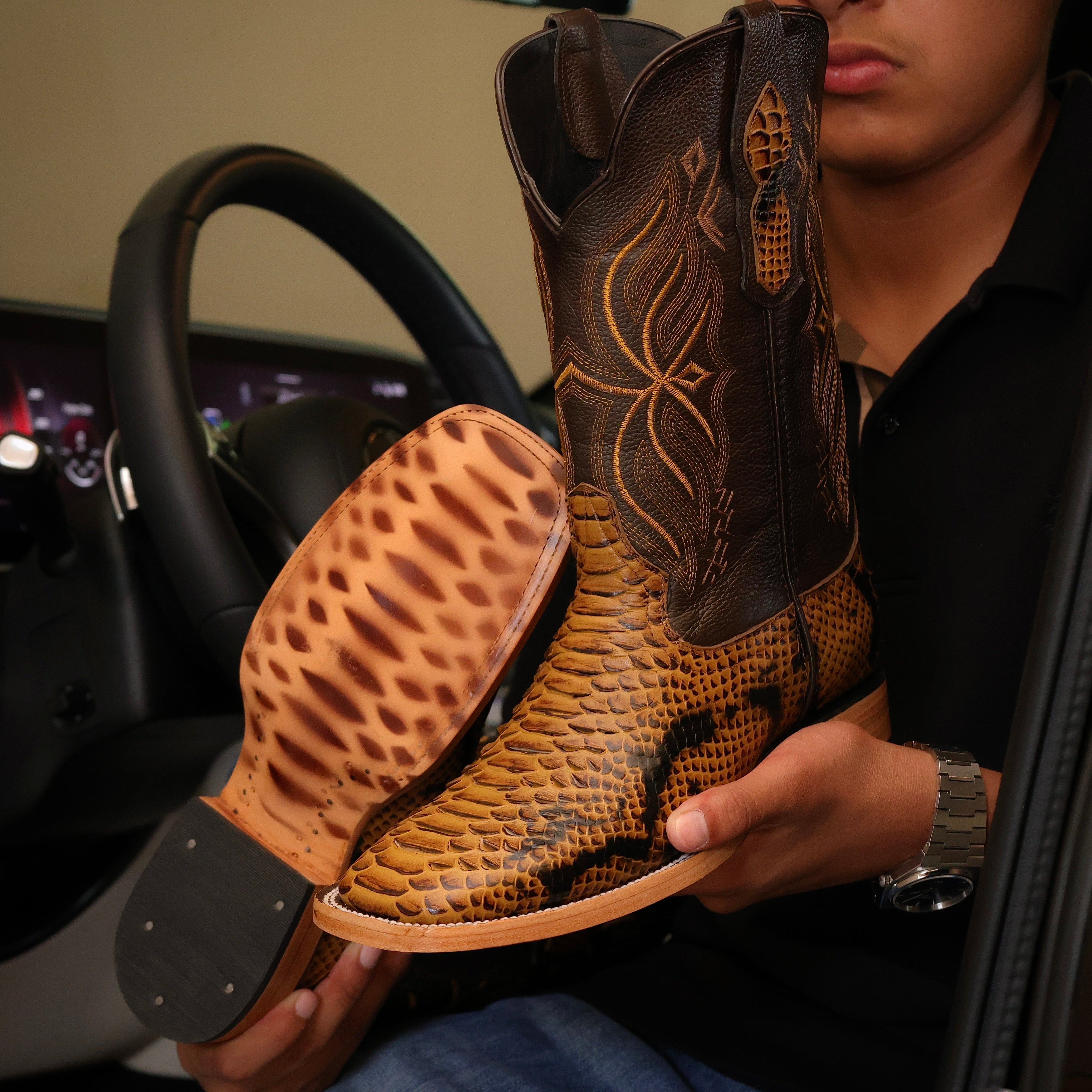 Men’s Ombré Caimán Horn-Back Leather Boots With Brown Shaft