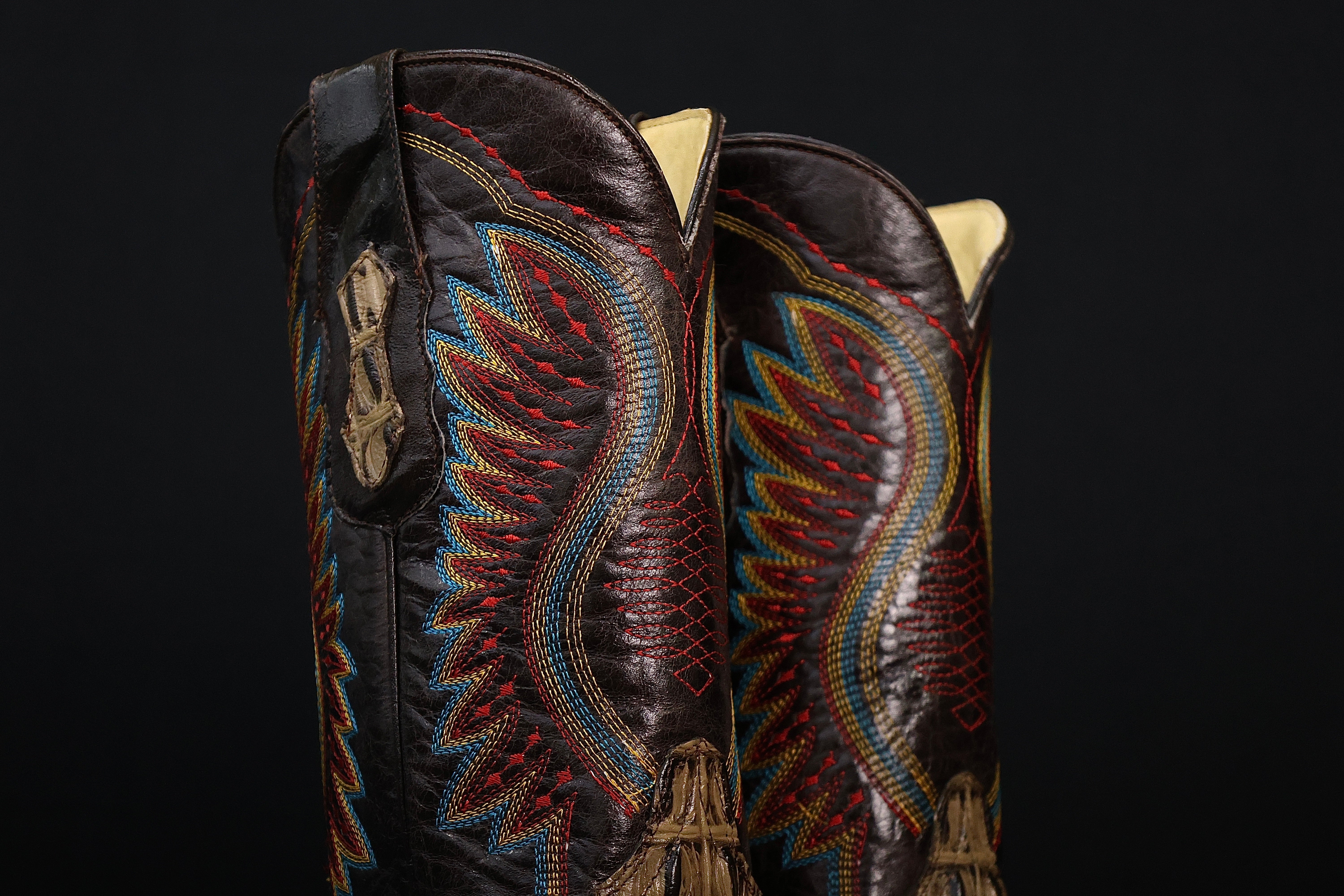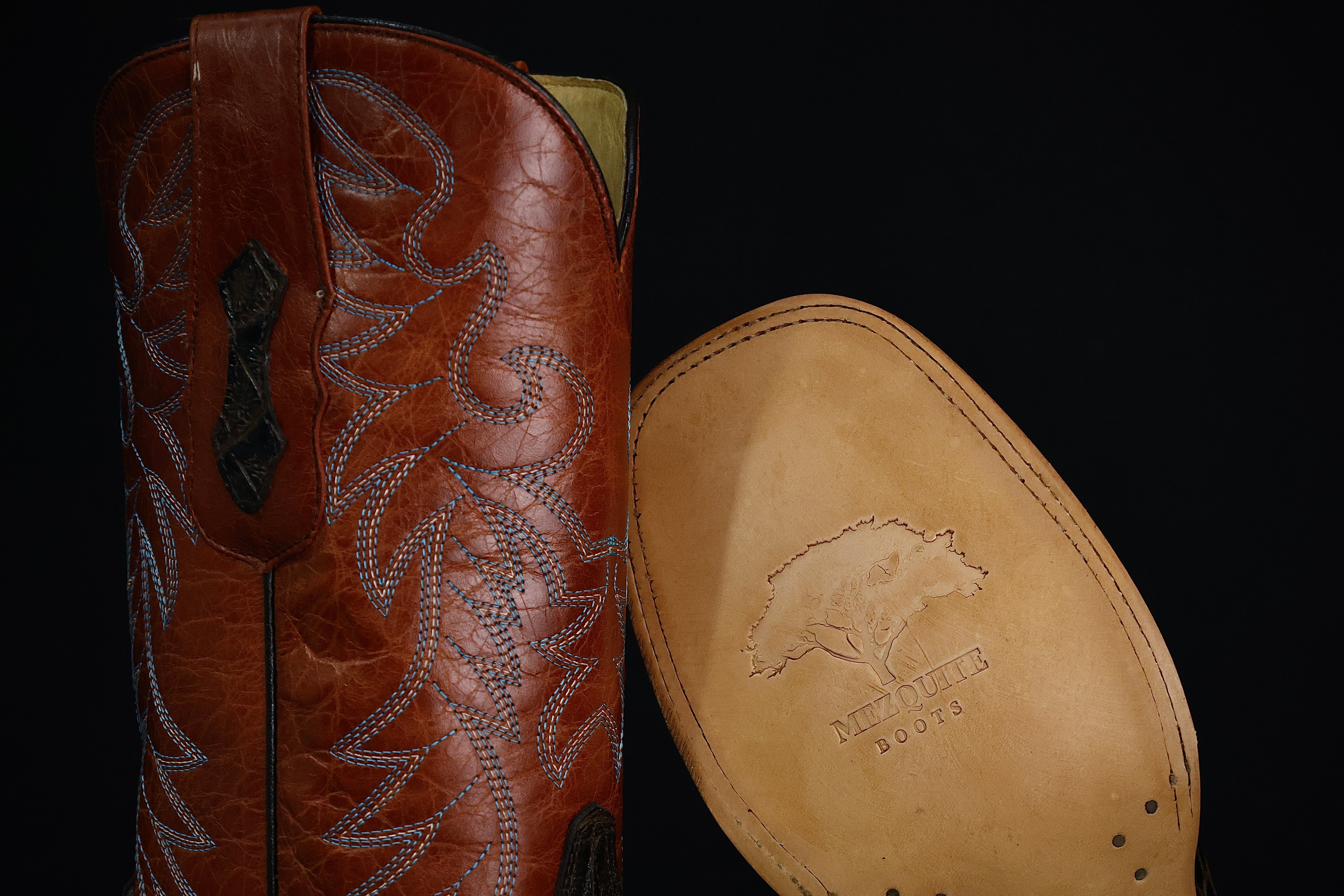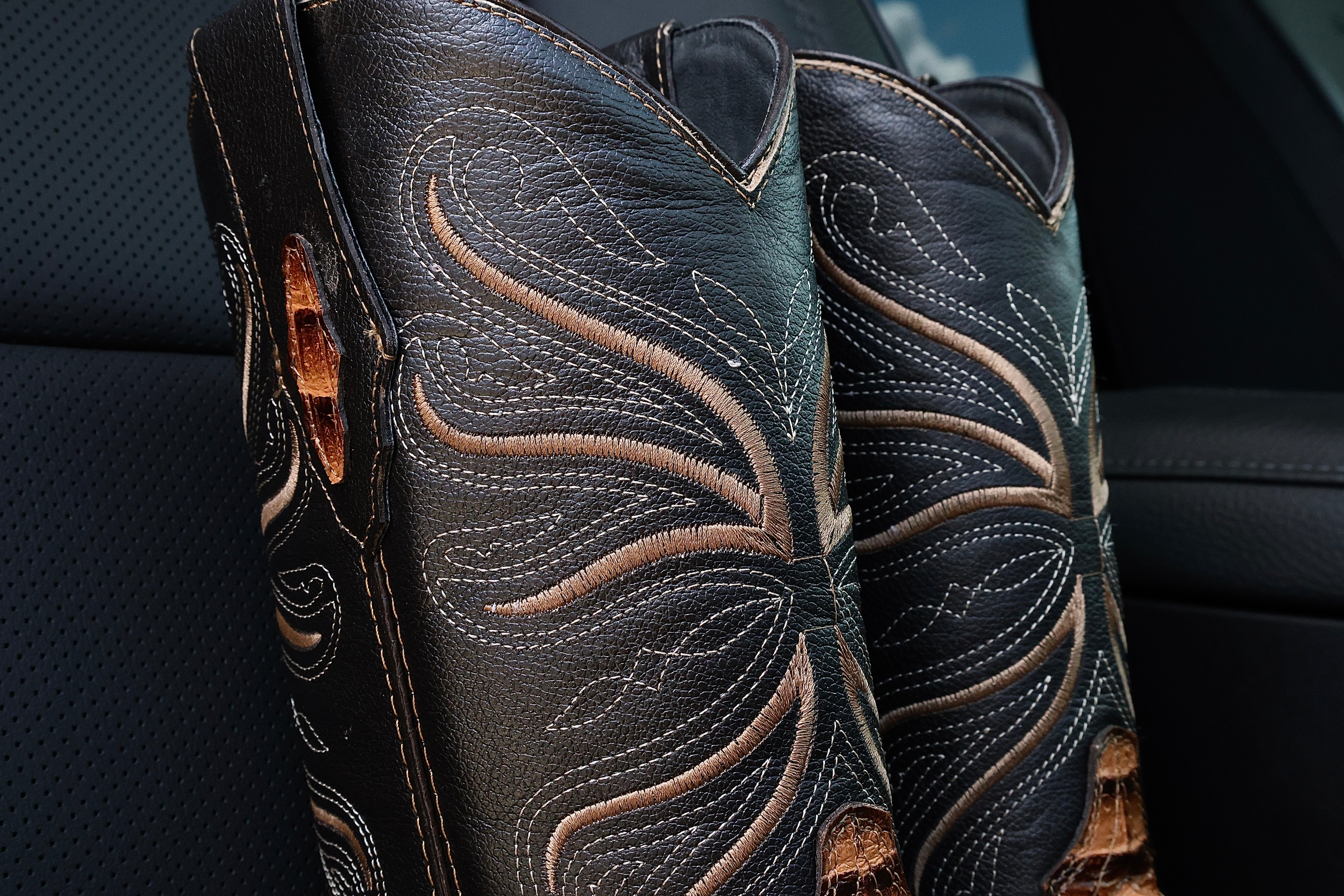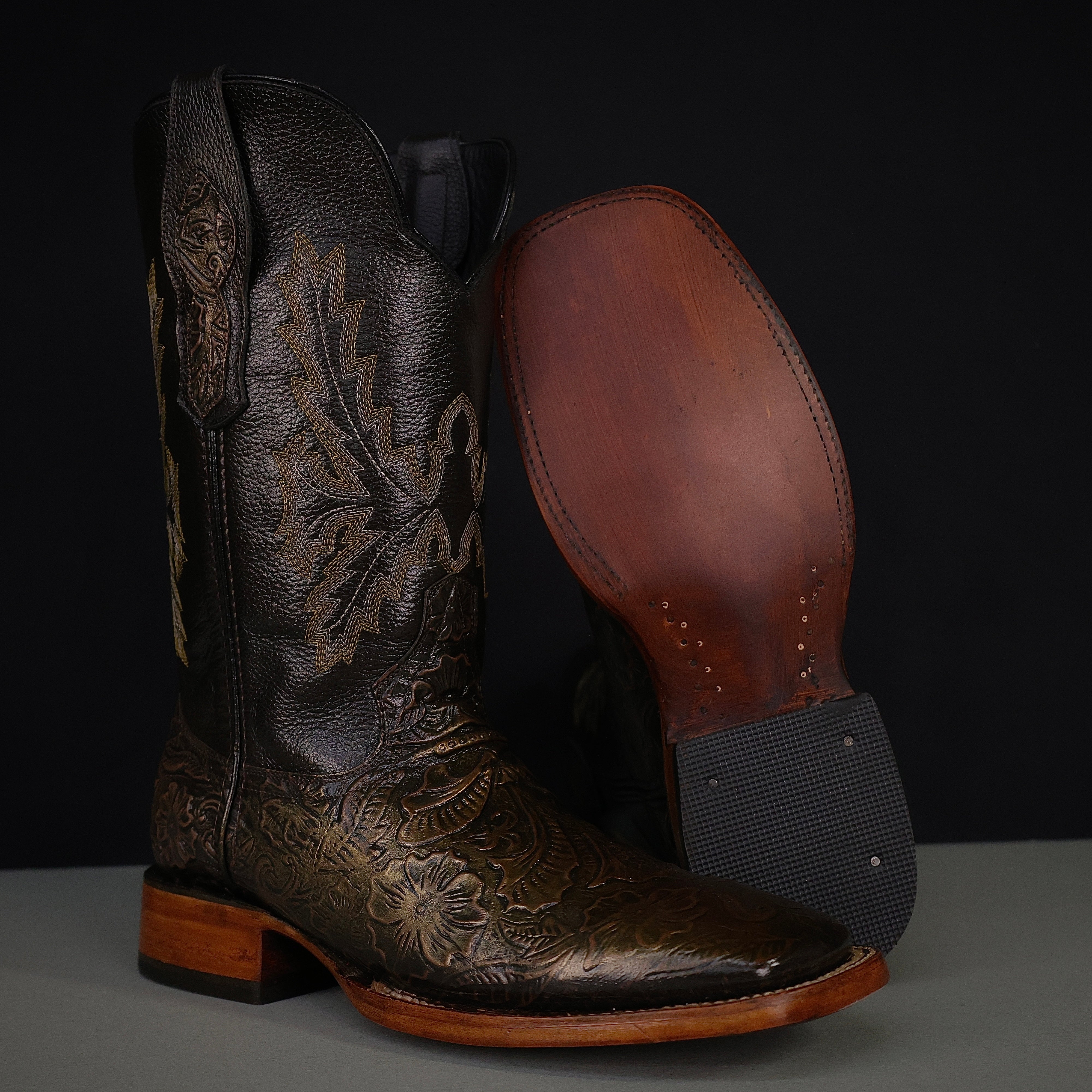Bronze Hand-Tooled Leather Boots — Square Toe