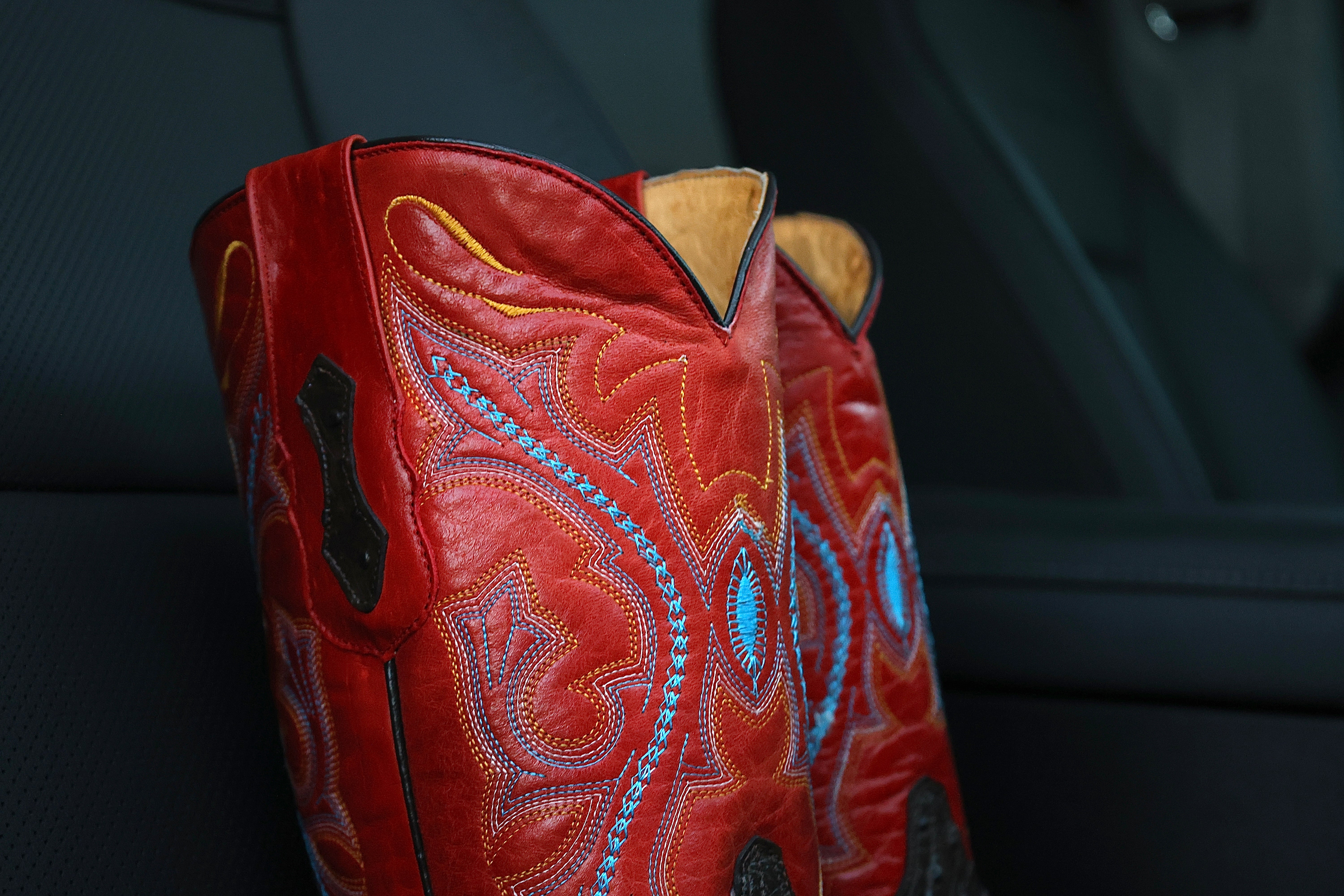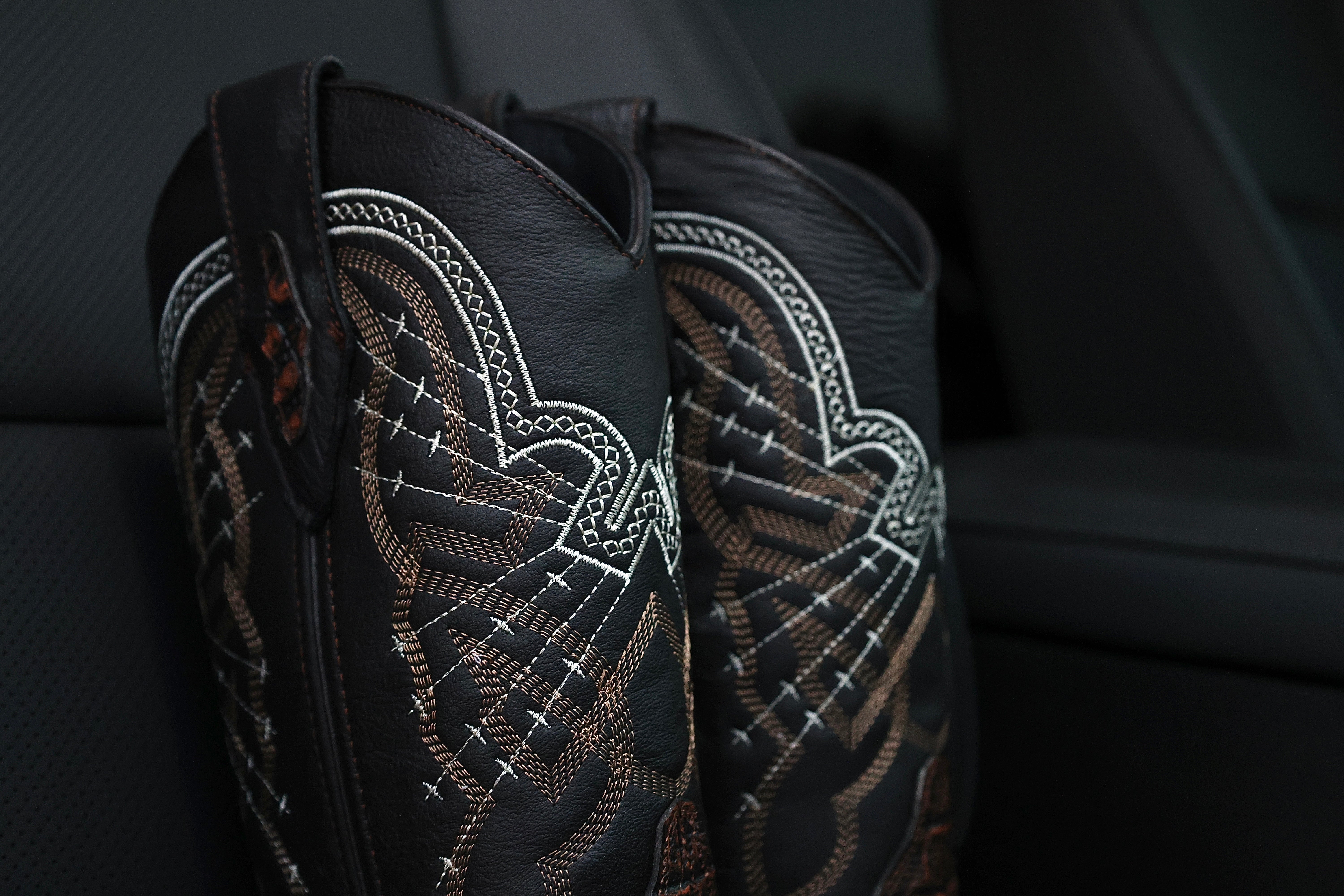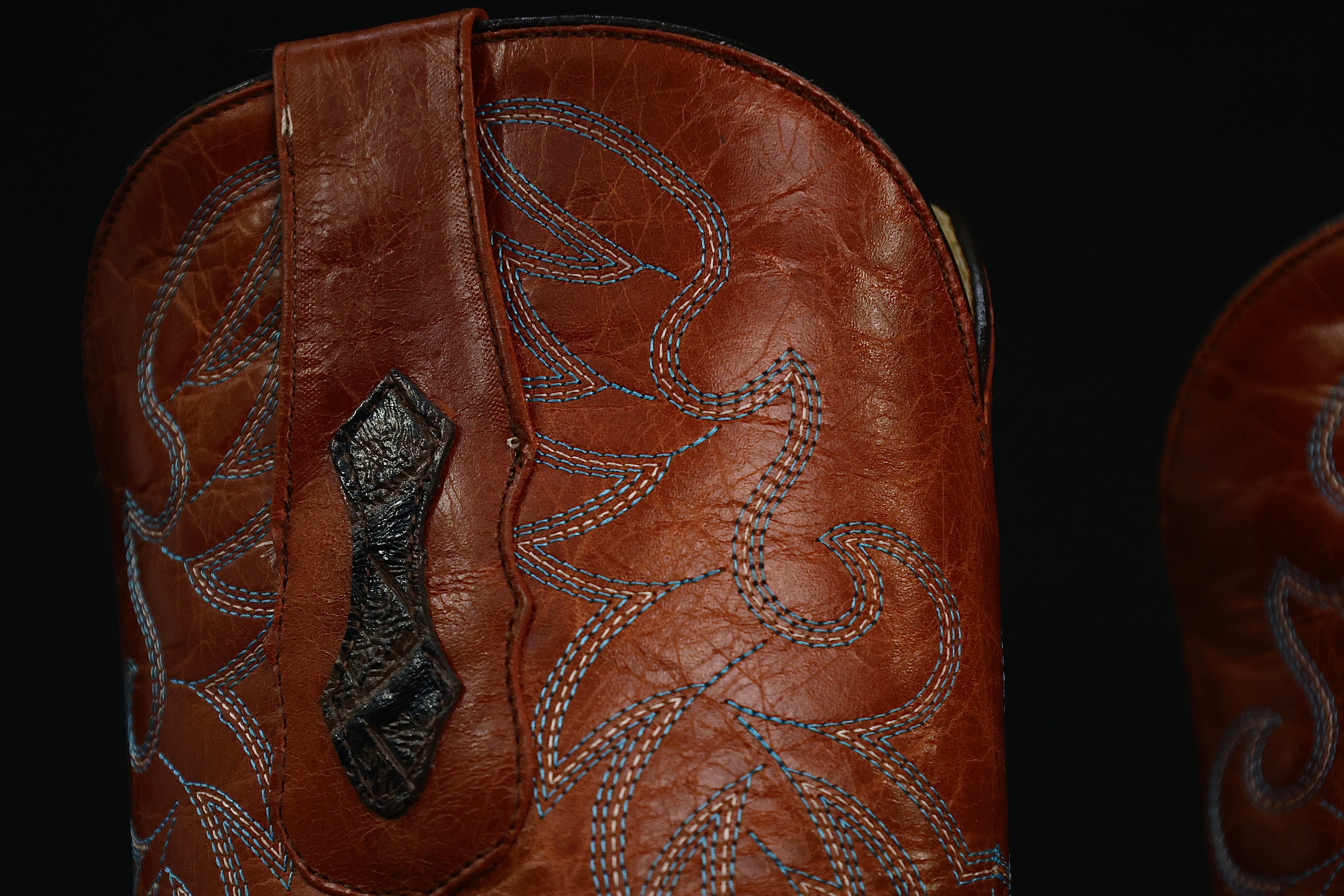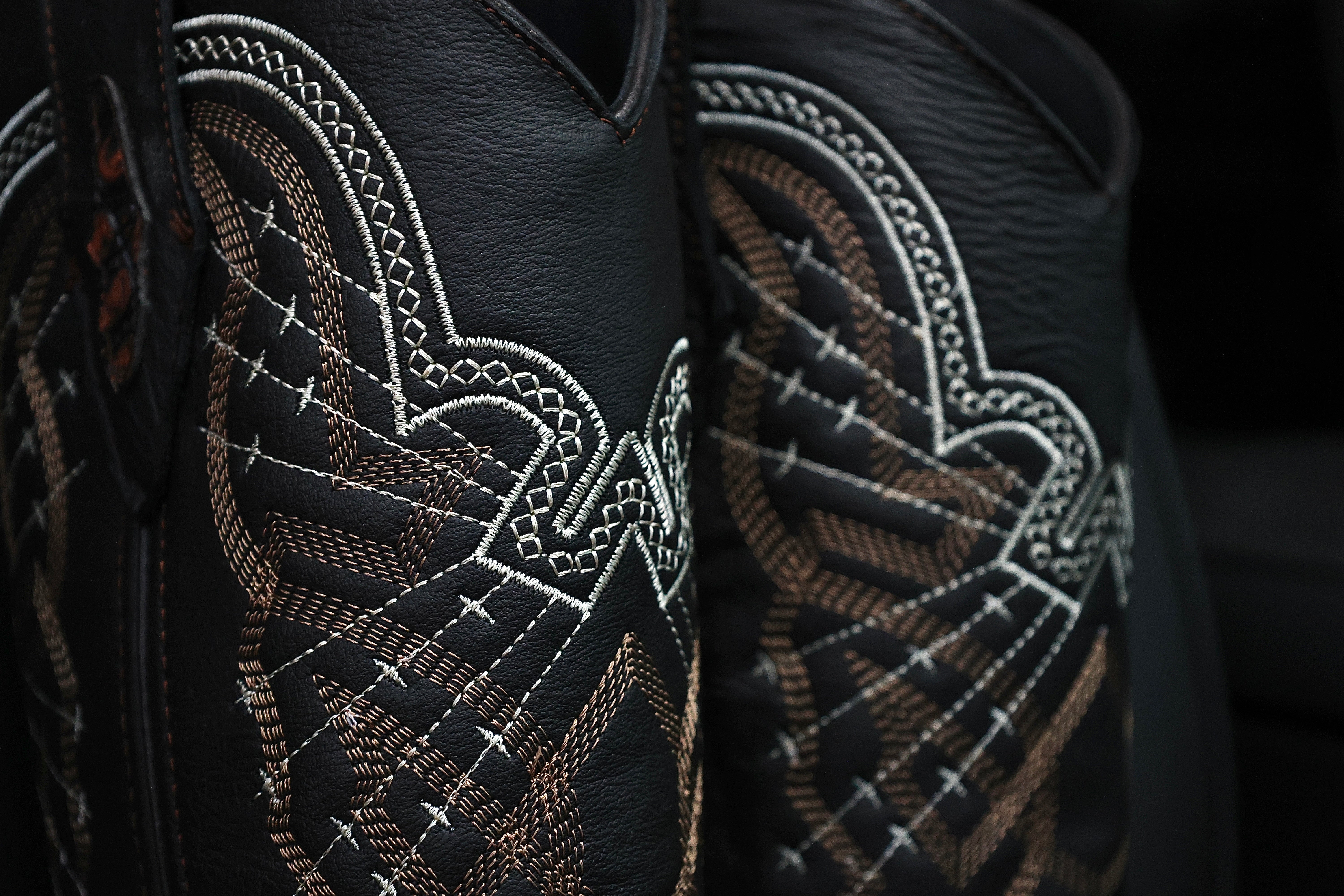 Bronze Hand-Tooled Leather Boots — Square Toe