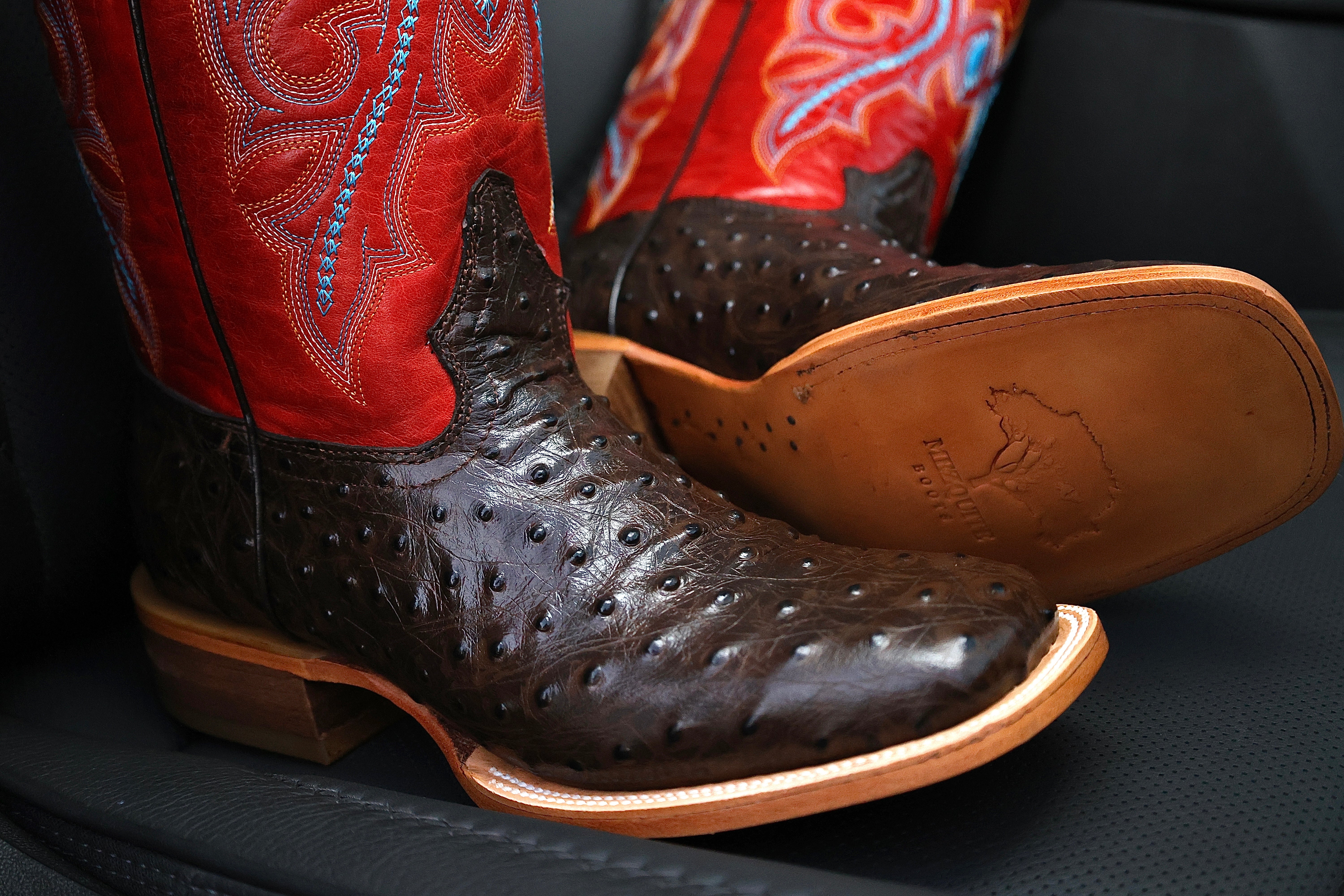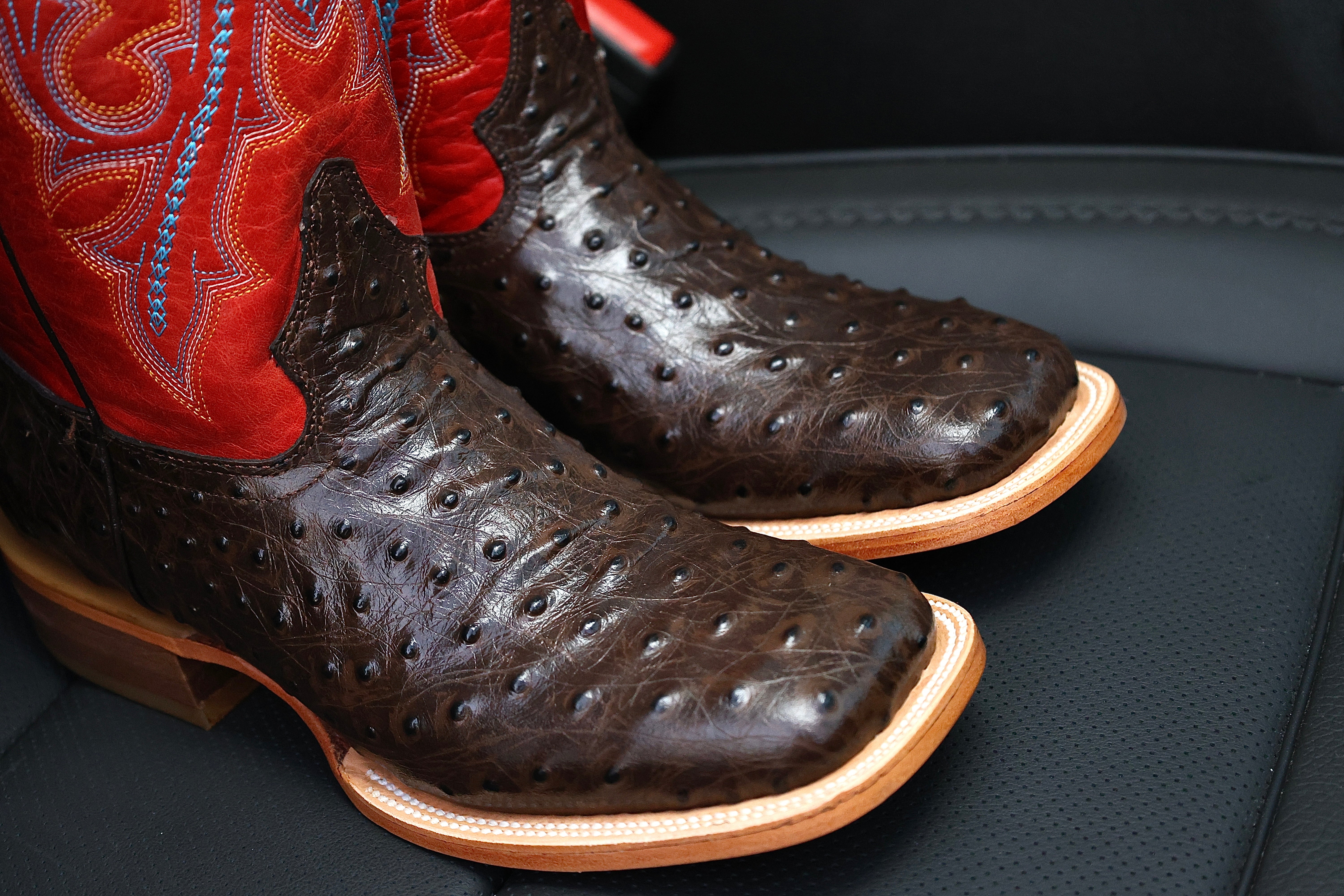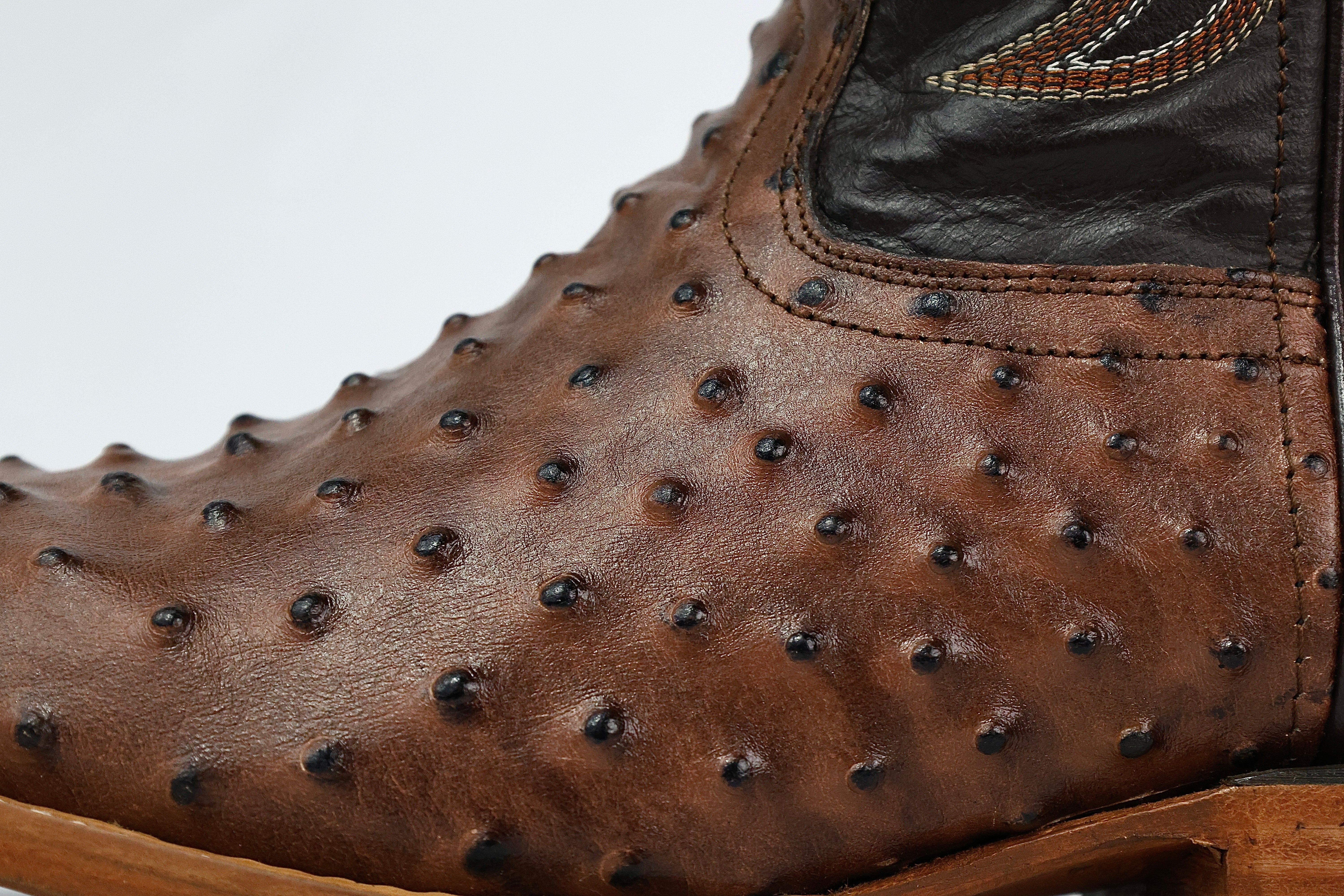 Brown Ostrich Leather Boots — Square Toe