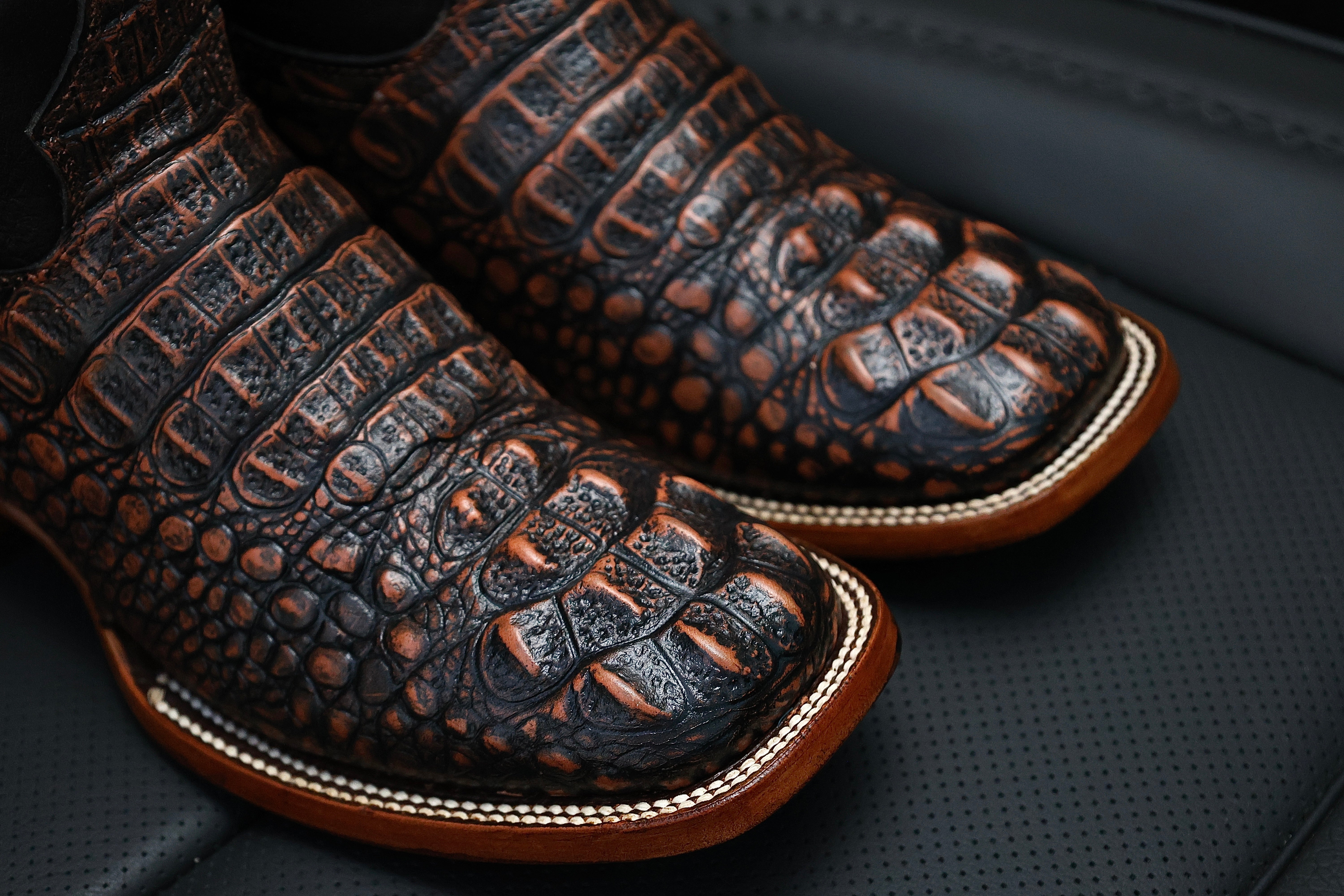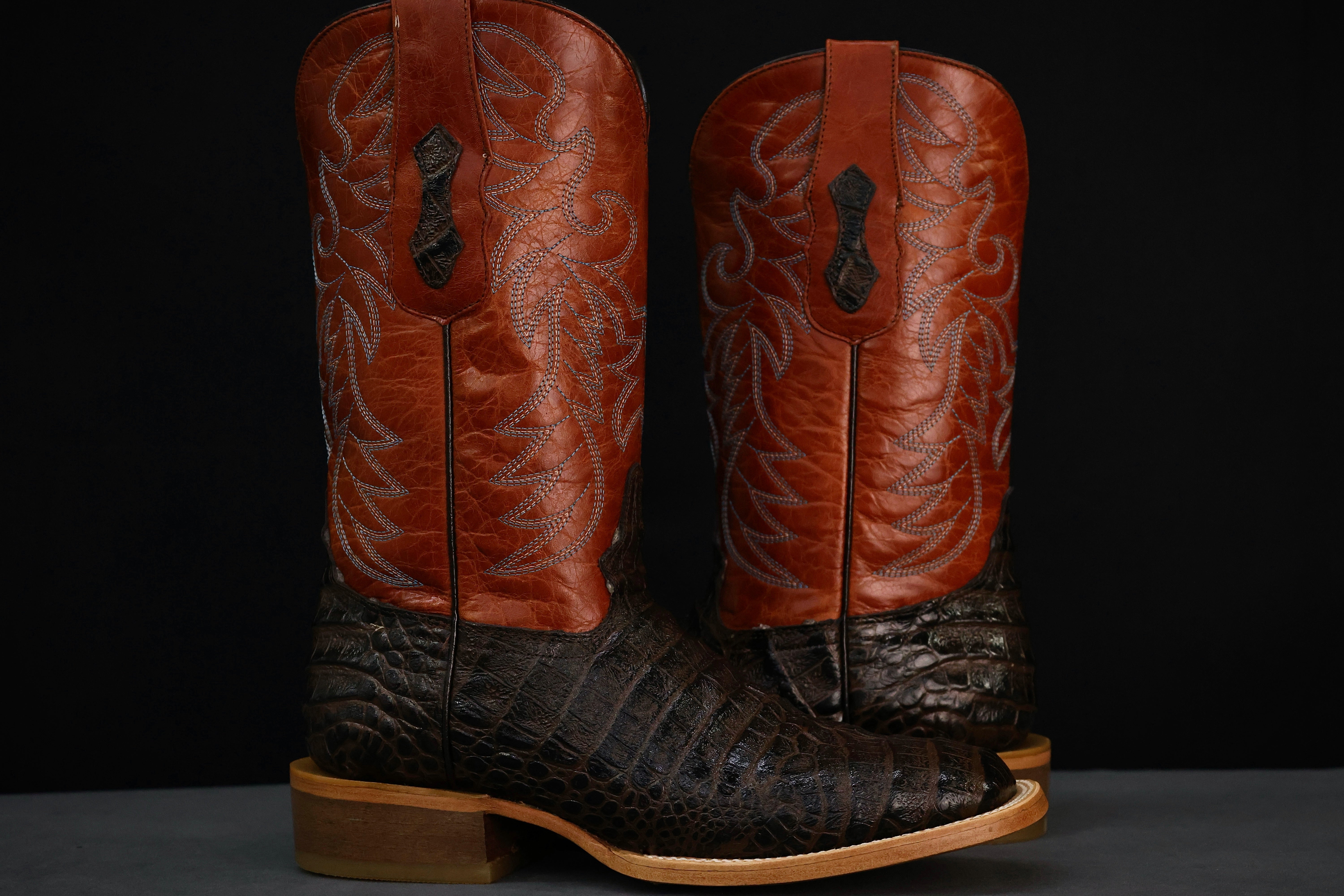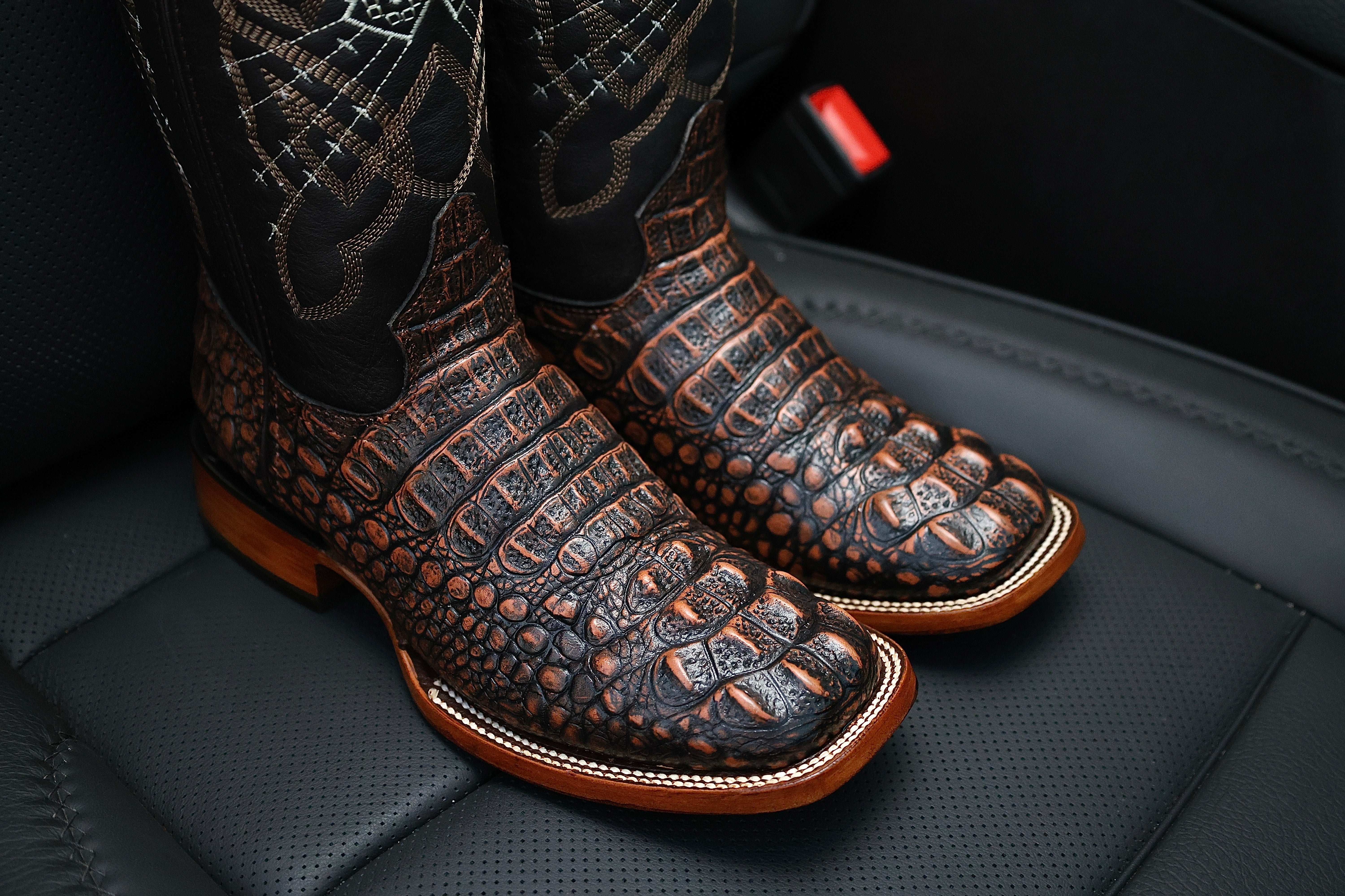 Men’s Copper Caiman Neck Leather Boots-Square Toe