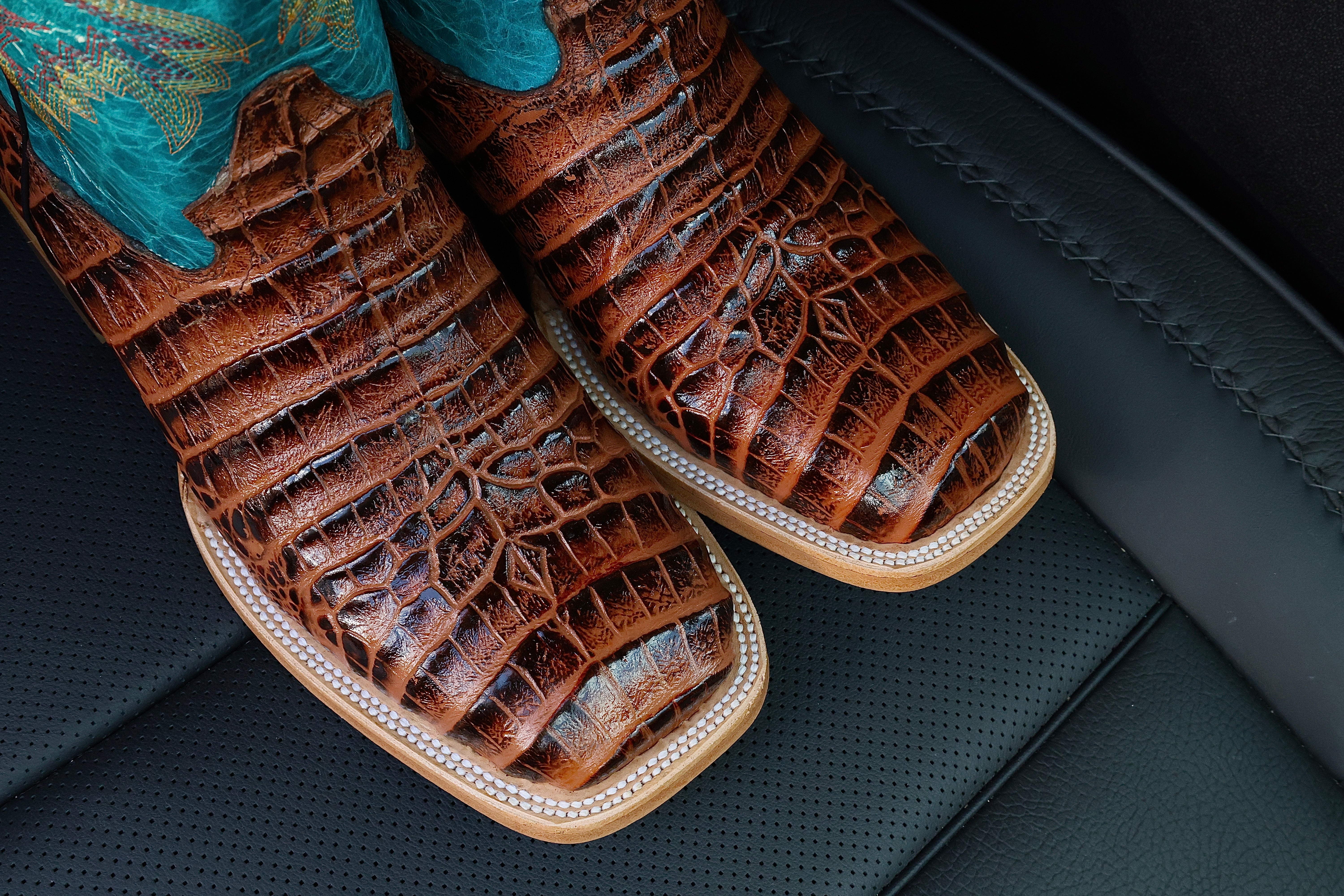 Cognac American Gator Belly Leather Boots — Square Toe
