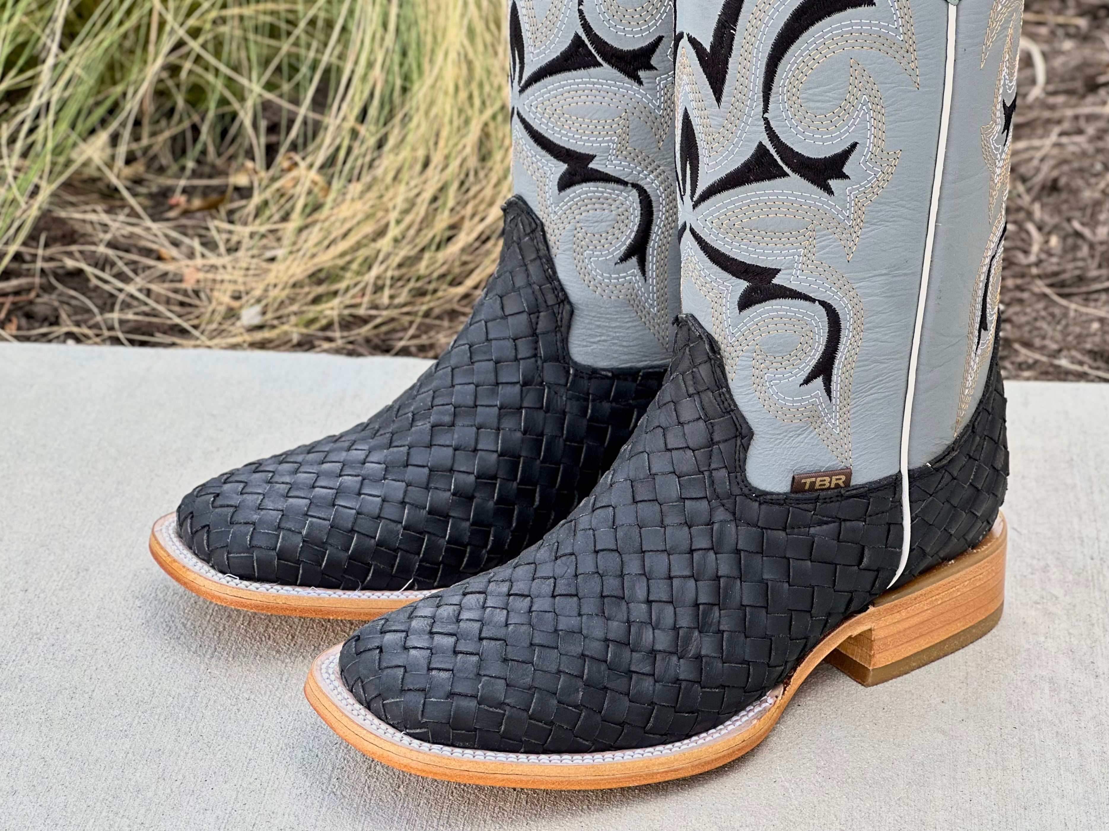 Mens Black Basket Woven Boots With Grey Shaft