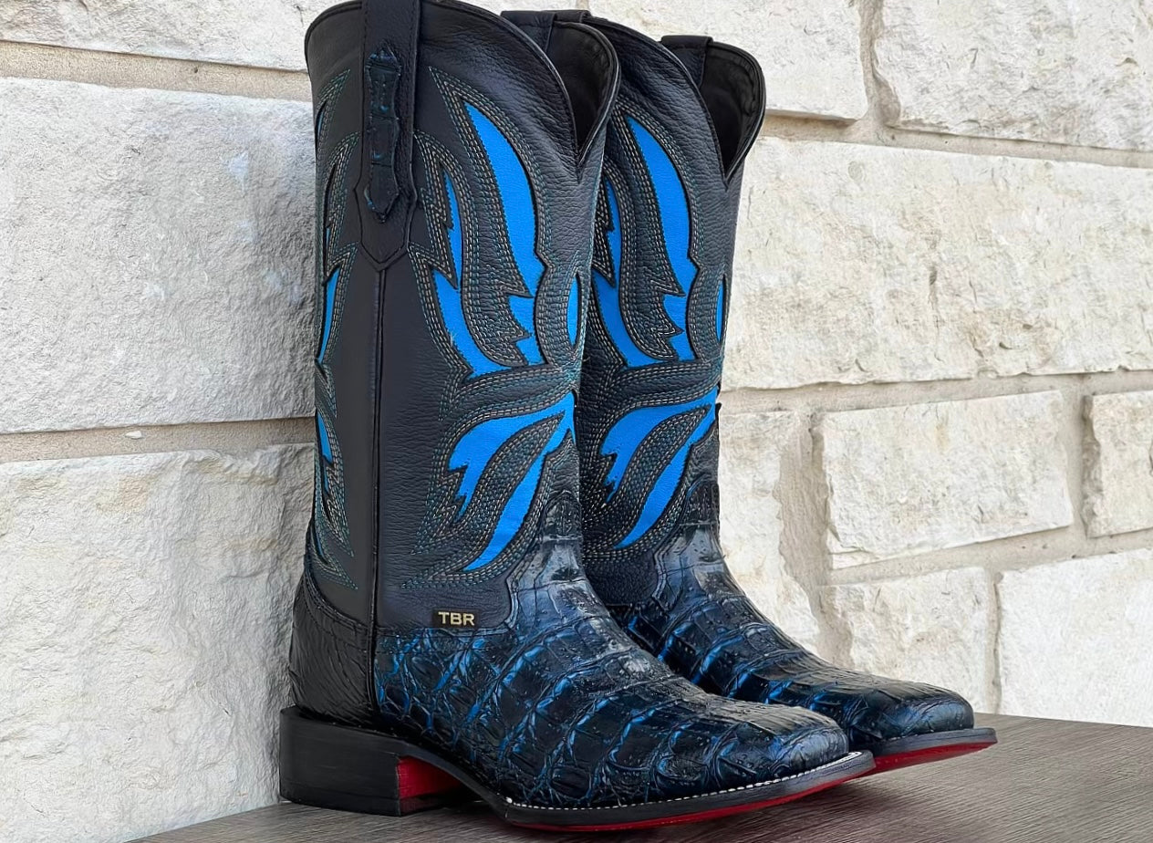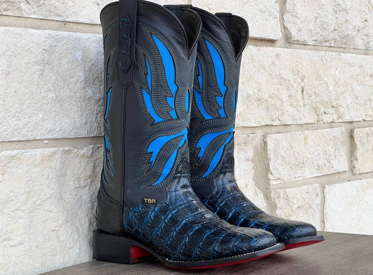 Men’s Midnight Blue Caiman Horn-Back Leather Boots
