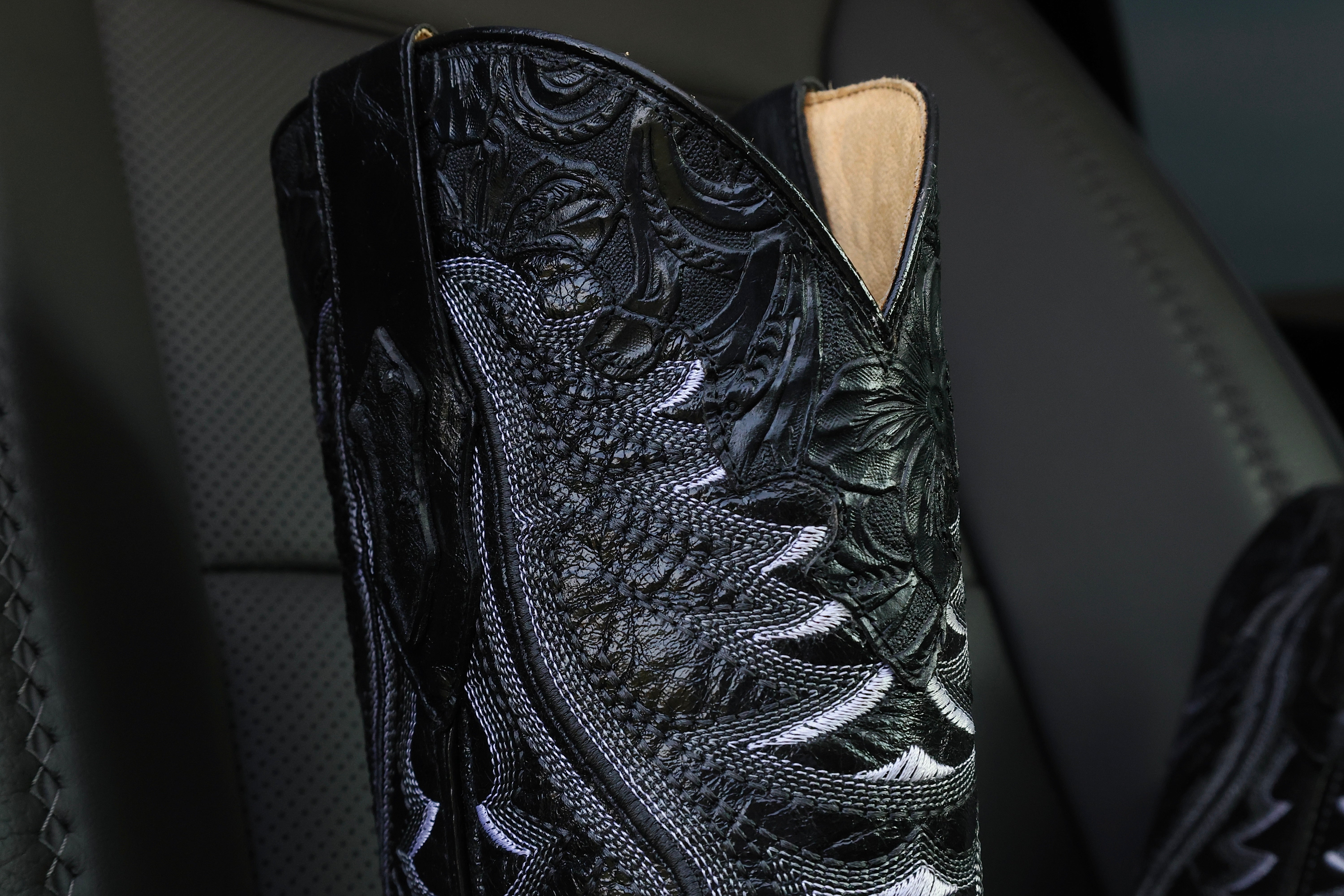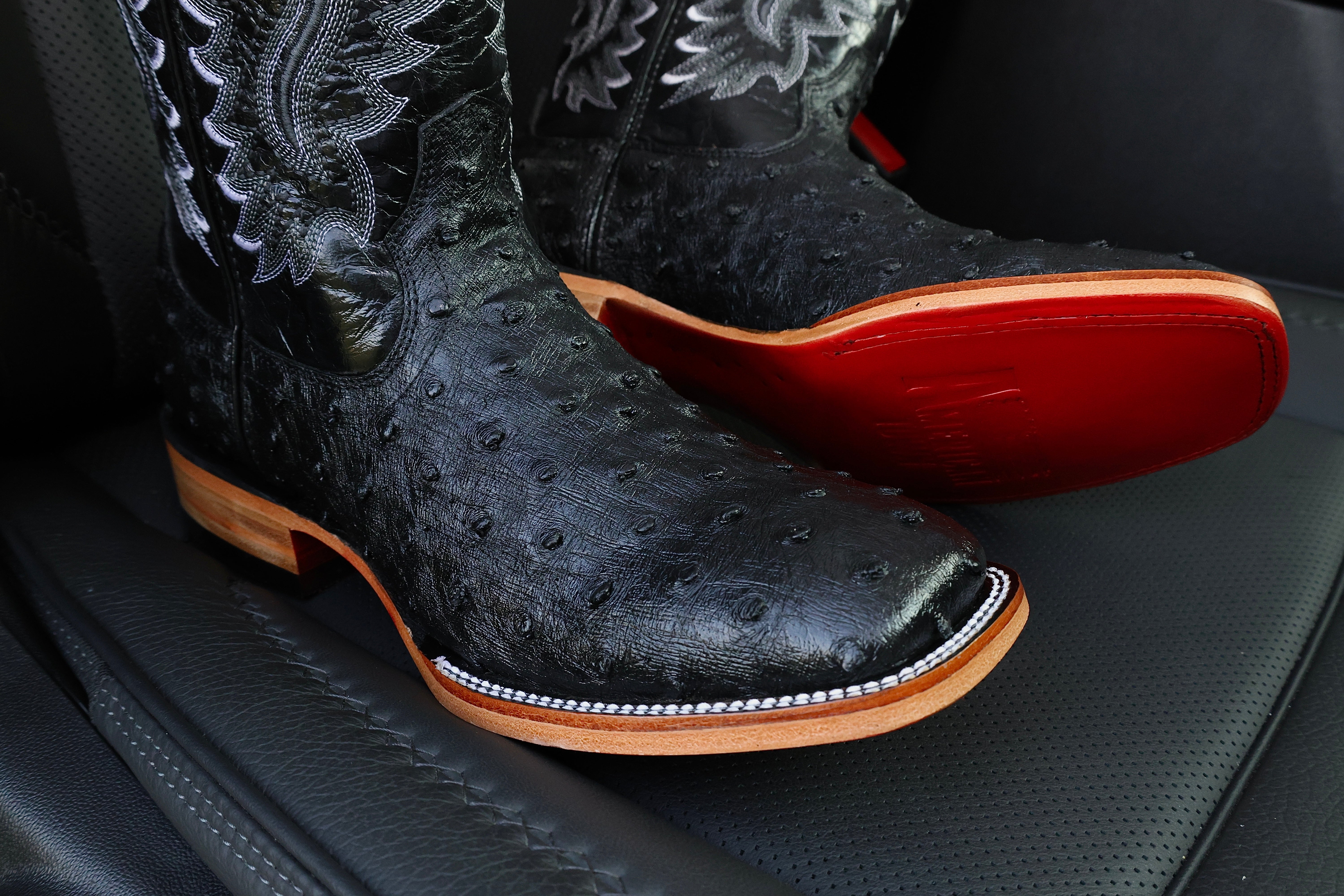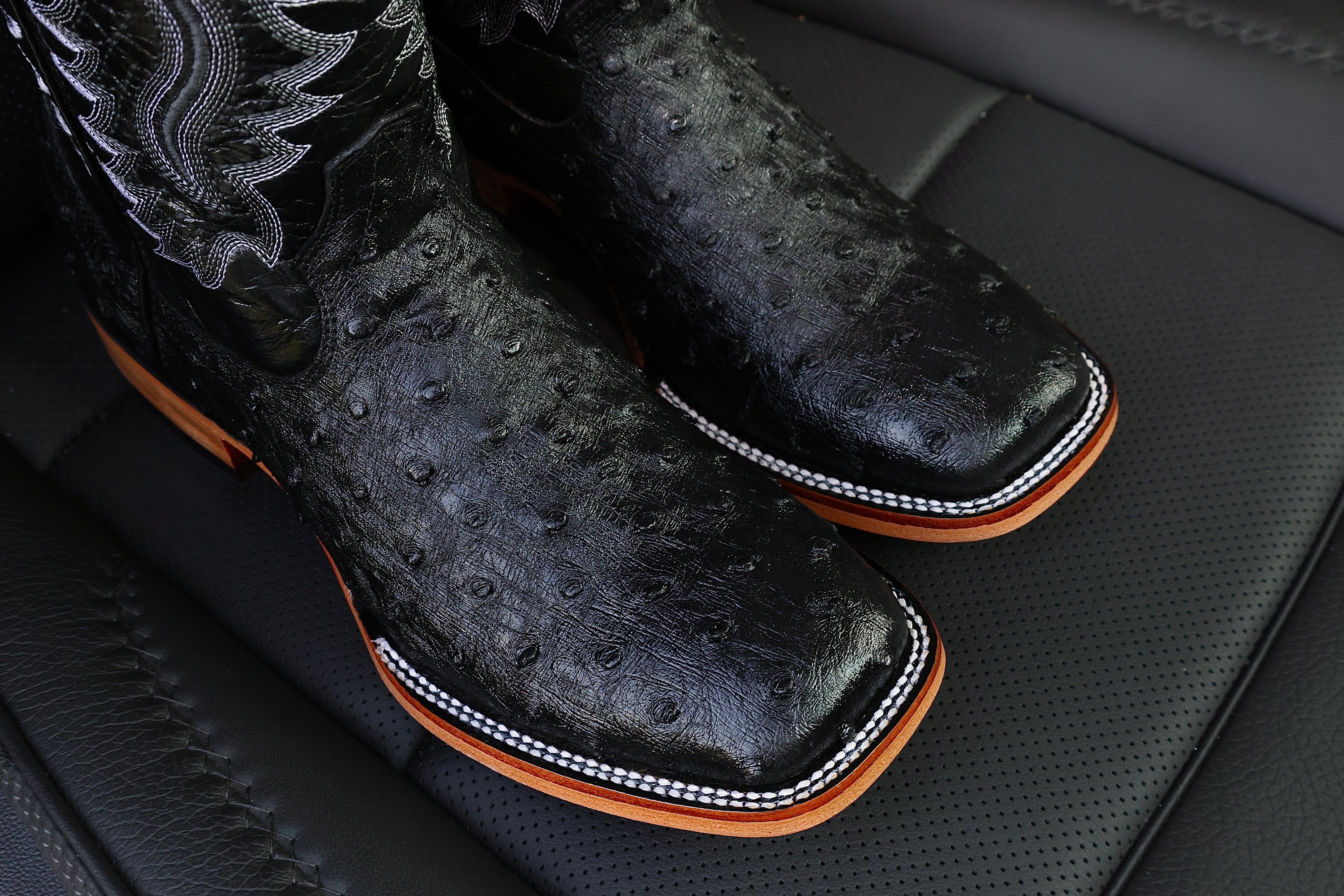 Men’s Black Ostrich Leather Boots — Square Toe