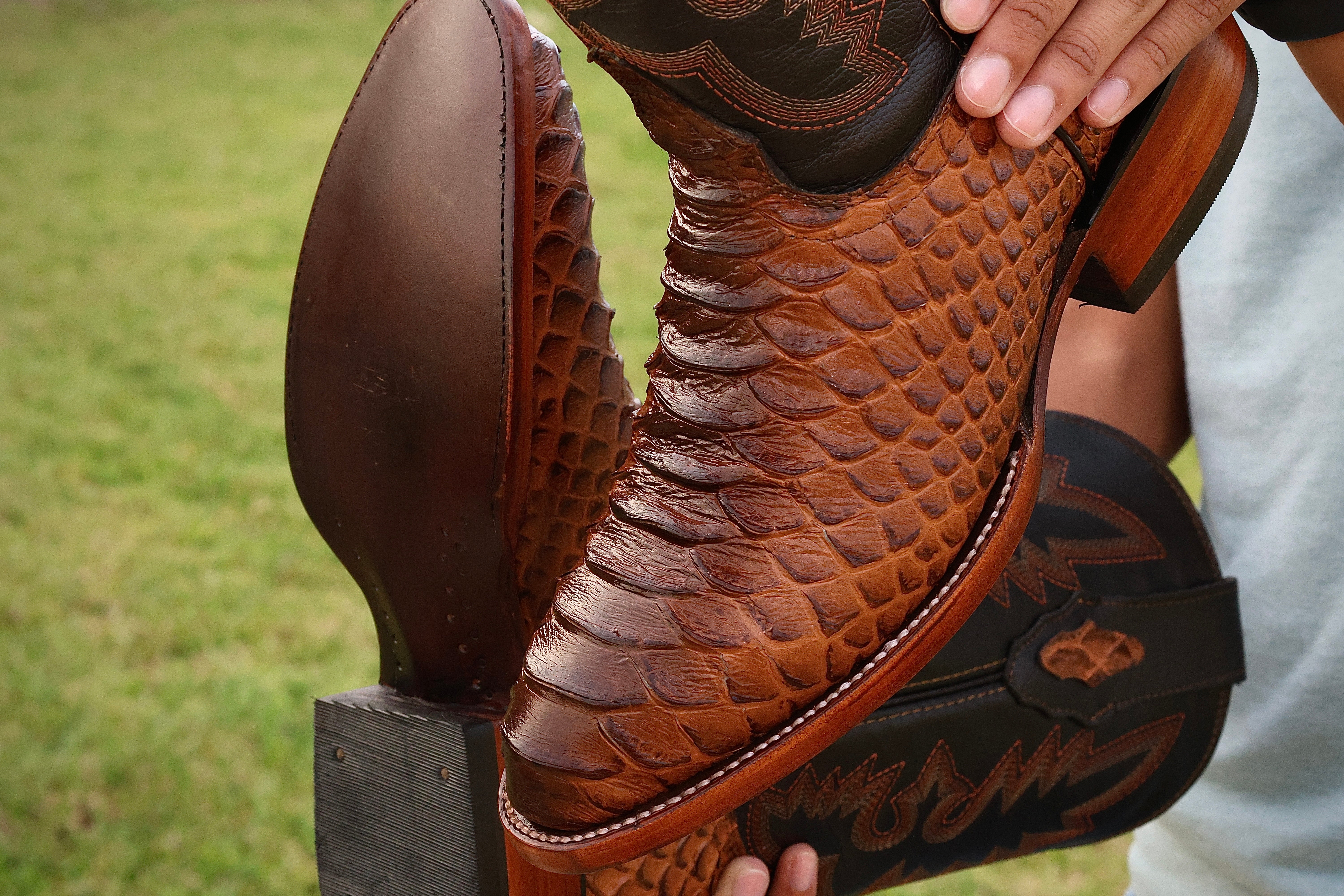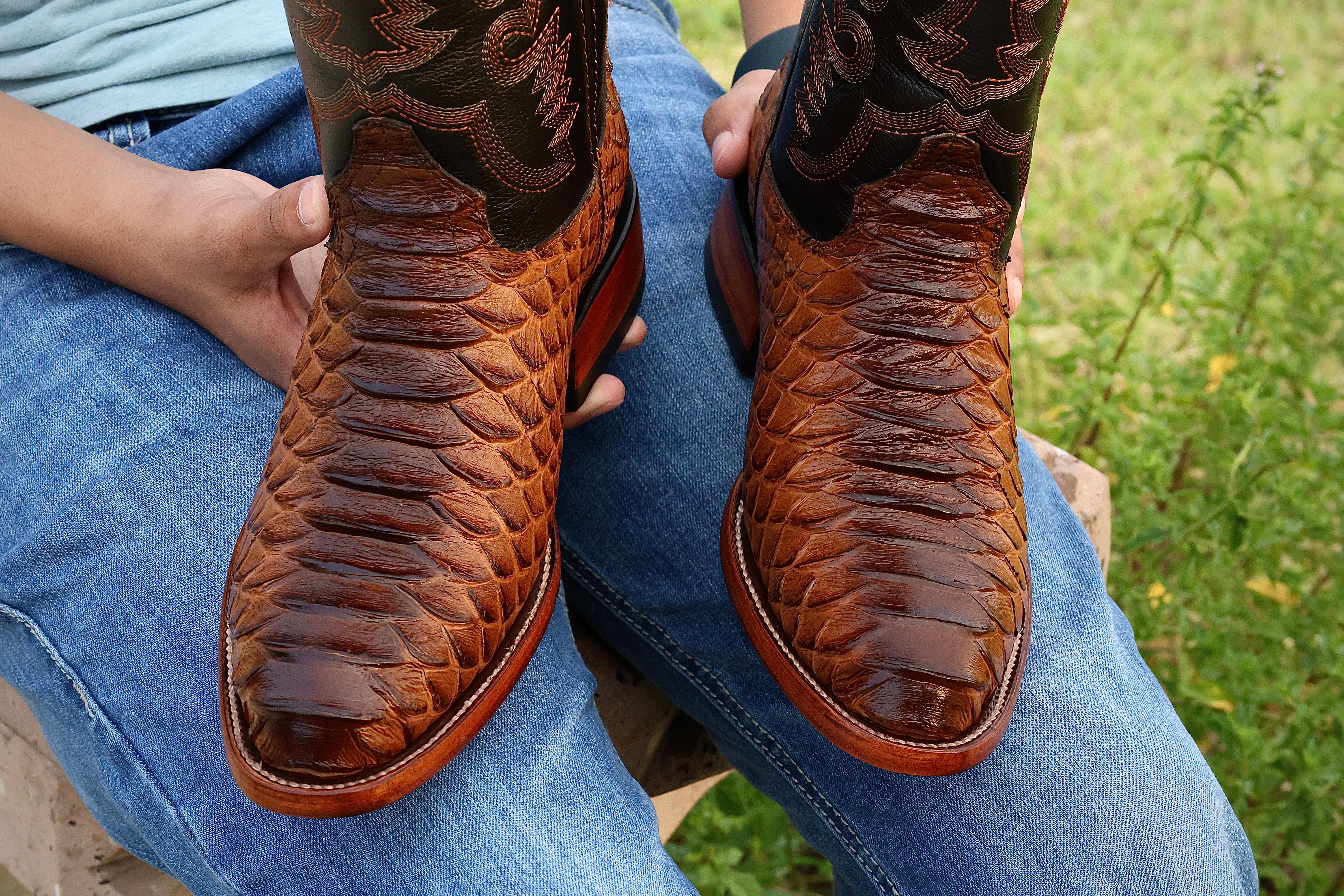 Men’s Honey Pirarucu Leather Boots — Square Toe