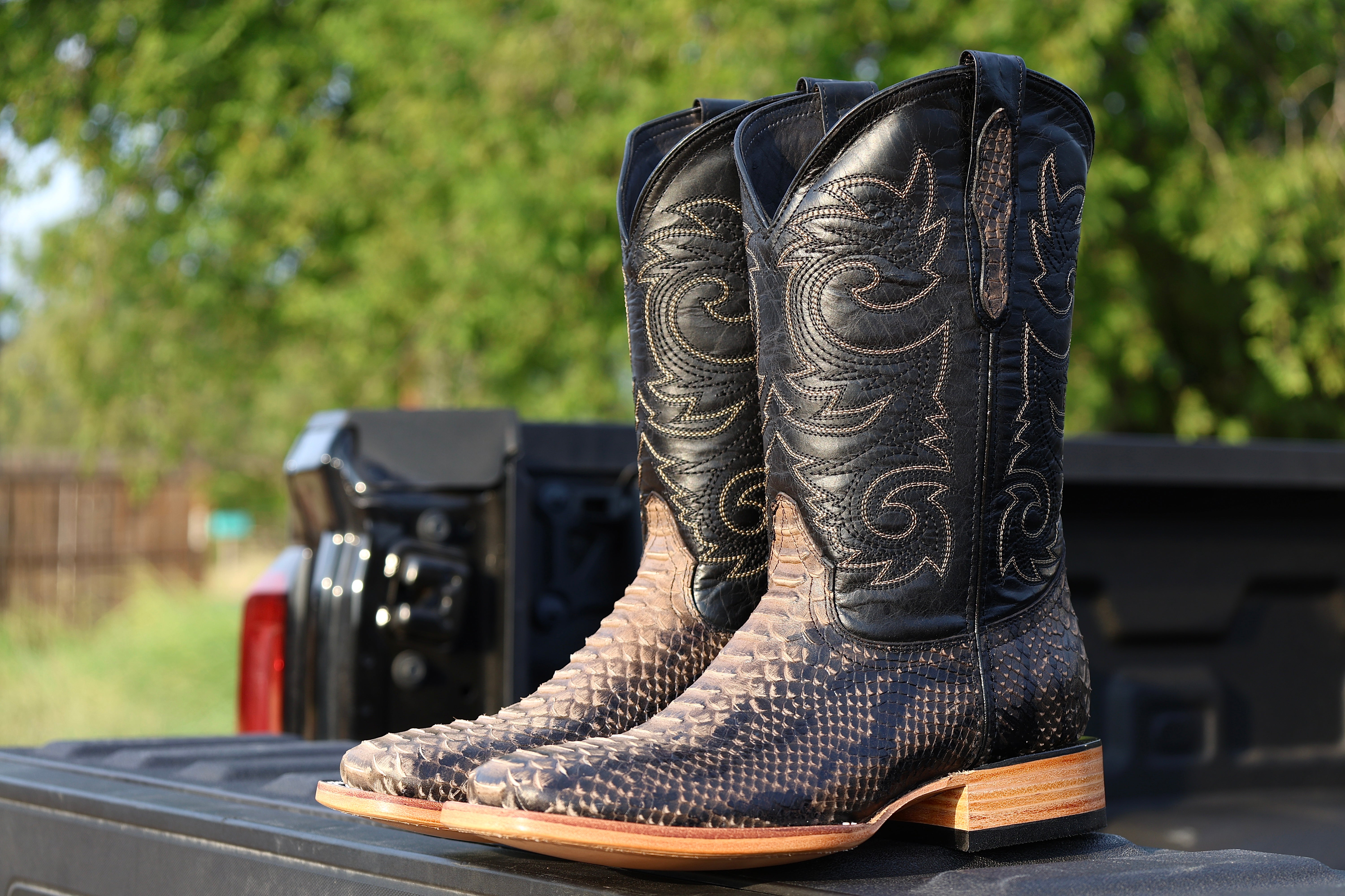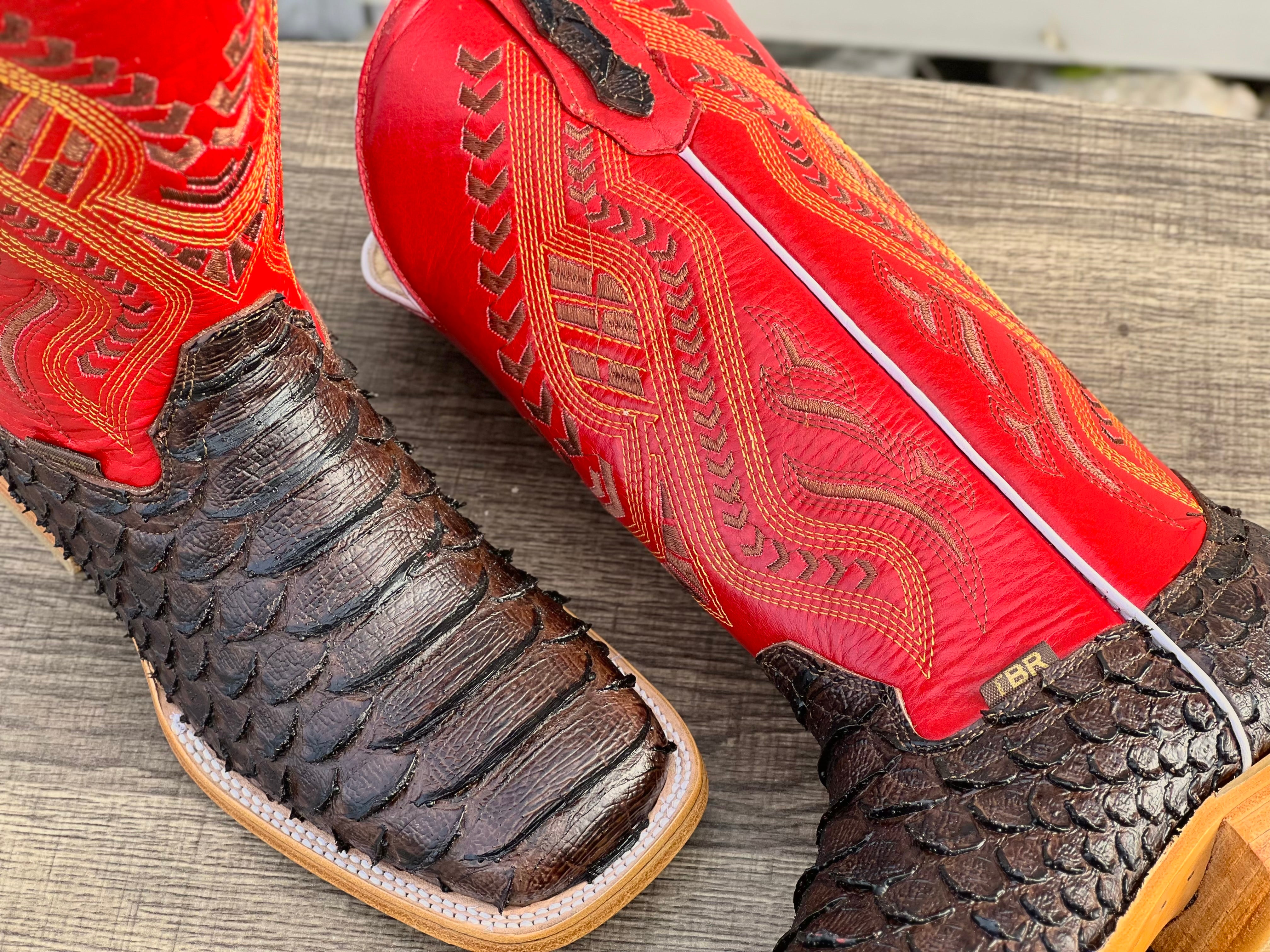 Desert Bone Pirarucu Leather Boots - Square Toe