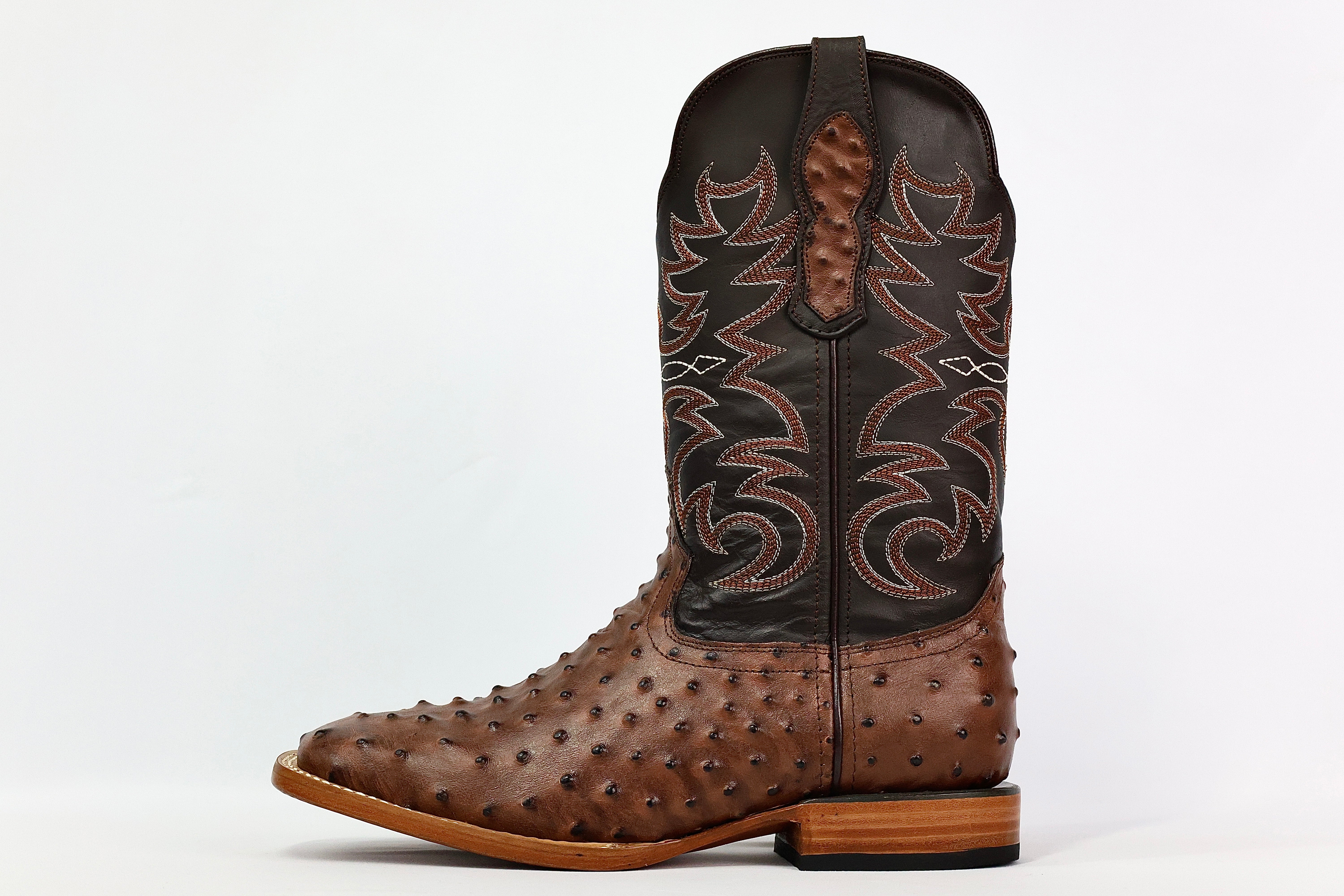 Men’s Chocolate Brown Ostrich Boots—Square Toe