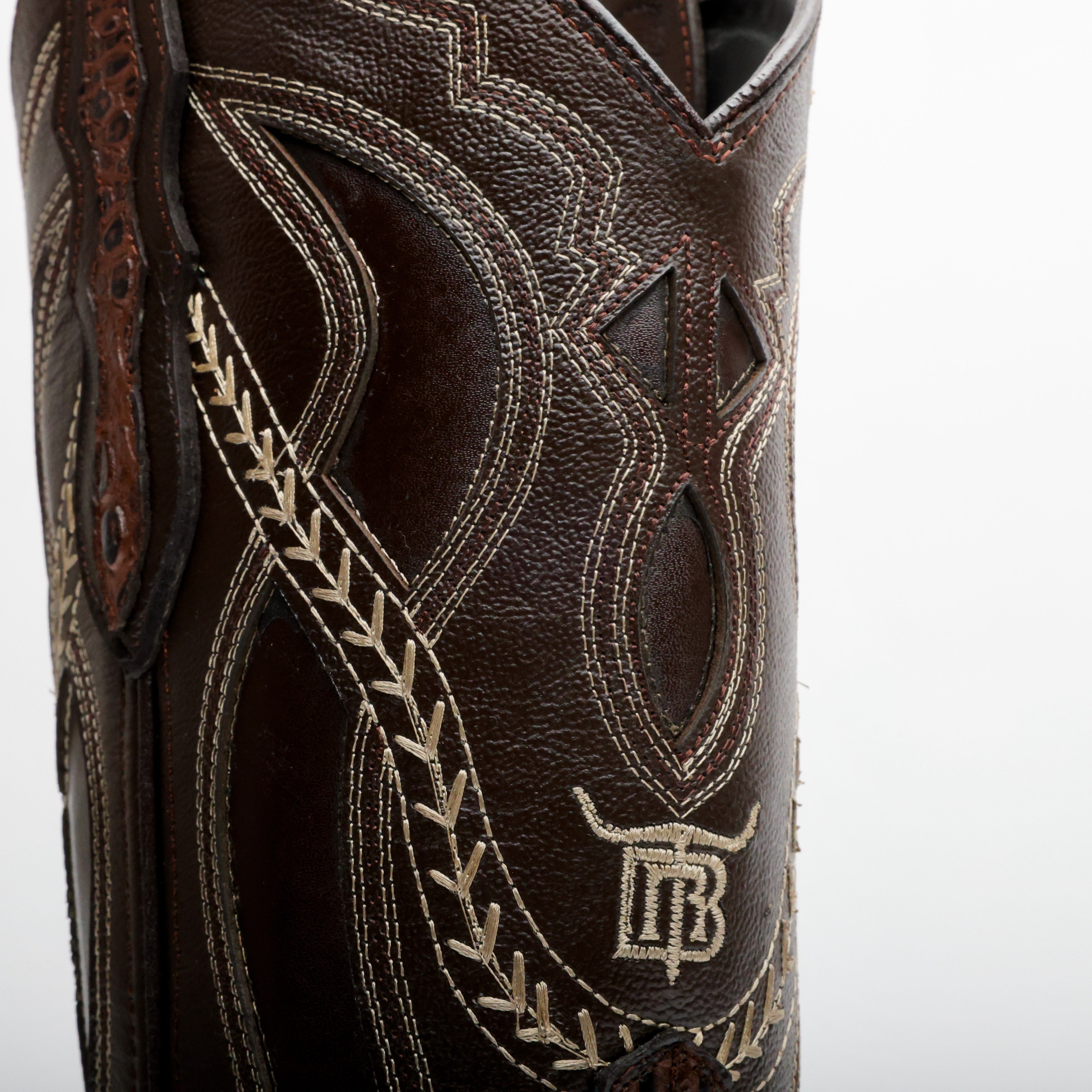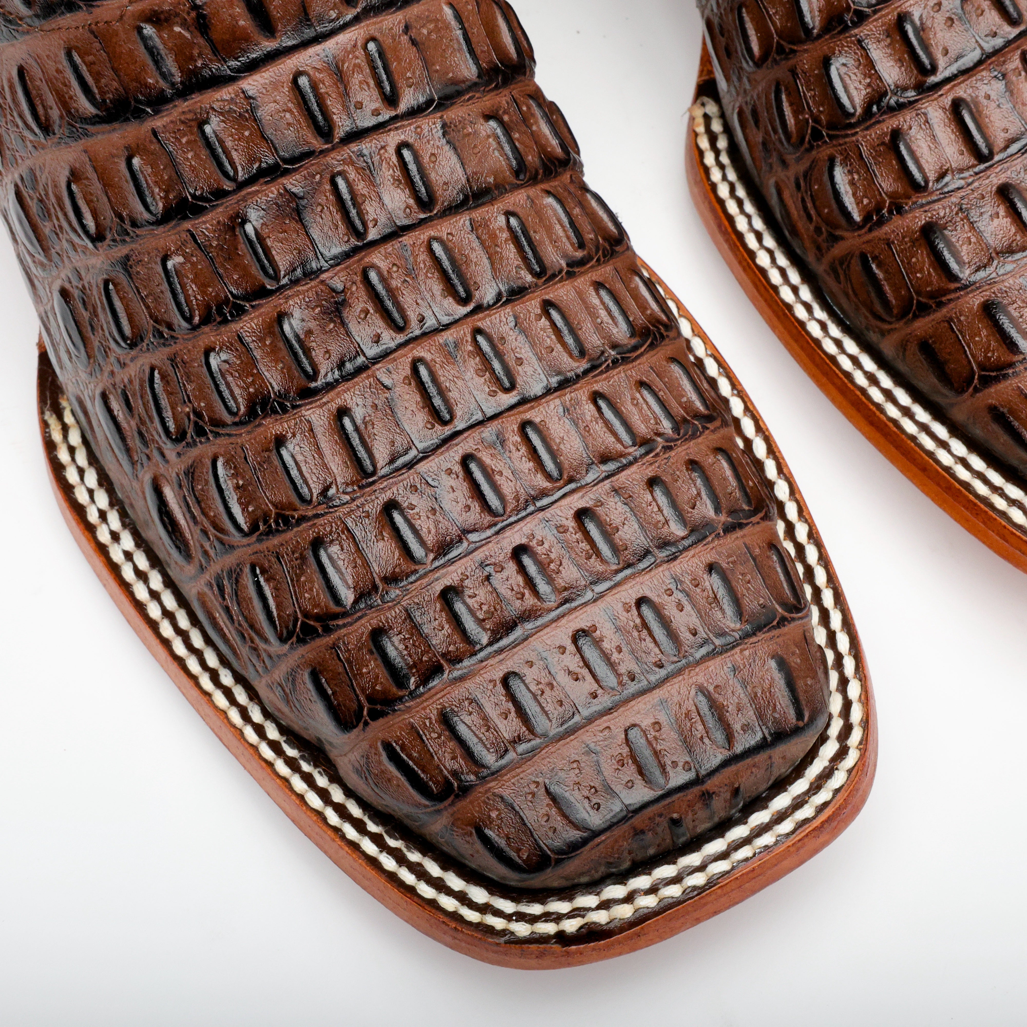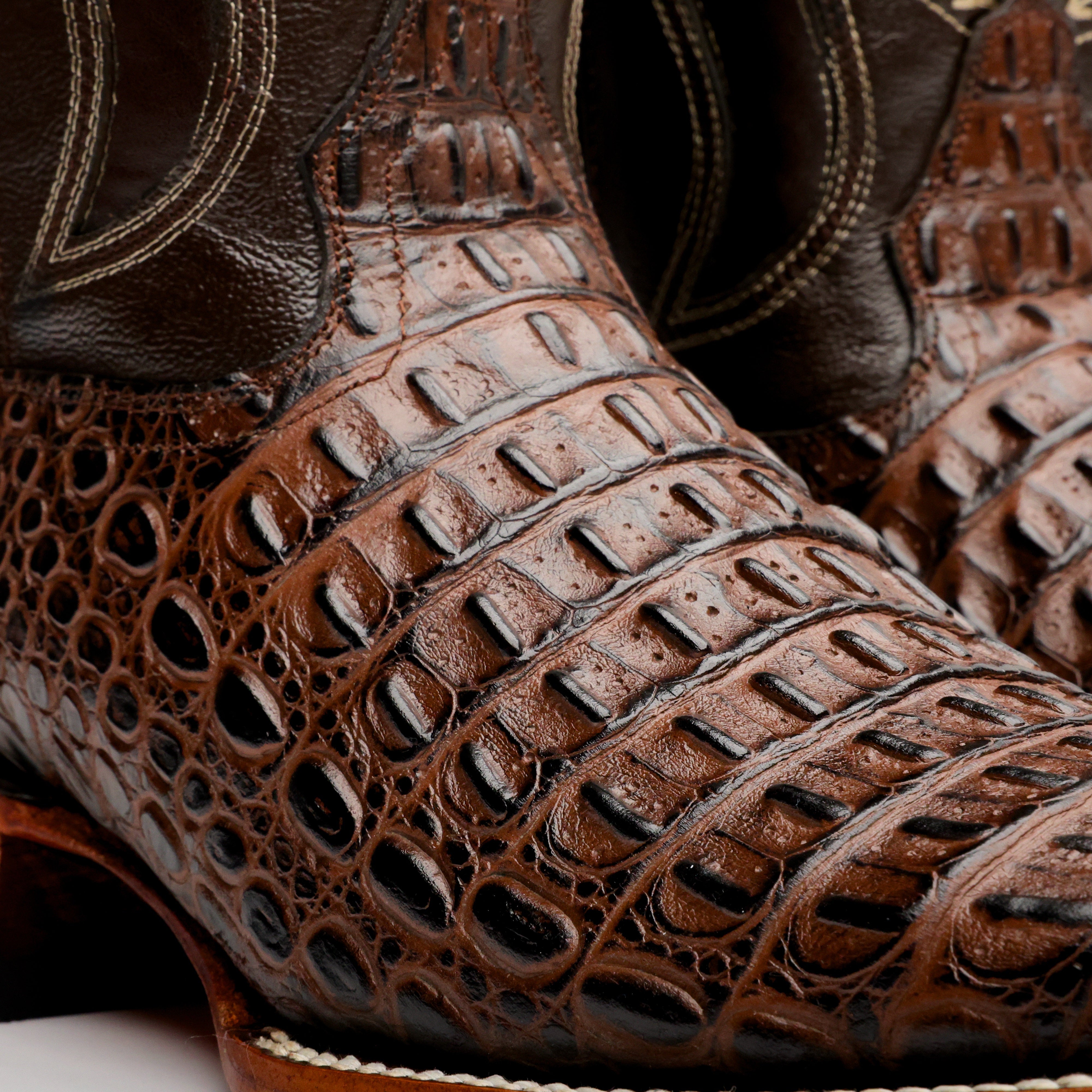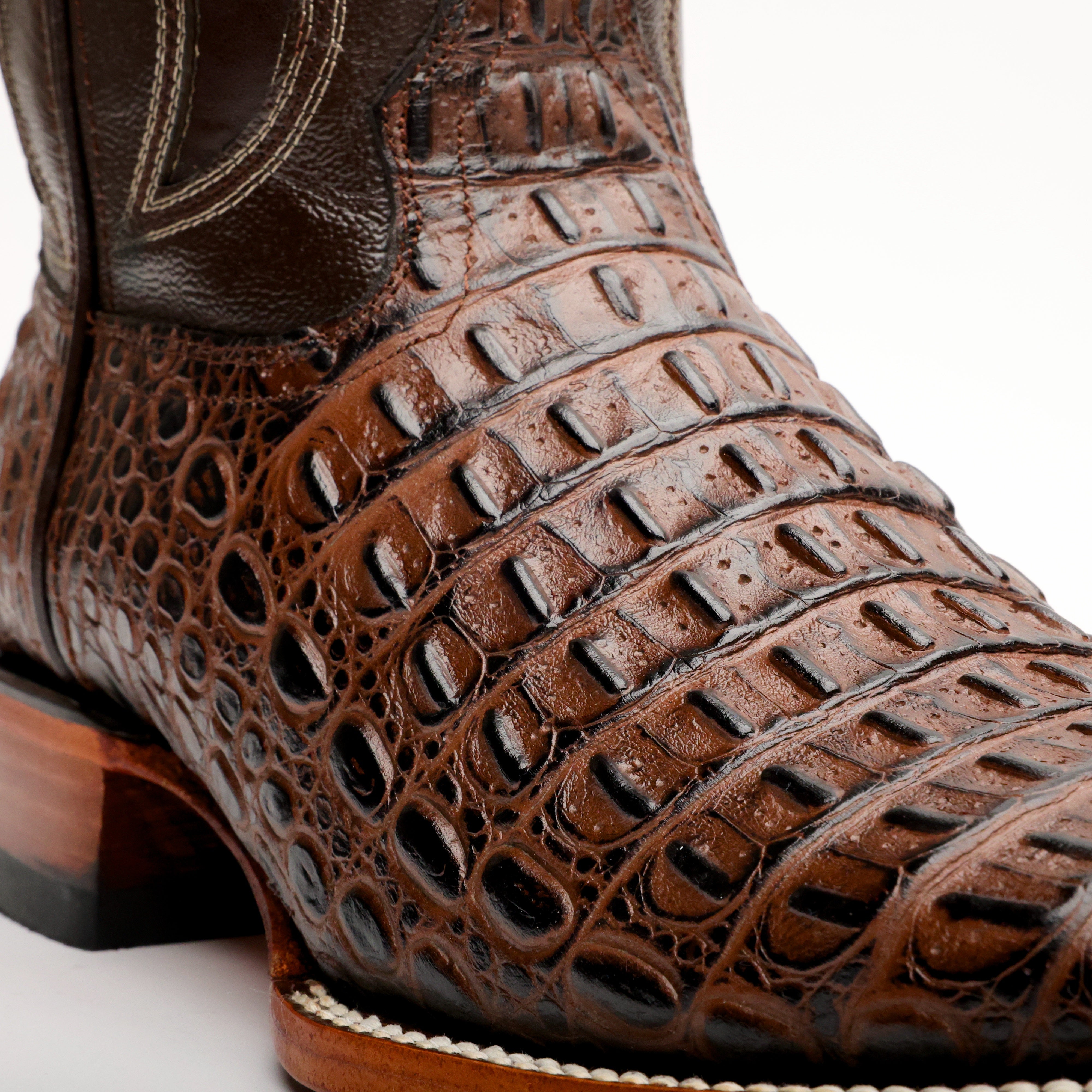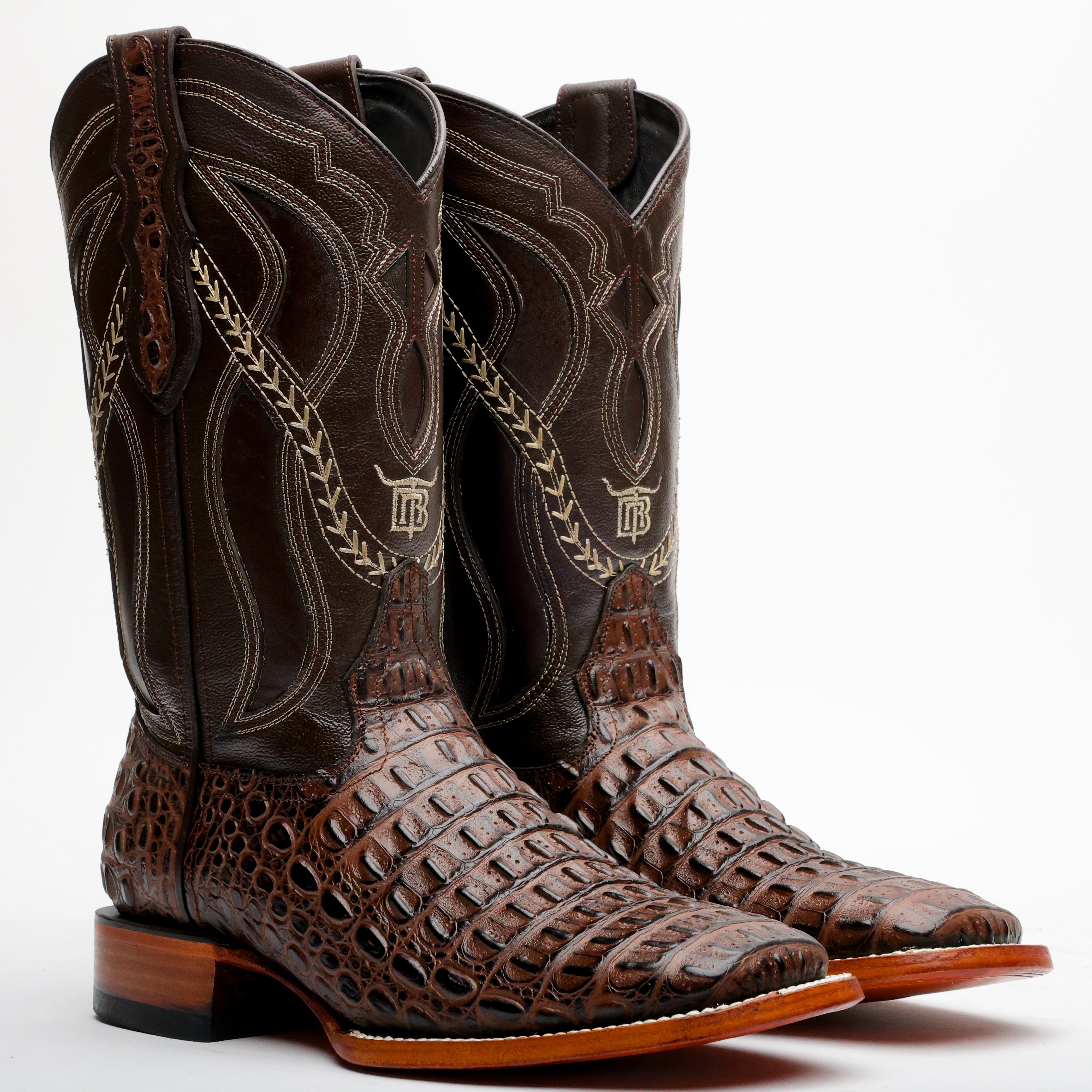 Brown Caimán Hornback Leather Boots -Square Toe