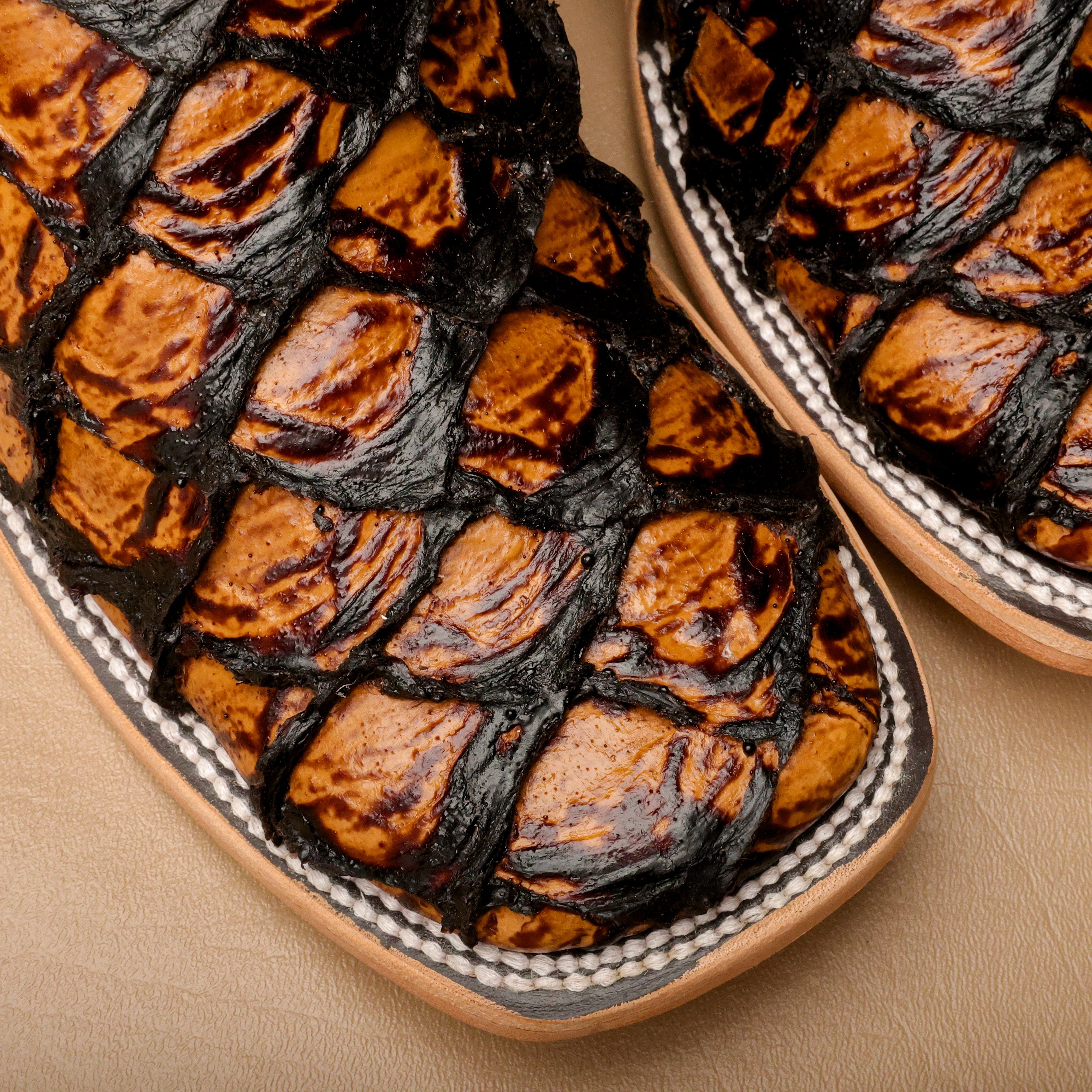 Honey Cognac Jumbo Pirarucu Leather Boots - Square Toe