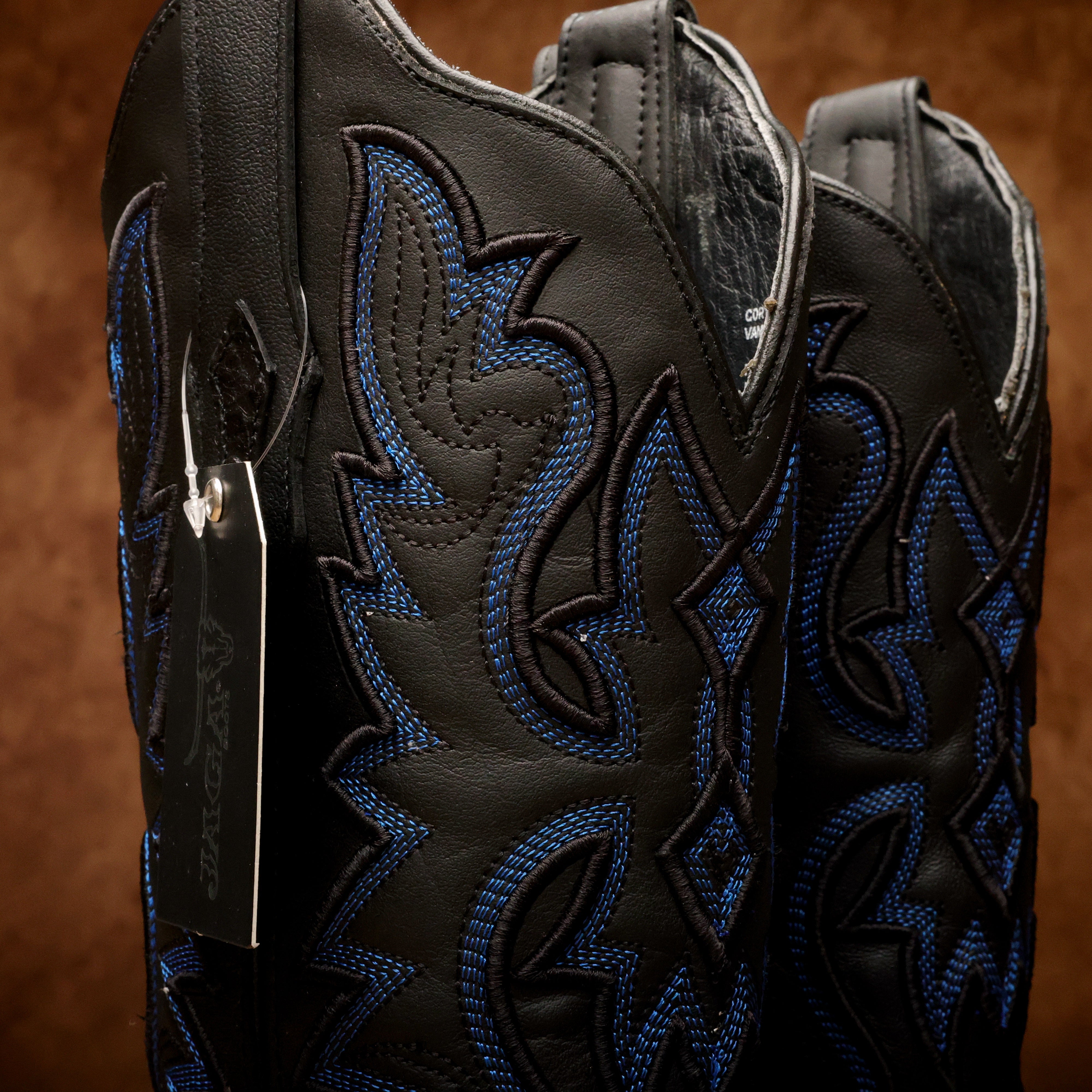 Black/Blue Ostrich Leather Boots With 3D Lightweight Sole - Composite Toe