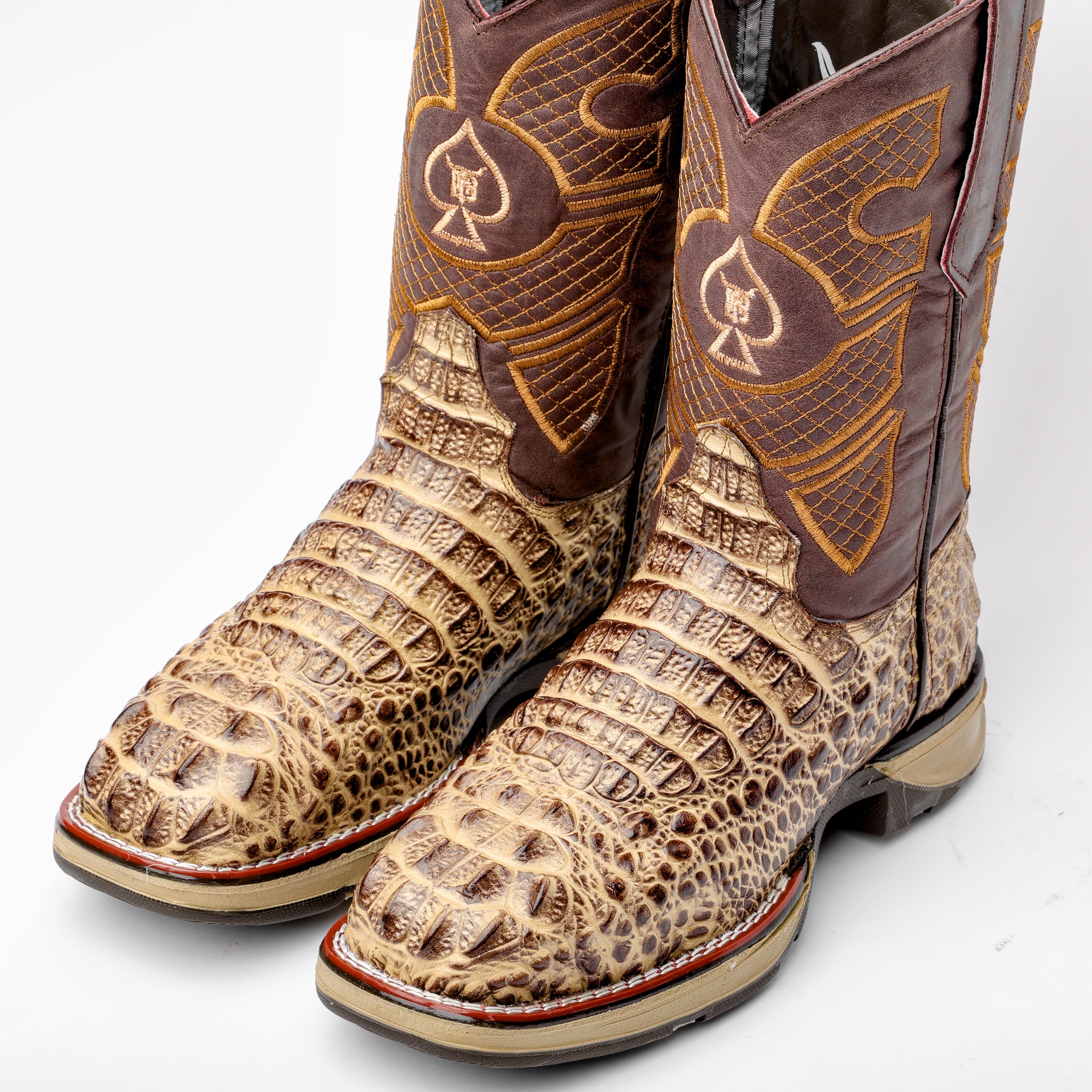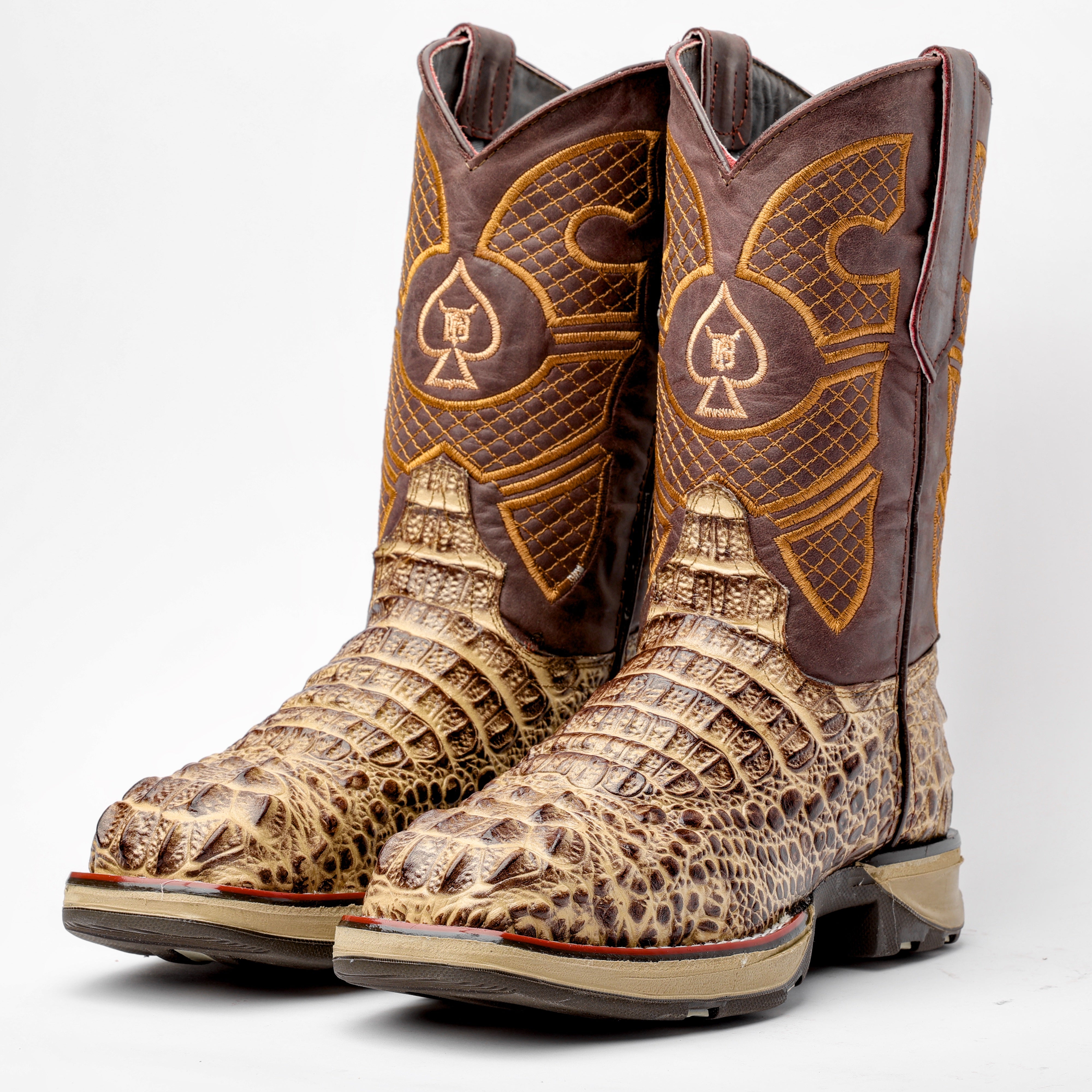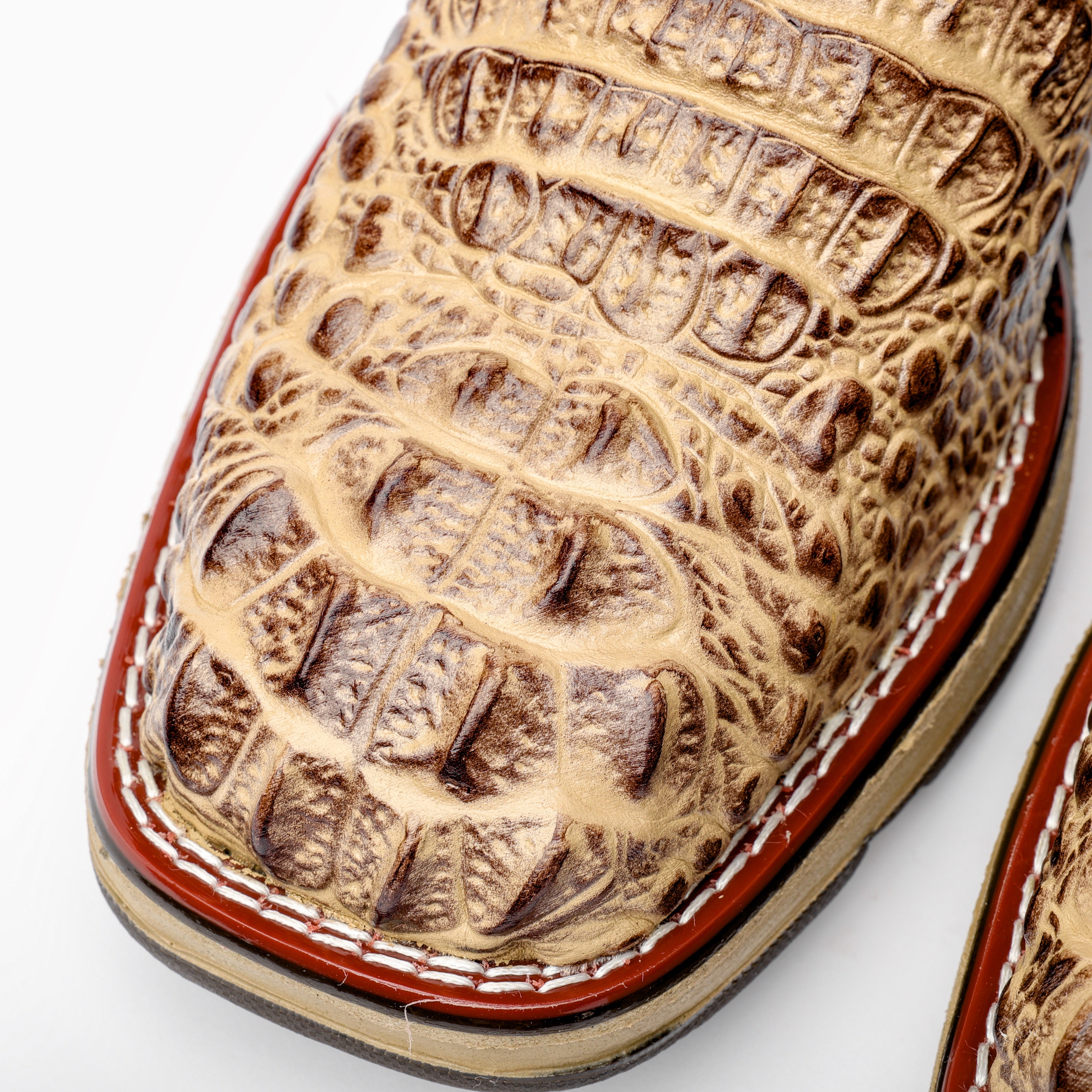 Honey Caiman Hornback Leather Boots - Square Toe