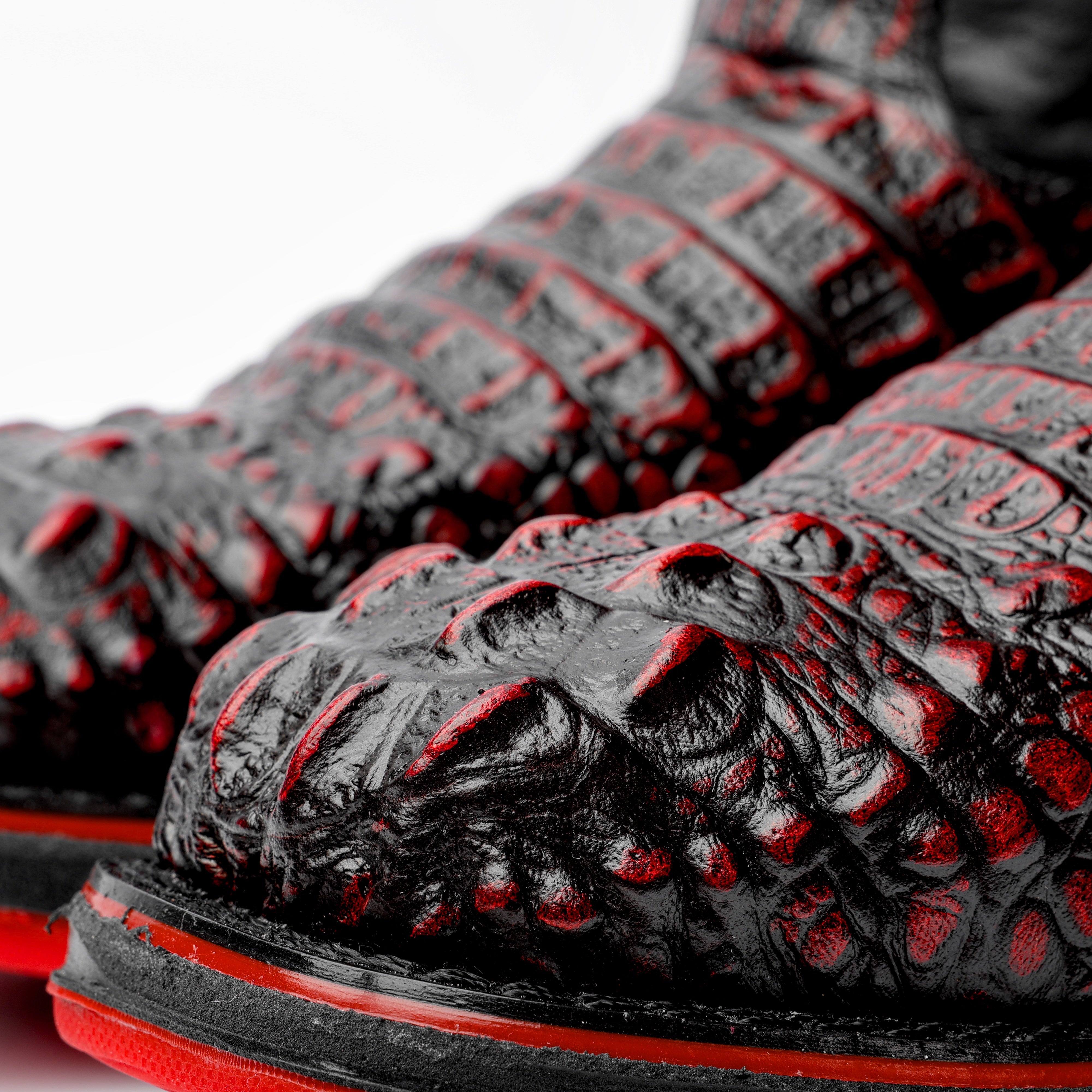 Black Cherry Caiman Neck Leather Boots With 3D Lightweight Sole - Composite Toe
