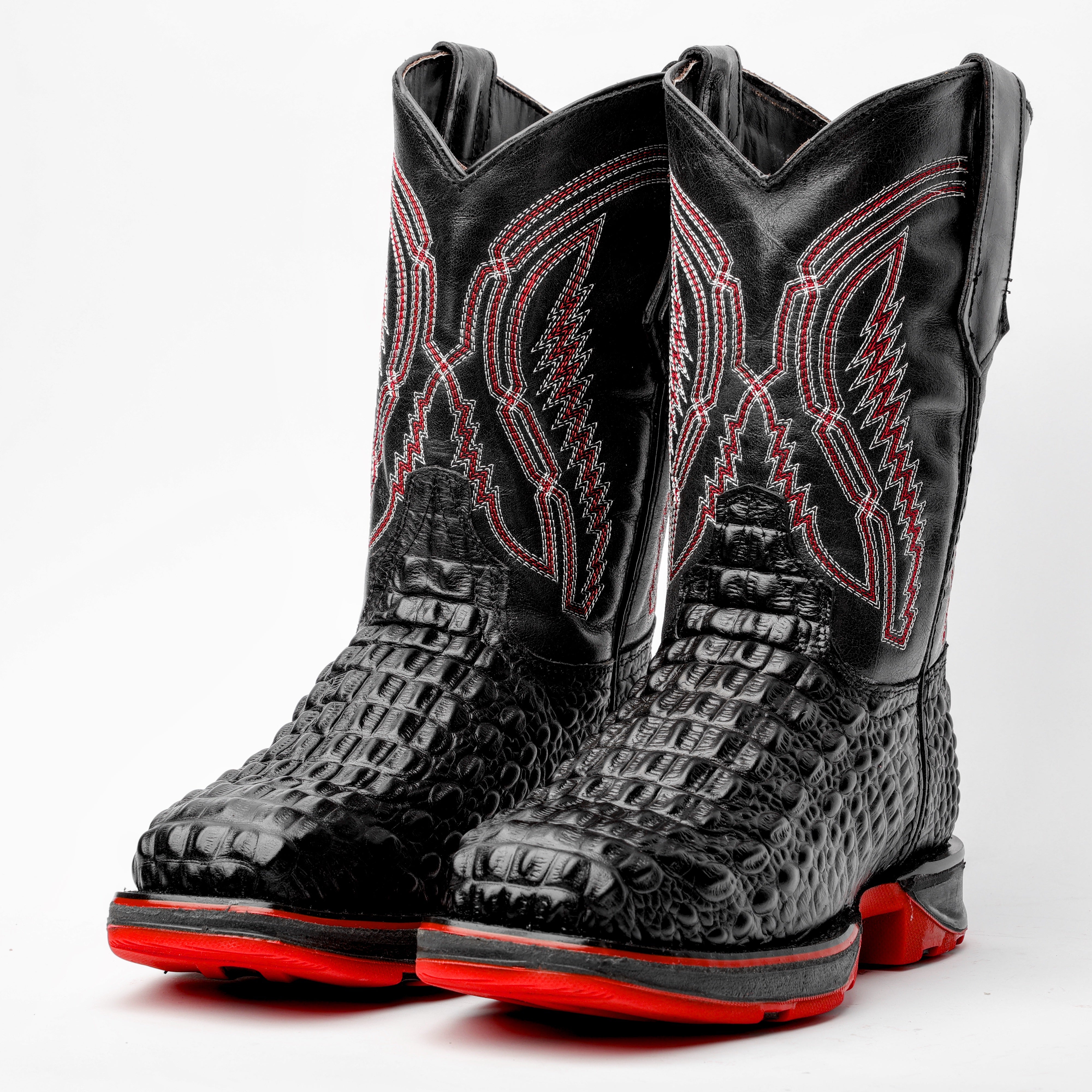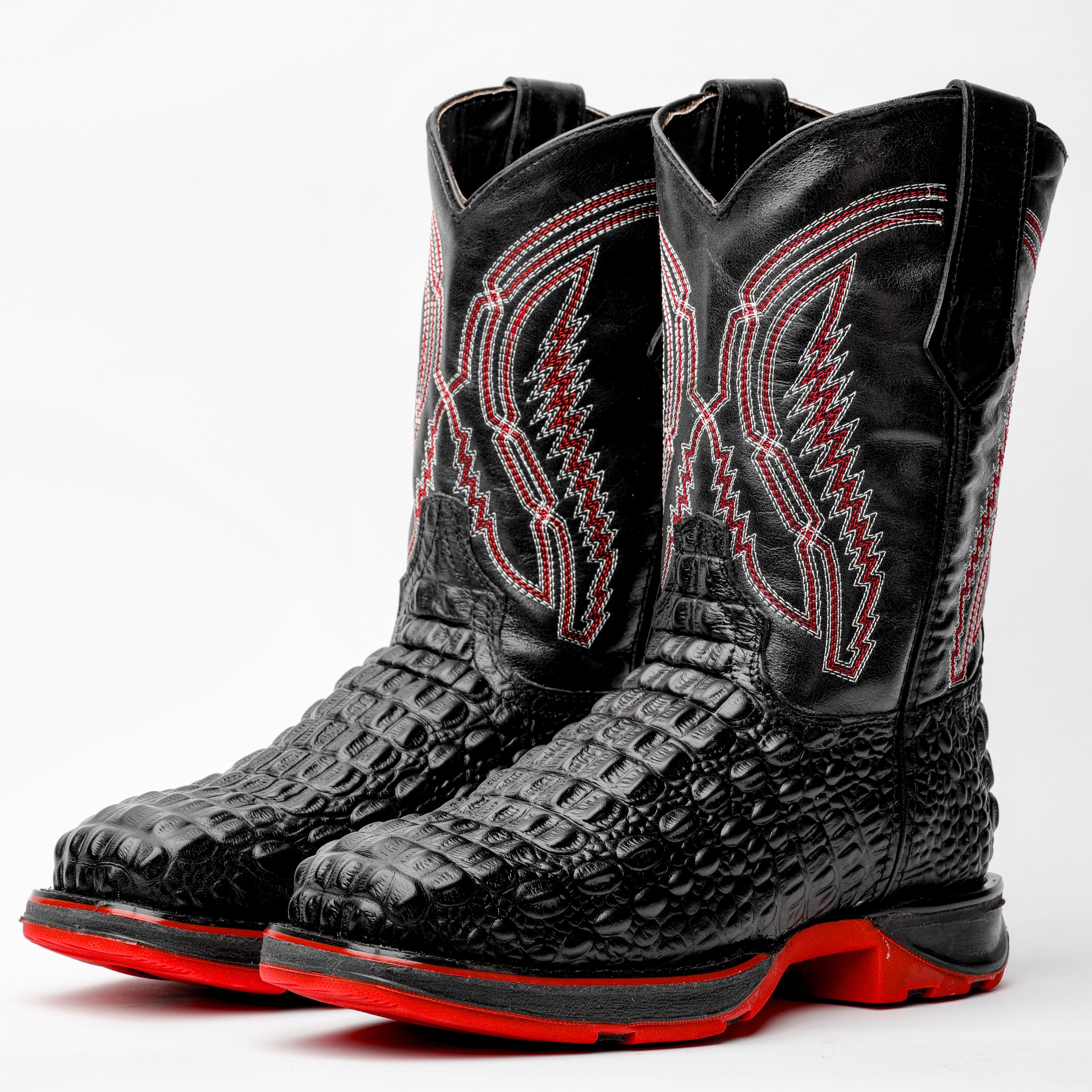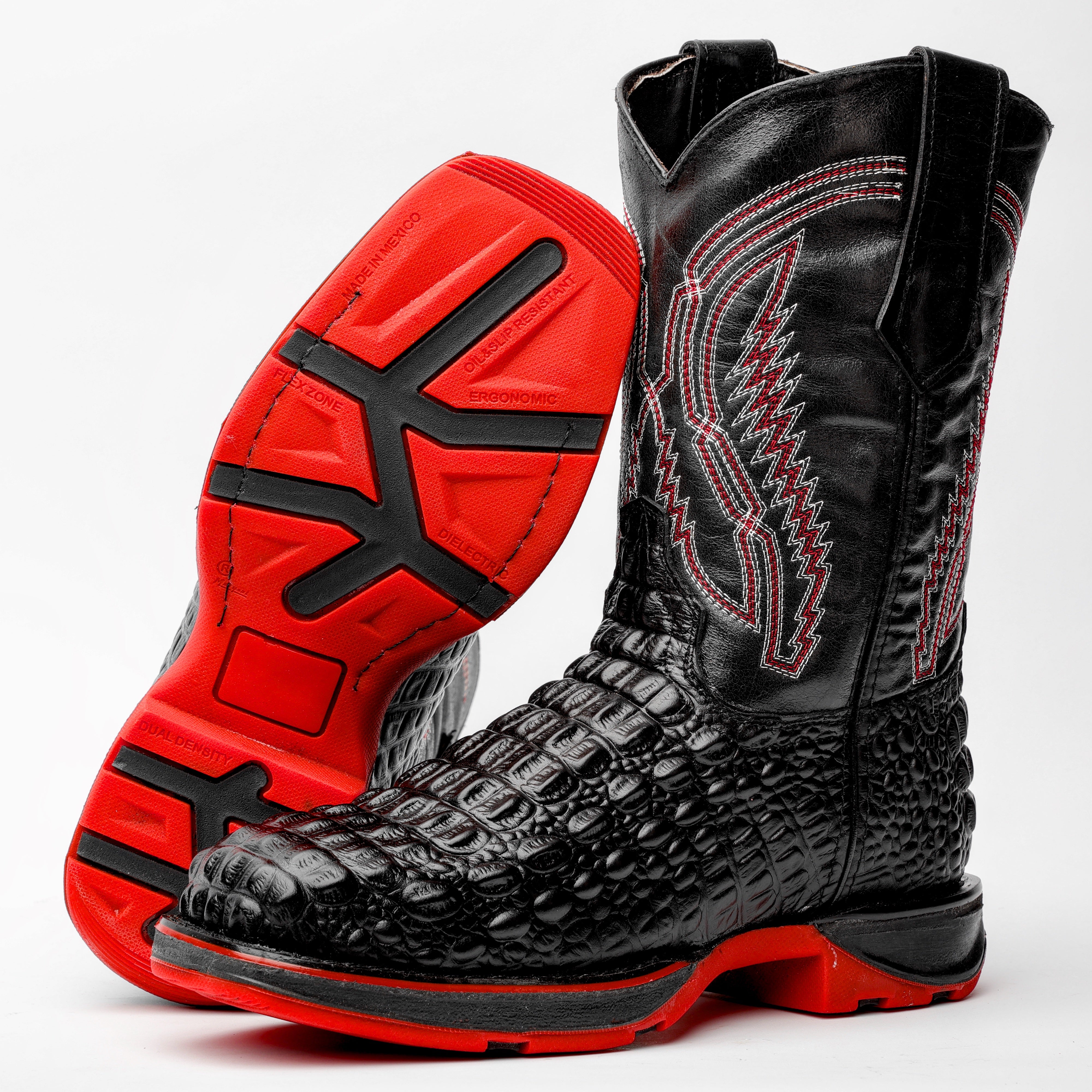 Black Caiman Hornback Leather Boots With 3D Lightweight Sole - Composite Toe
