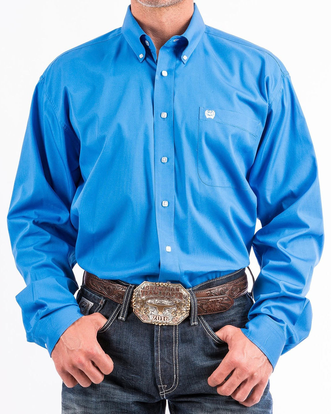 Men’s Cinch Solid Teal Long Sleeve Button Down Shirt