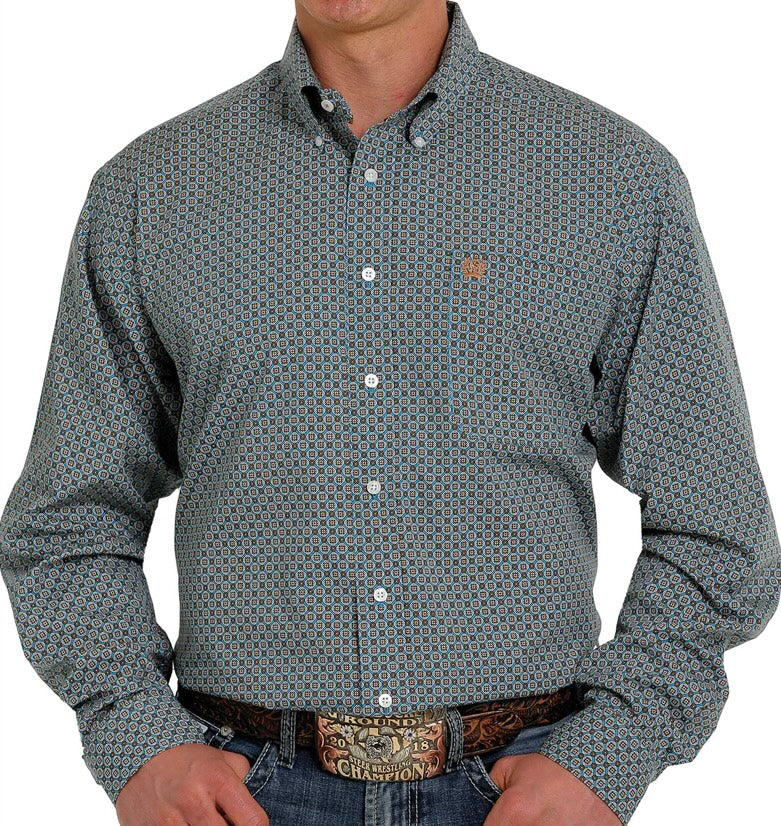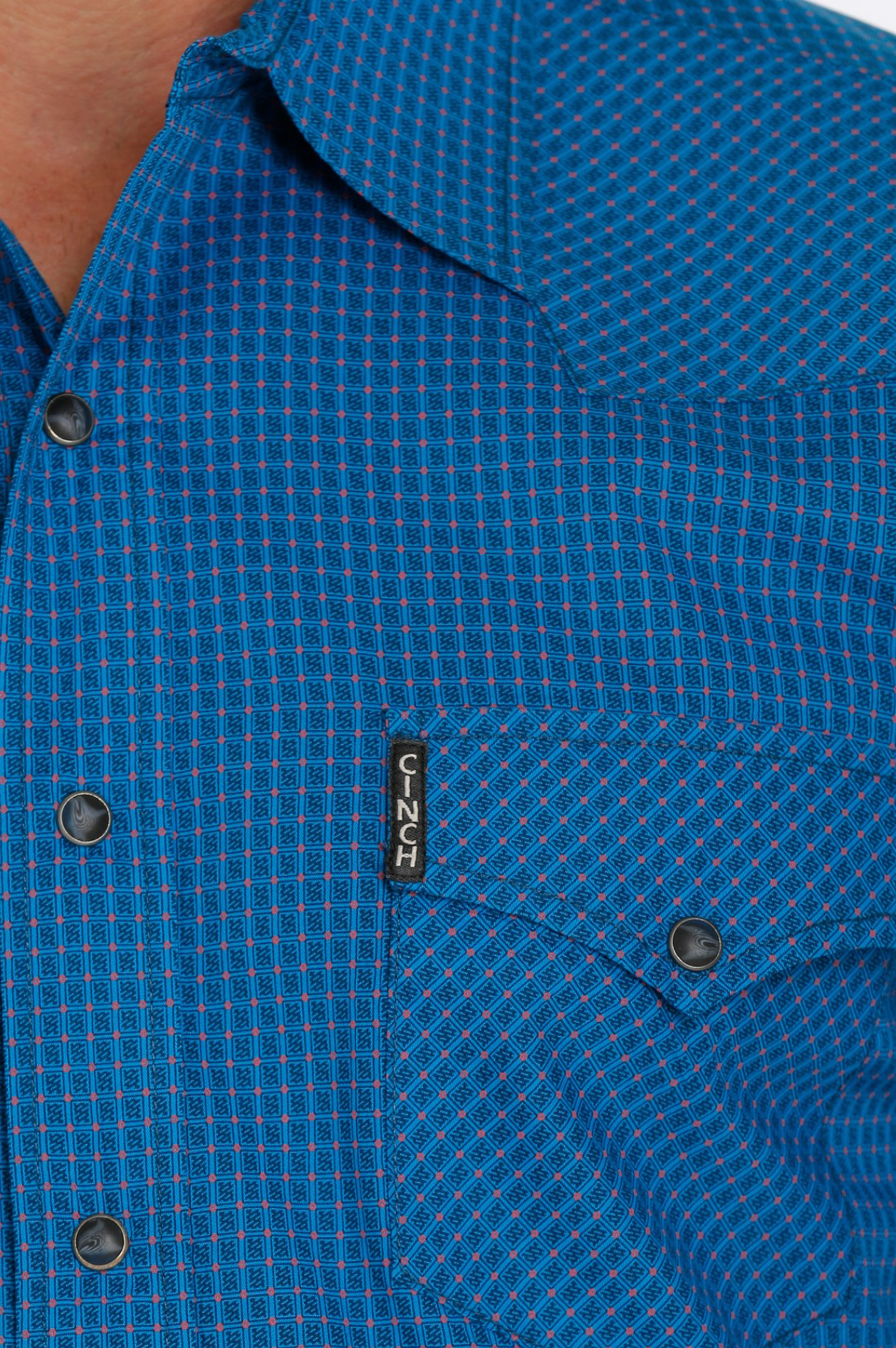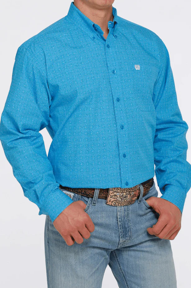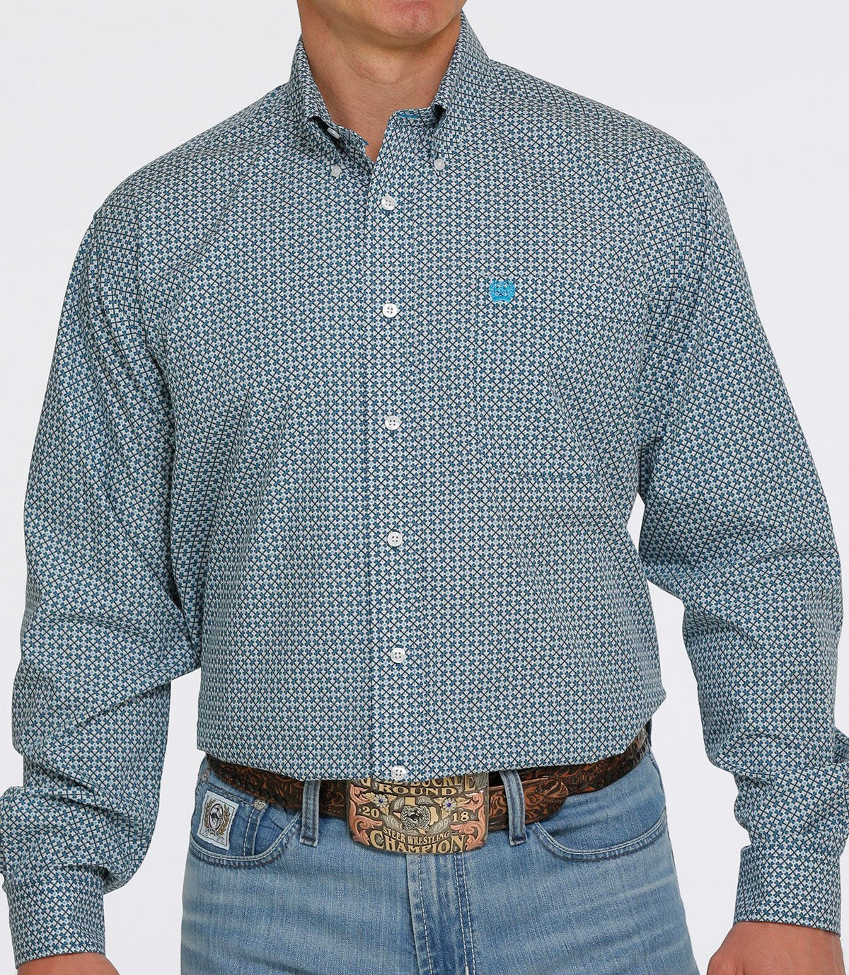Men’s Cinch Blue Geo Print Long Sleeve Button Down Shirt