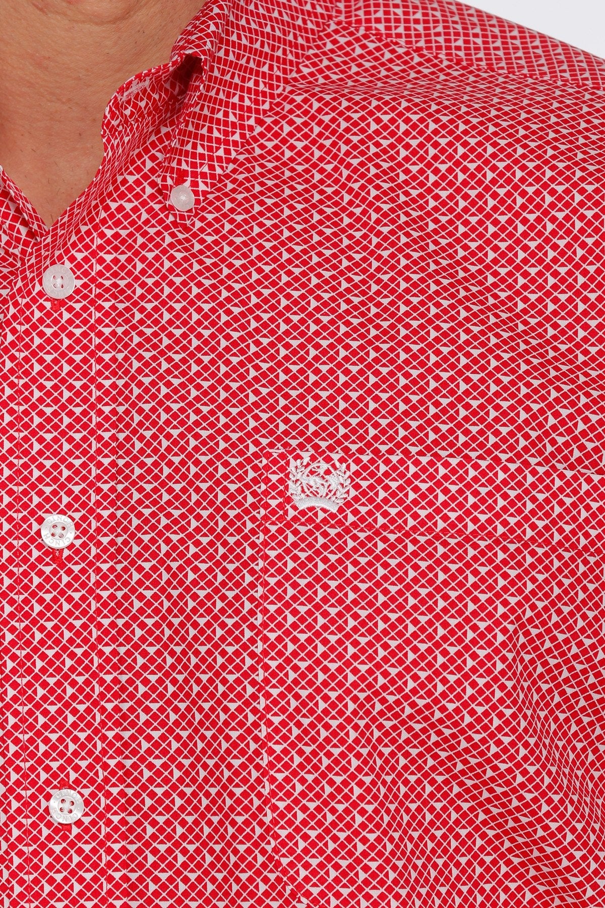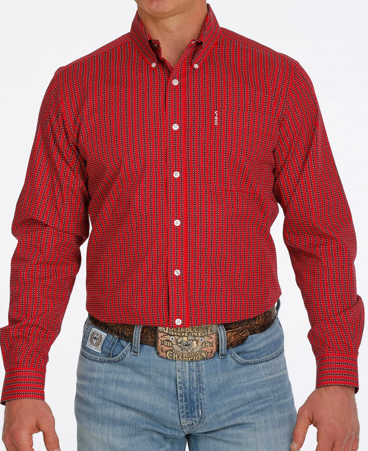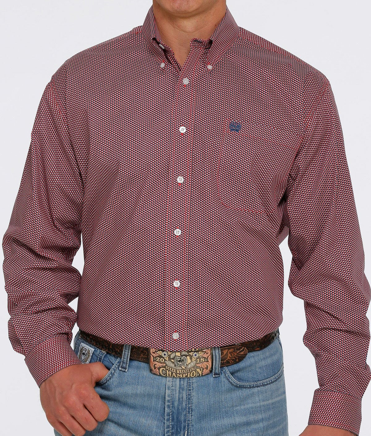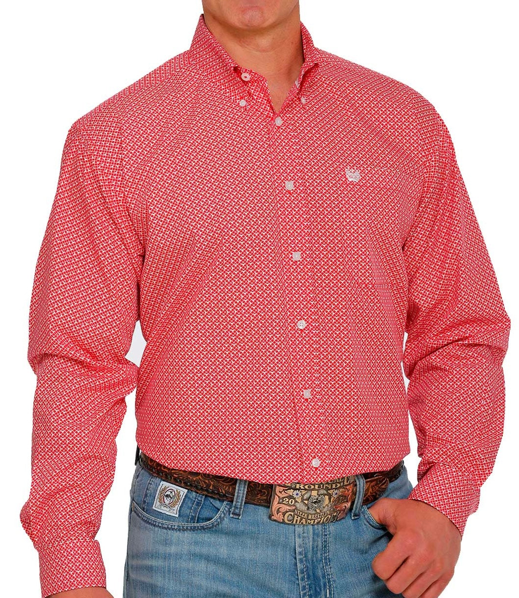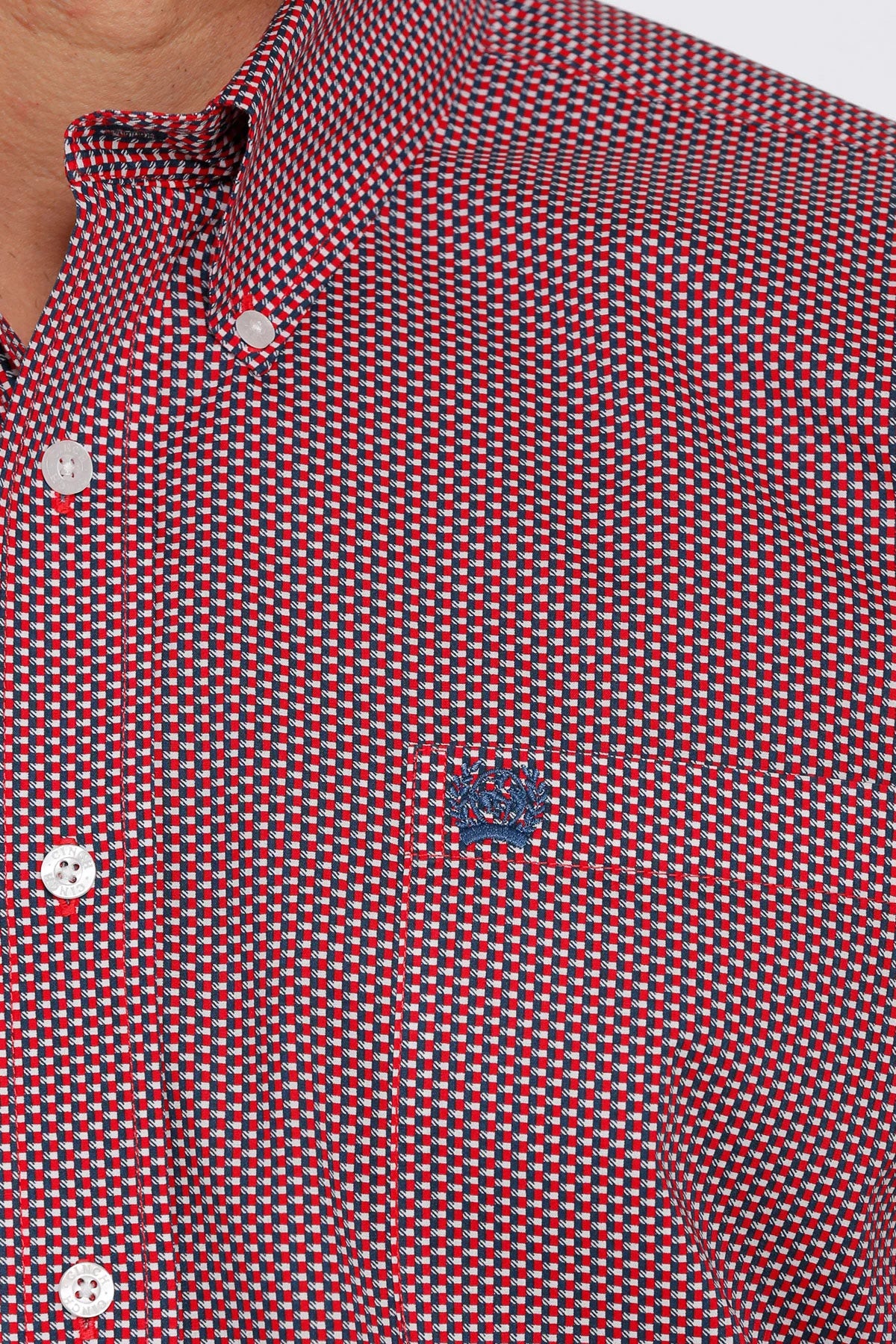 Men’s Cinch Red and White Geometric Print Long Sleeve Shirt