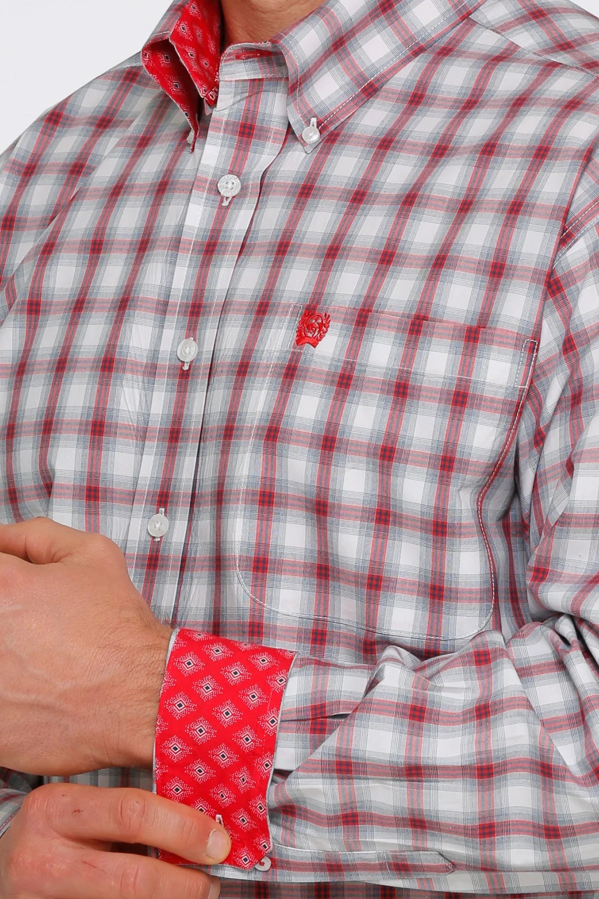 Men’s Cinch Plaid Grey/Red Button Down Western Shirt