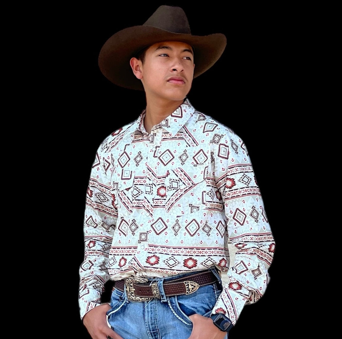 Men’s Beige With Brown Aztec Print Long Sleeve Shirt