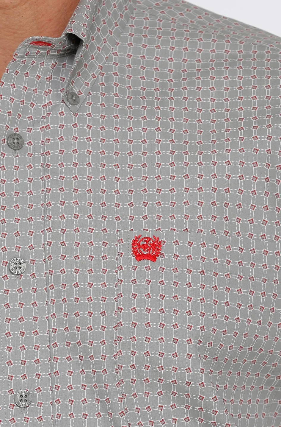 Men’s Cinch Grey and White Geometric Print Long Sleeve Shirt