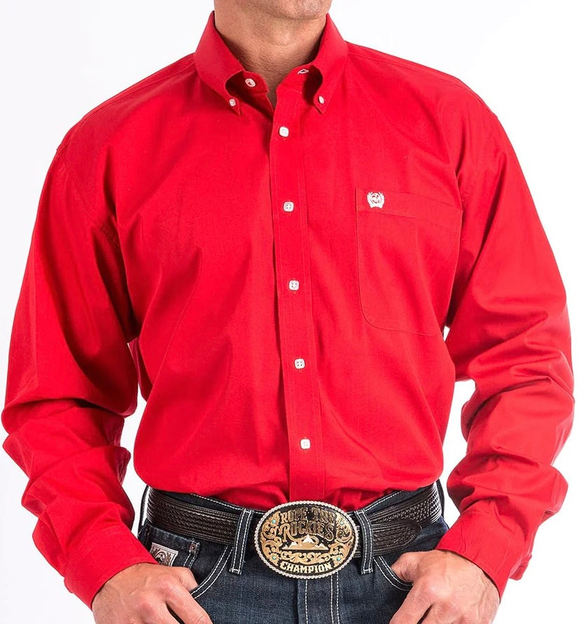 Men’s Cinch Solid Red Long Sleeve Button Down Shirt