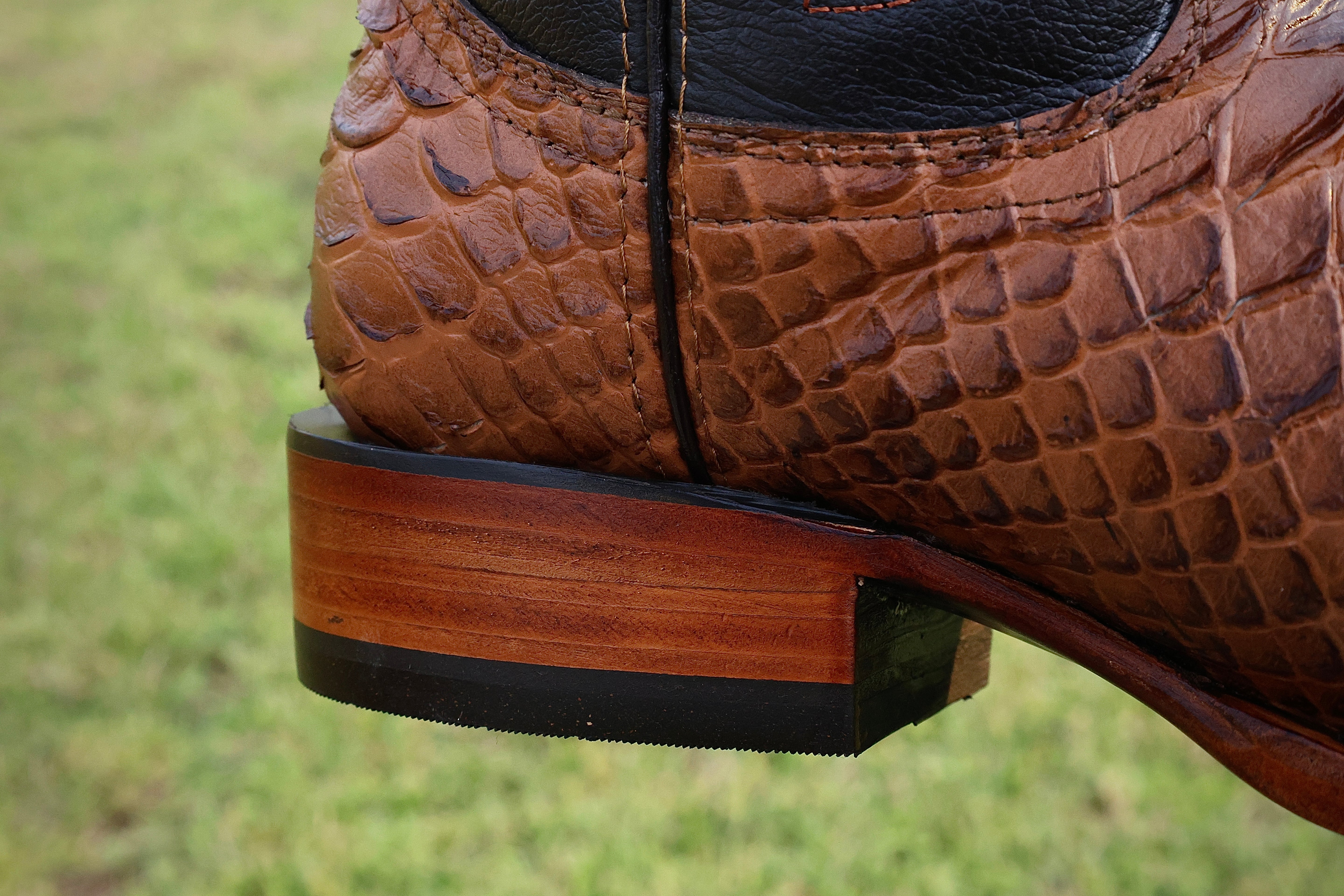 Cognac Jumbo Python Leather Boots — Round Toe