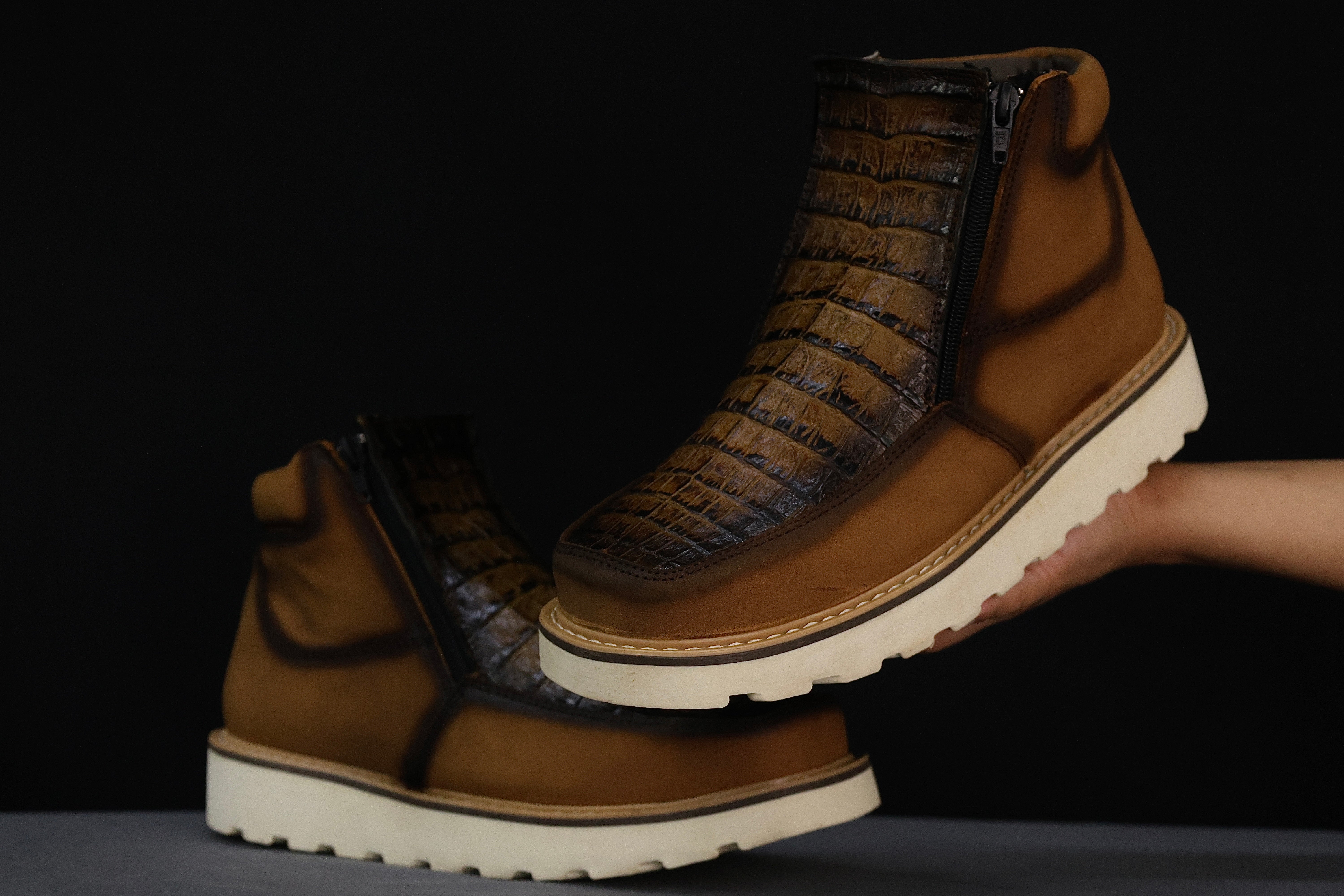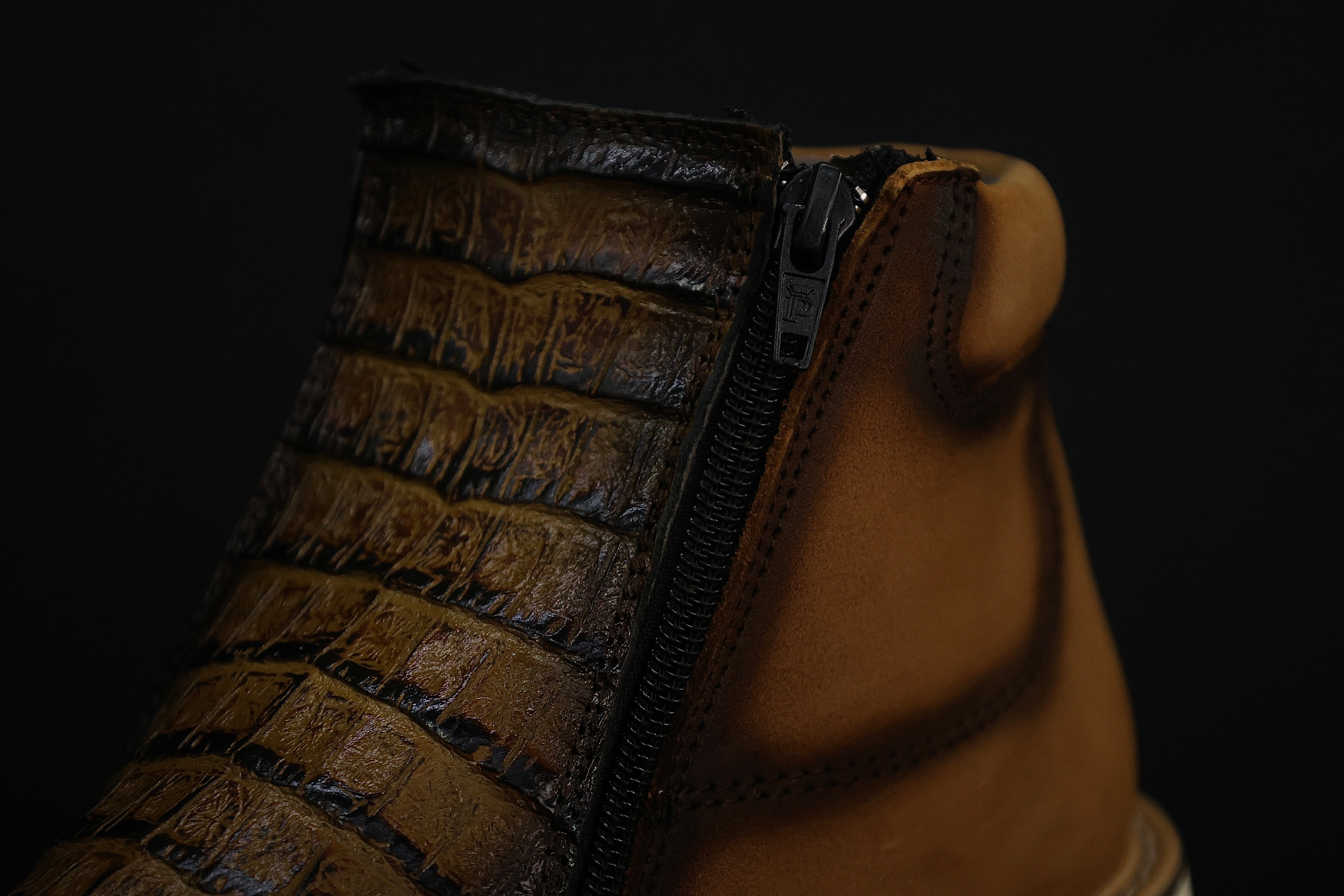 Brown Tan American Gator Belly Cowboy Shoes With Ultra Light Sole