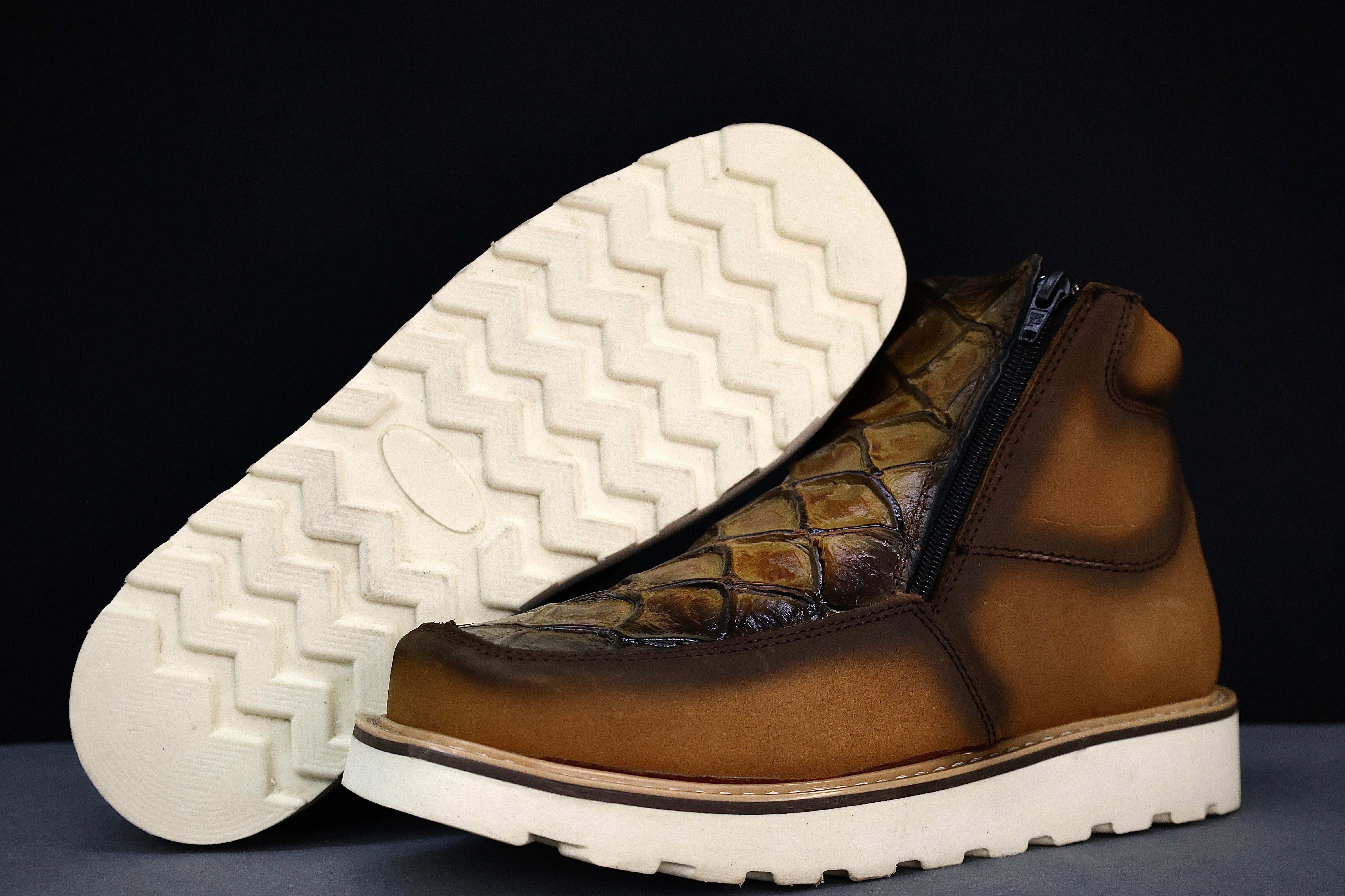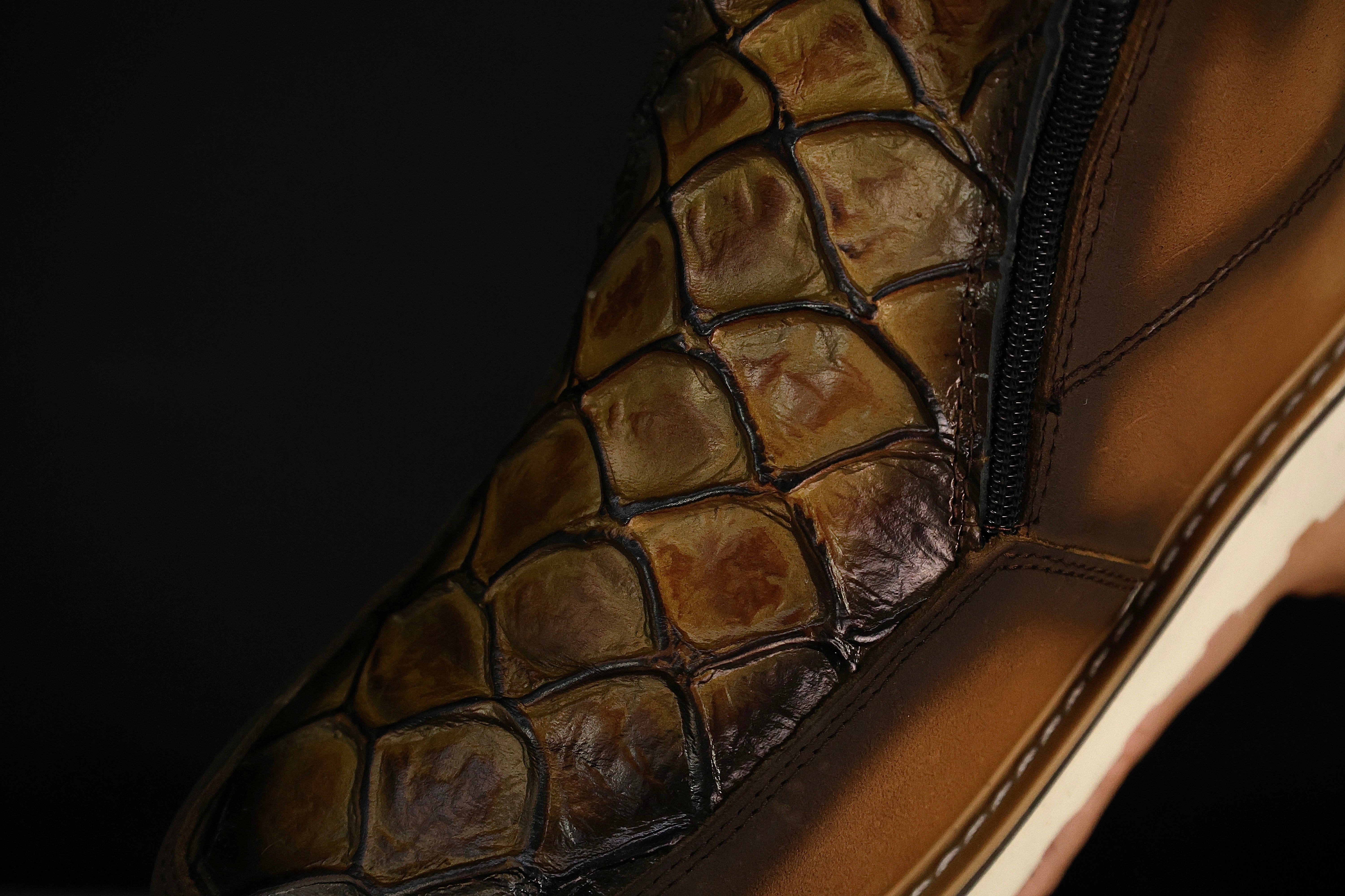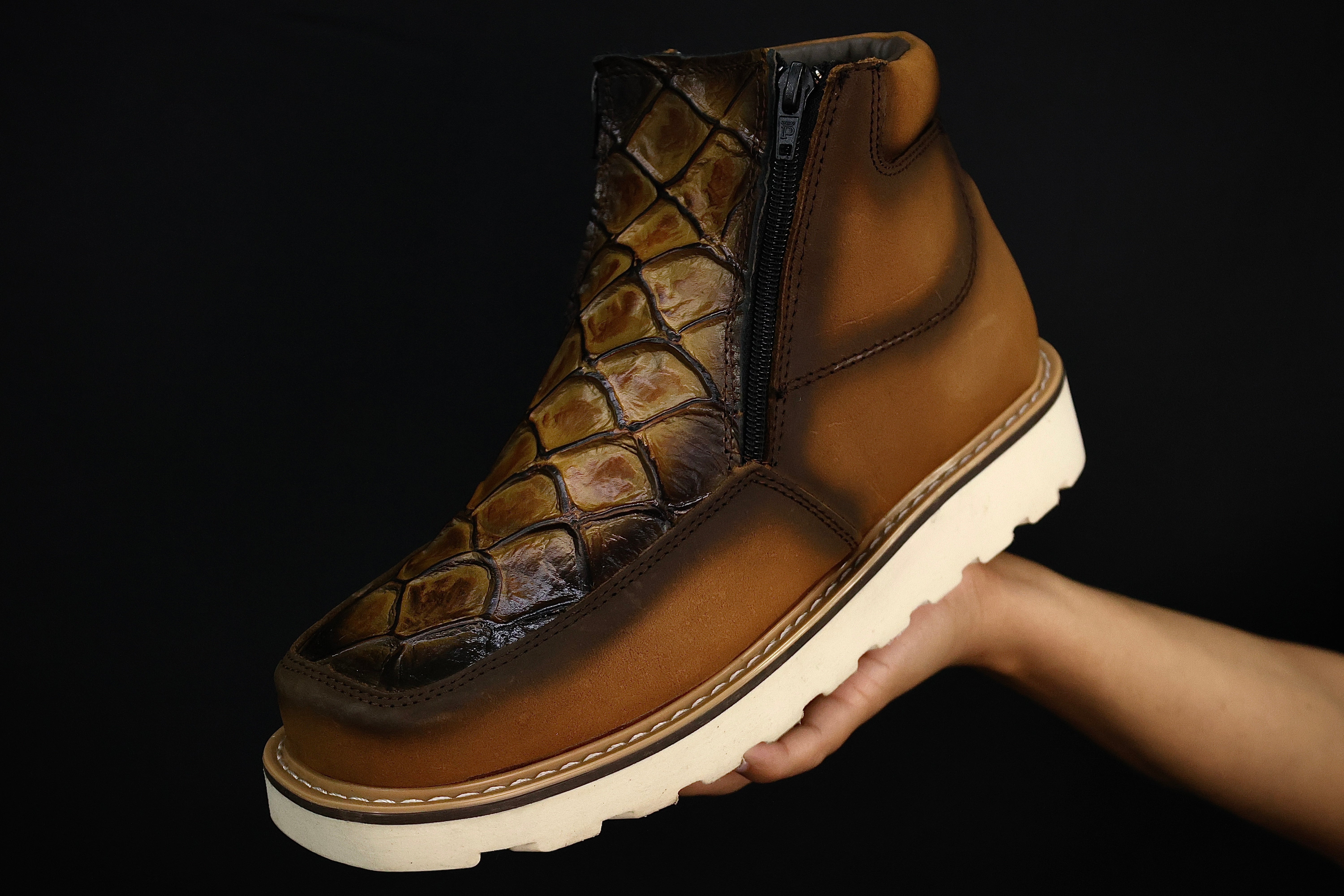 Brown Tan Fish Cowboy Shoes With Ultra Light Sole