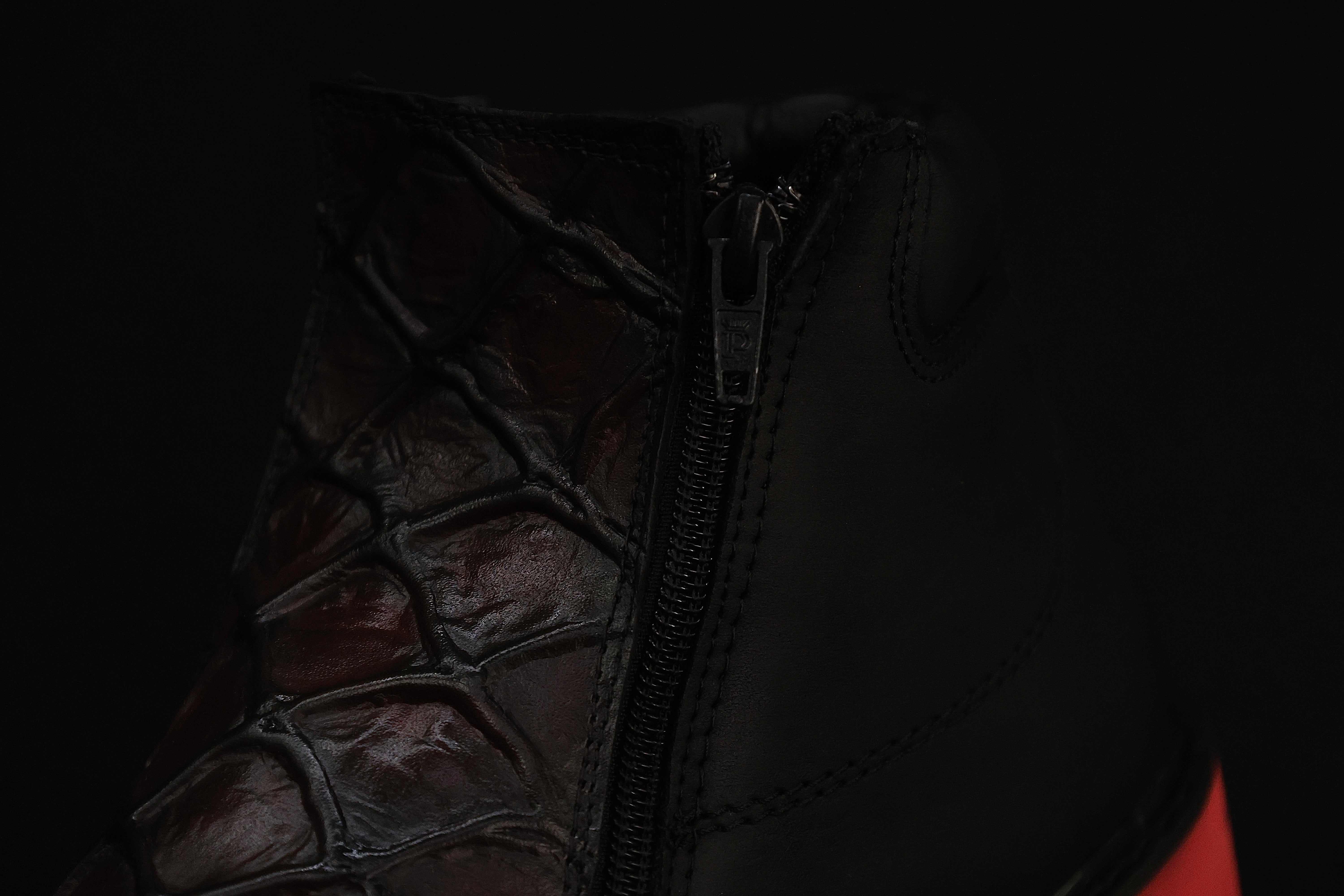 Matte Black Cherry Pirarucu Leather Botin With 3D Lightweight Soles - Square Toe