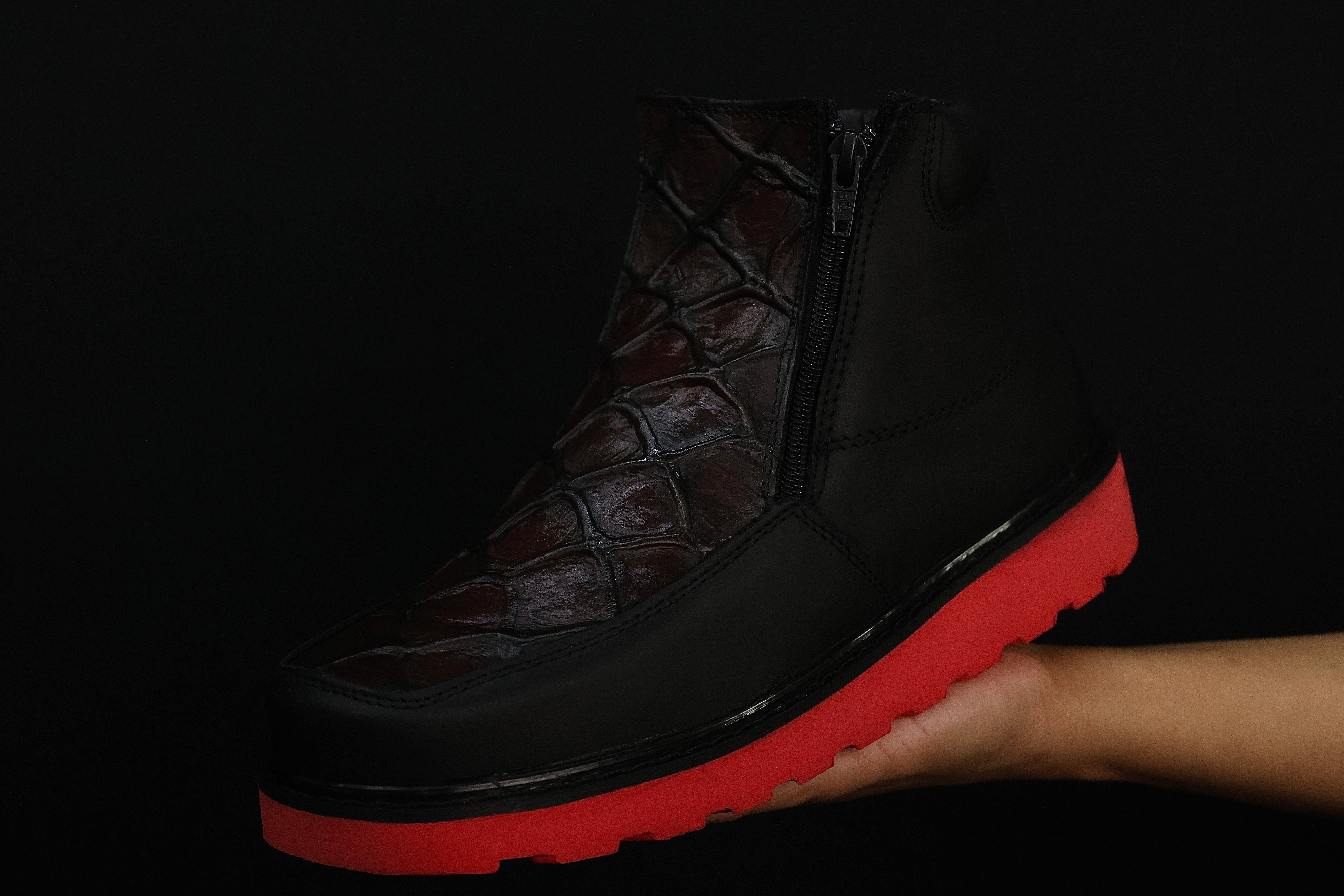 Black Cherry Pirarucu Cowboy Shoes With Ultra Light Sole
