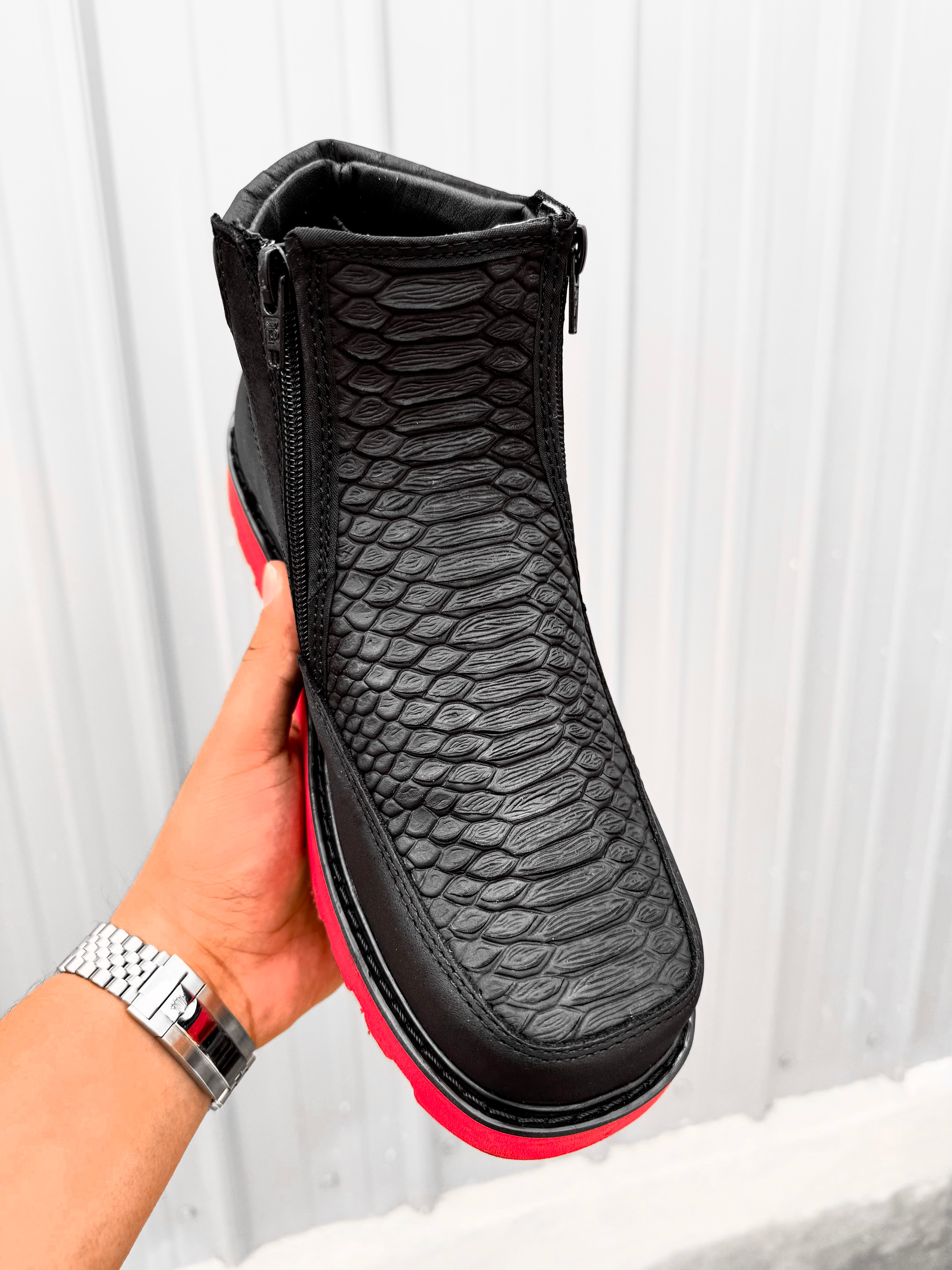Black Cherry Python Leather Botin With 3D Lightweight Soles - Square Toe