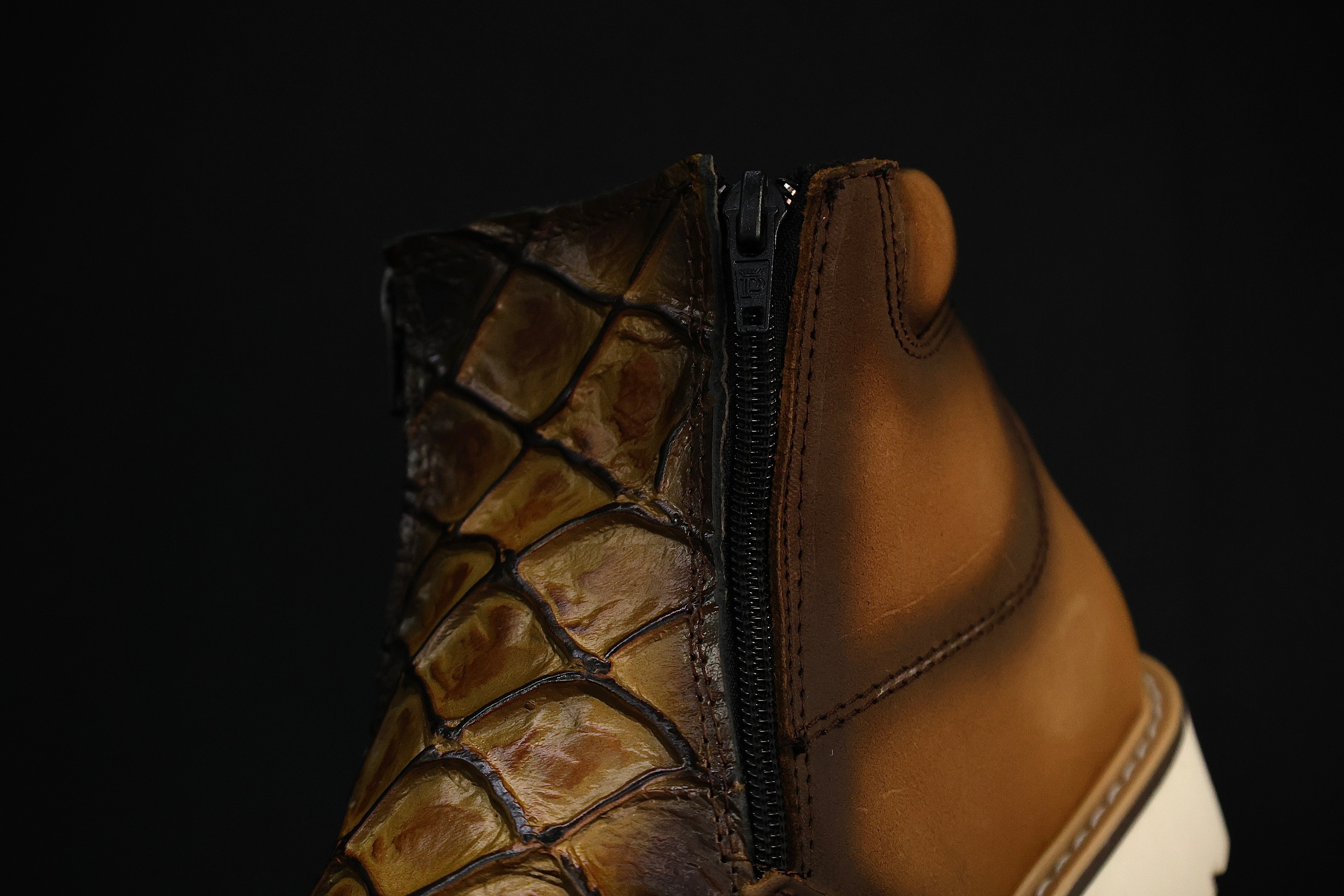 Brown Tan Fish Cowboy Shoes With Ultra Light Sole