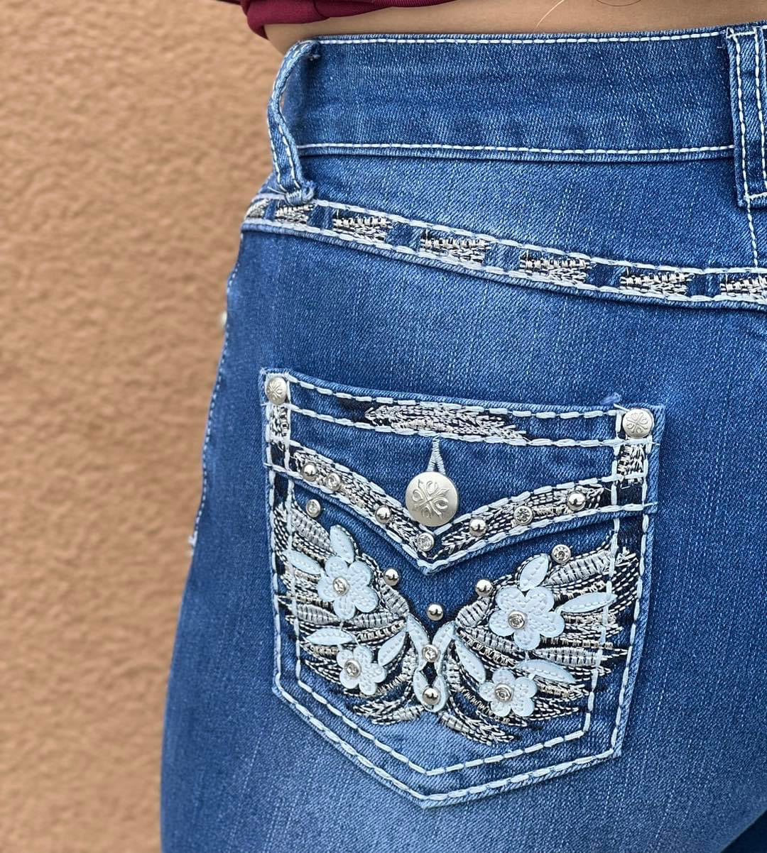 Women’s HY- 402 Blue With White Flower Jeans