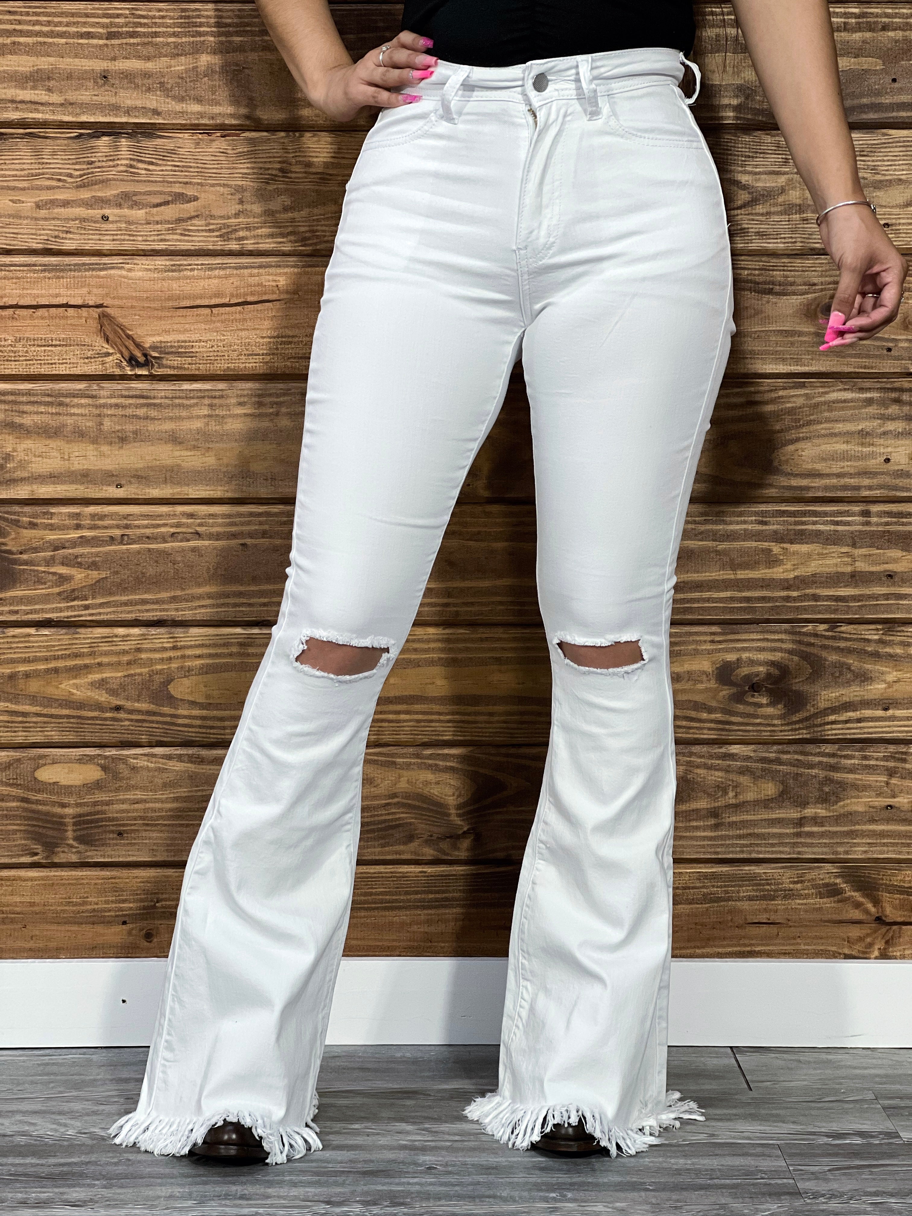 Women’s HY337 White Bell Bottoms Jeans