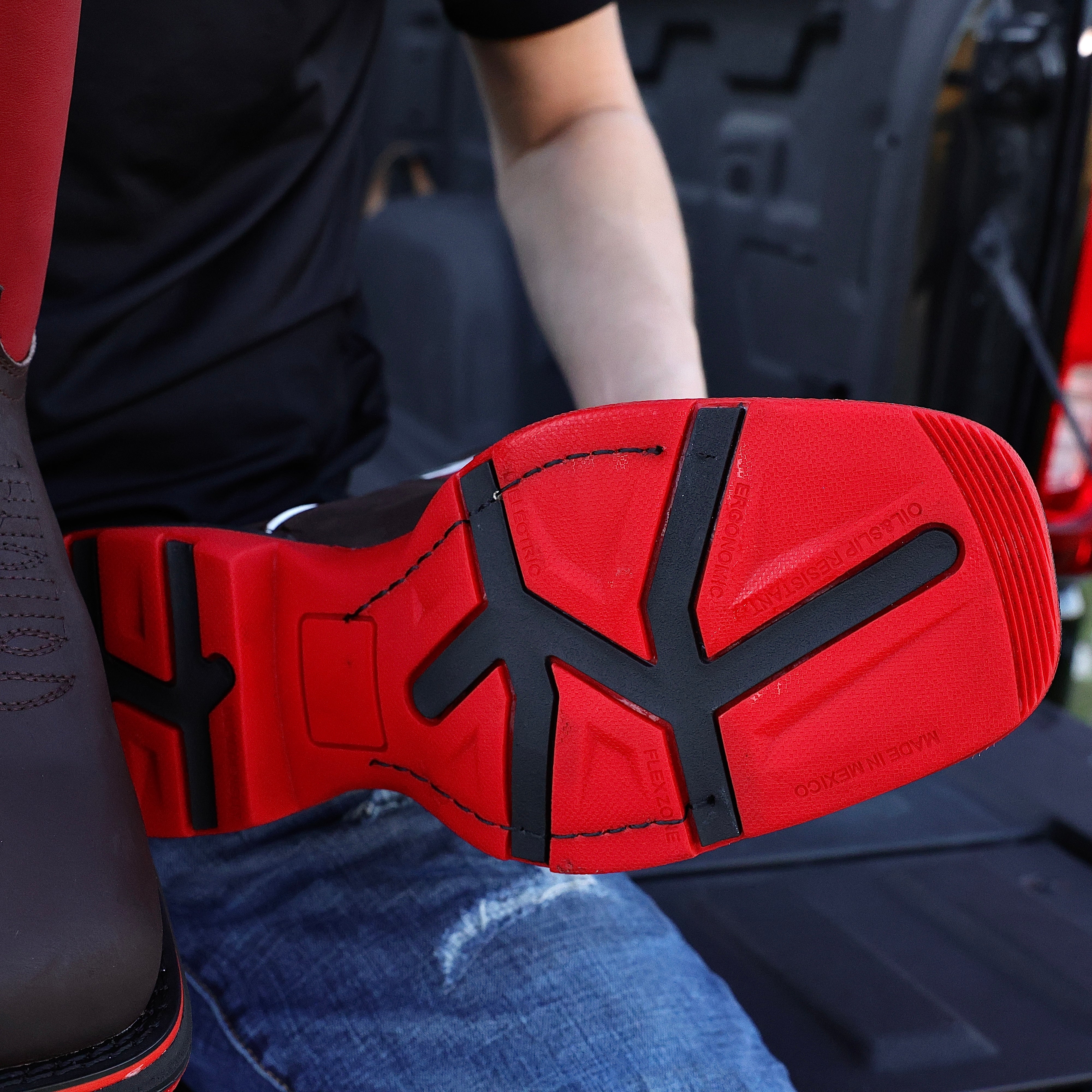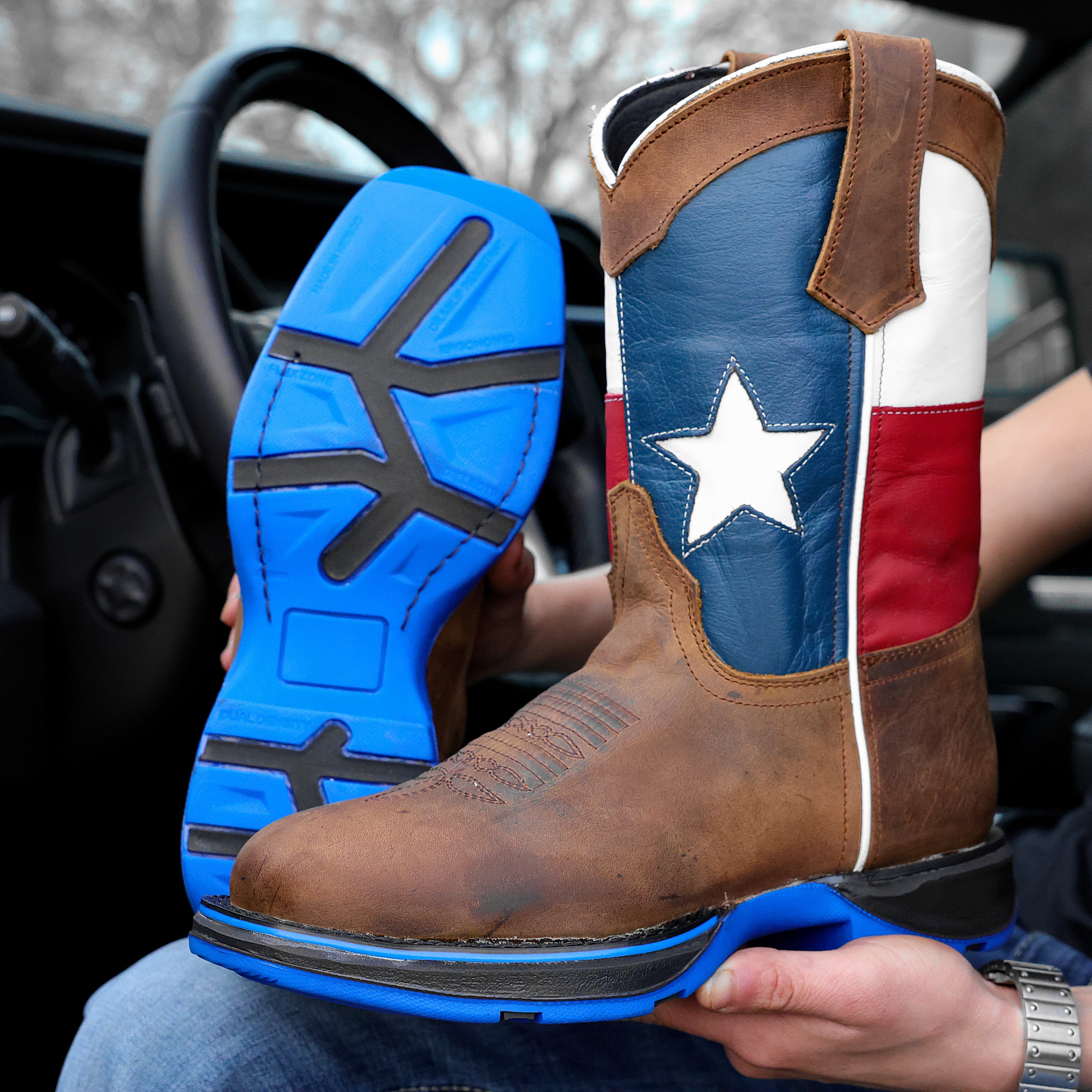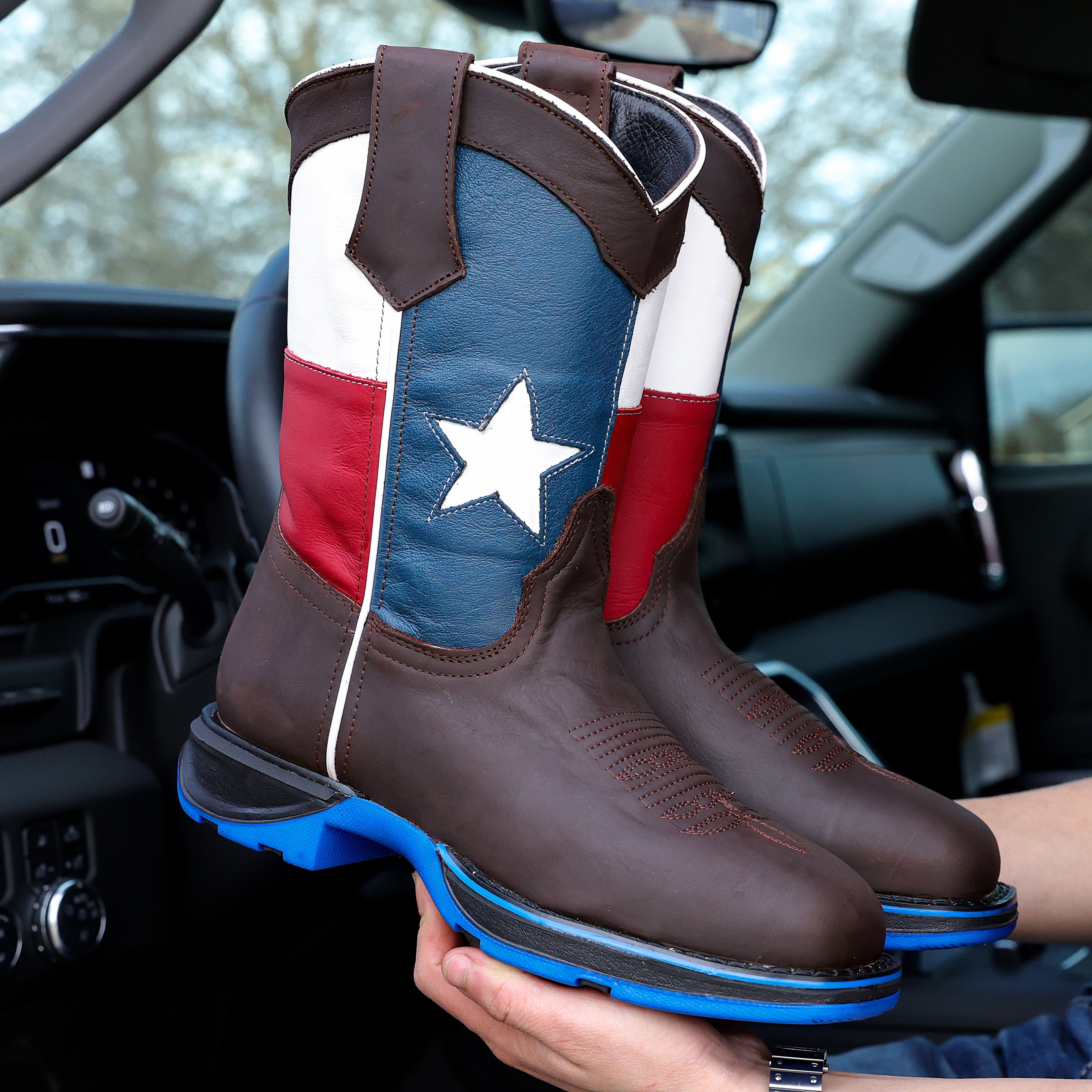 Chocolate Brown TEXAS Flag Leather Work Boots - Composite Toe